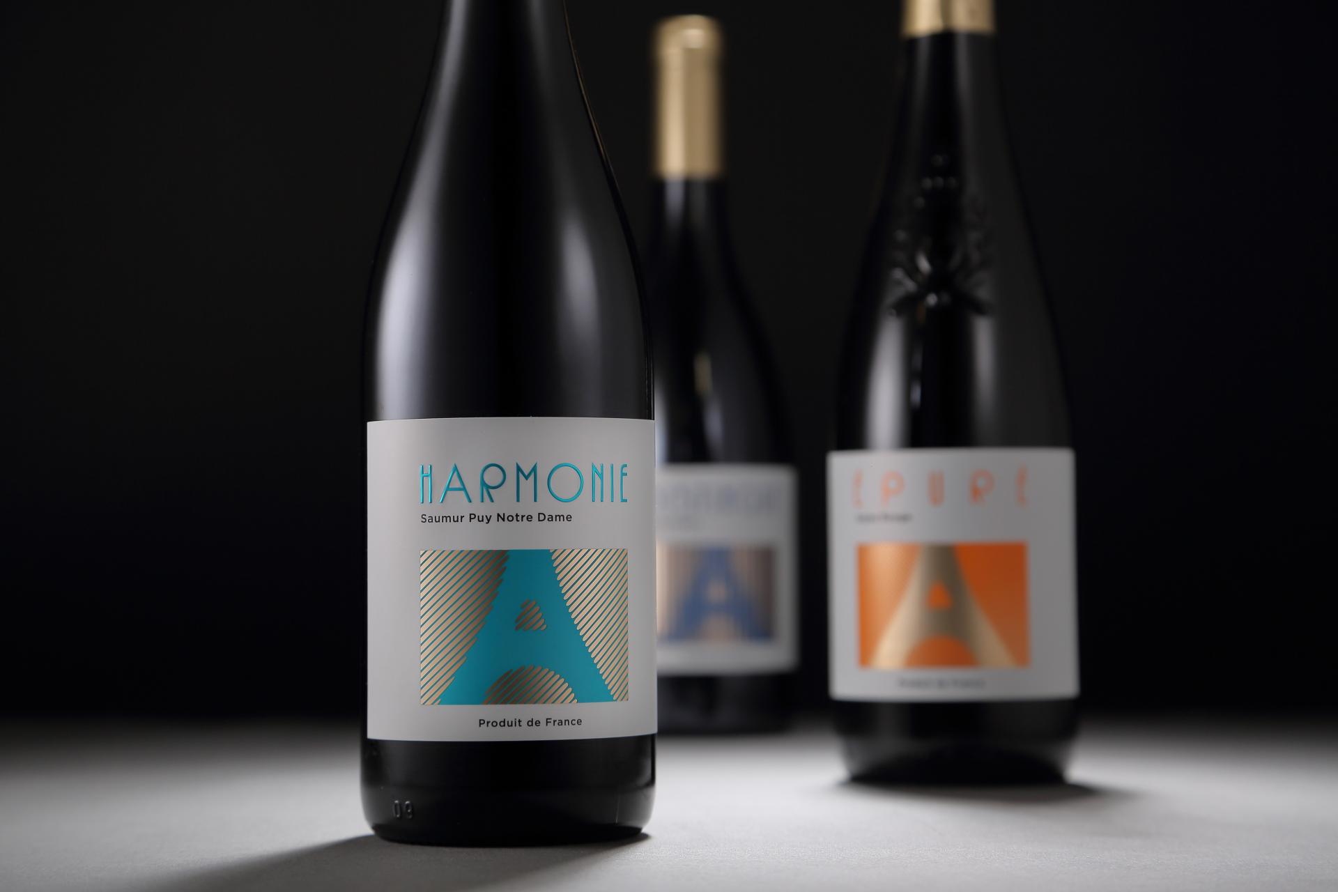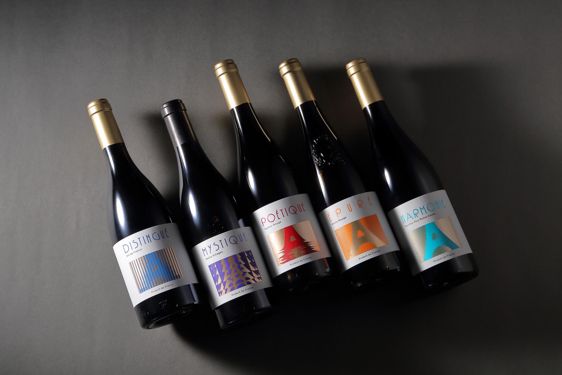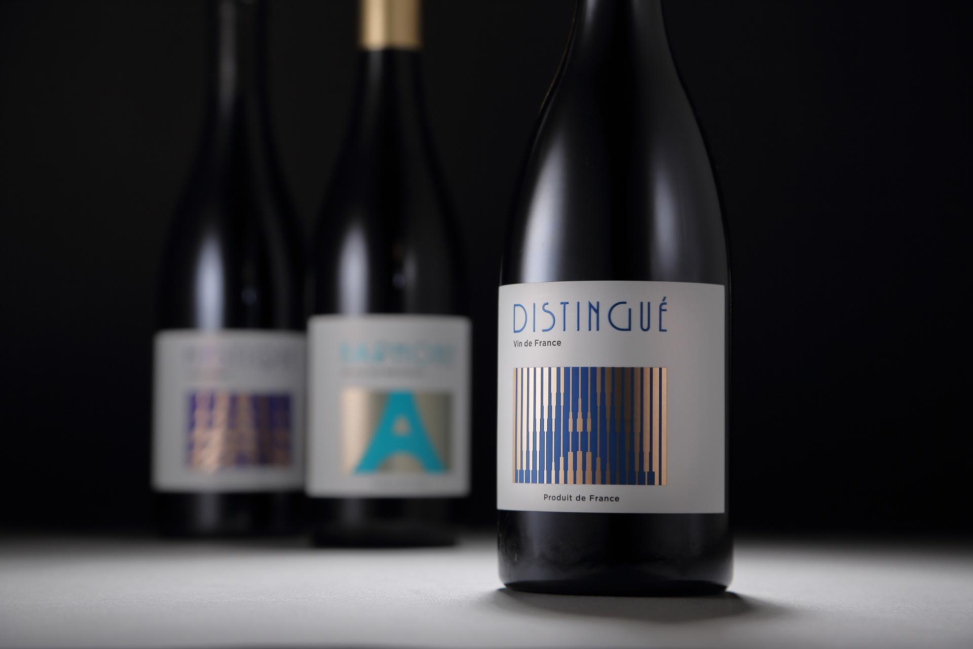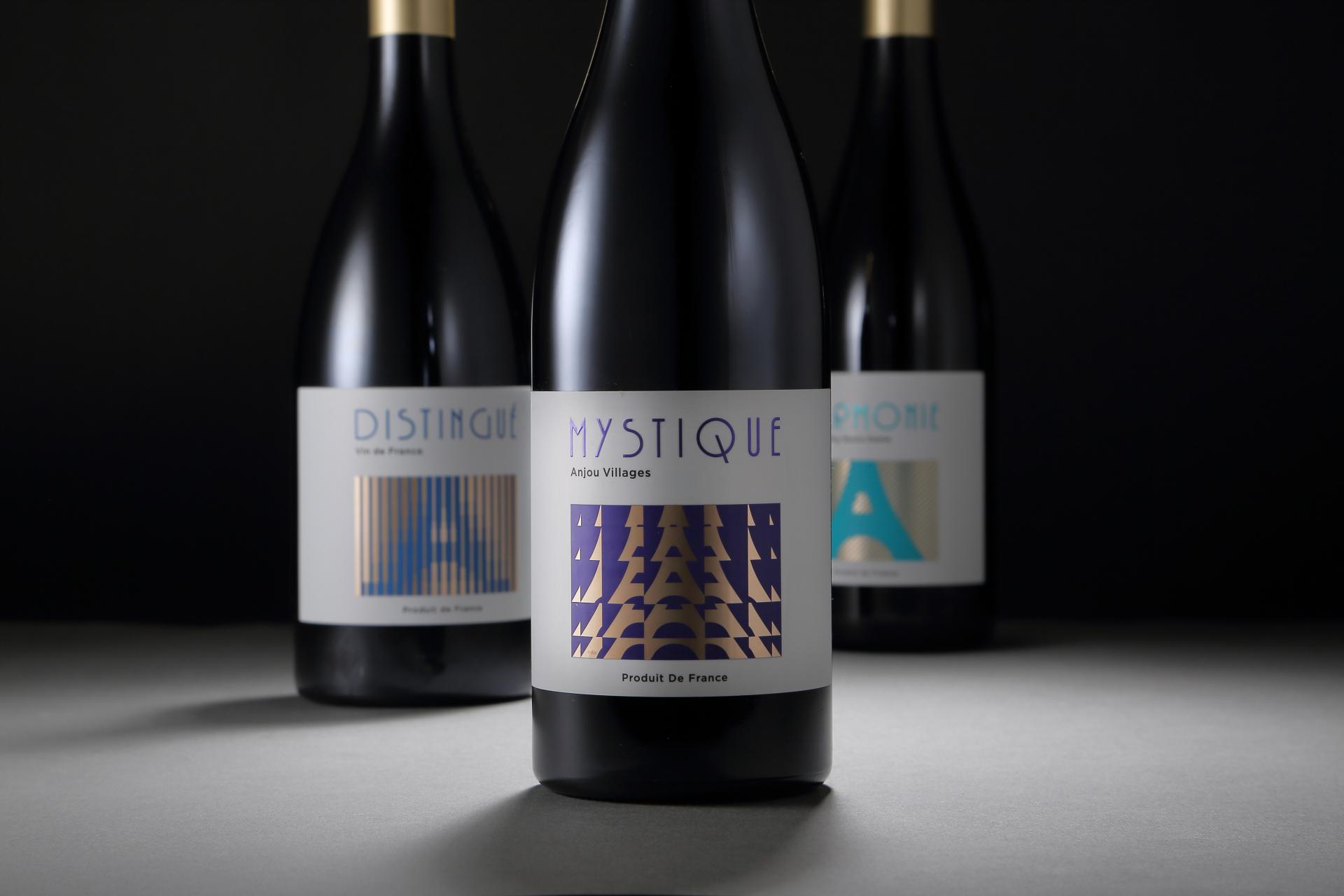 The wine label design features a reimagined mid-section of the Eiffel Tower as its visual core, with its structure and lines elegantly transformed to symbolize the fluidity and layered complexity of wine. Each bottle is crafted to reflect its unique flavor profile, merging abstract design elements to create a harmonious visual identity. Accents of gold foil weave through the design, echoing the dynamic interplay of people and cultures within the city, where every interaction and moment of exchange adds a radiant touch to daily life.