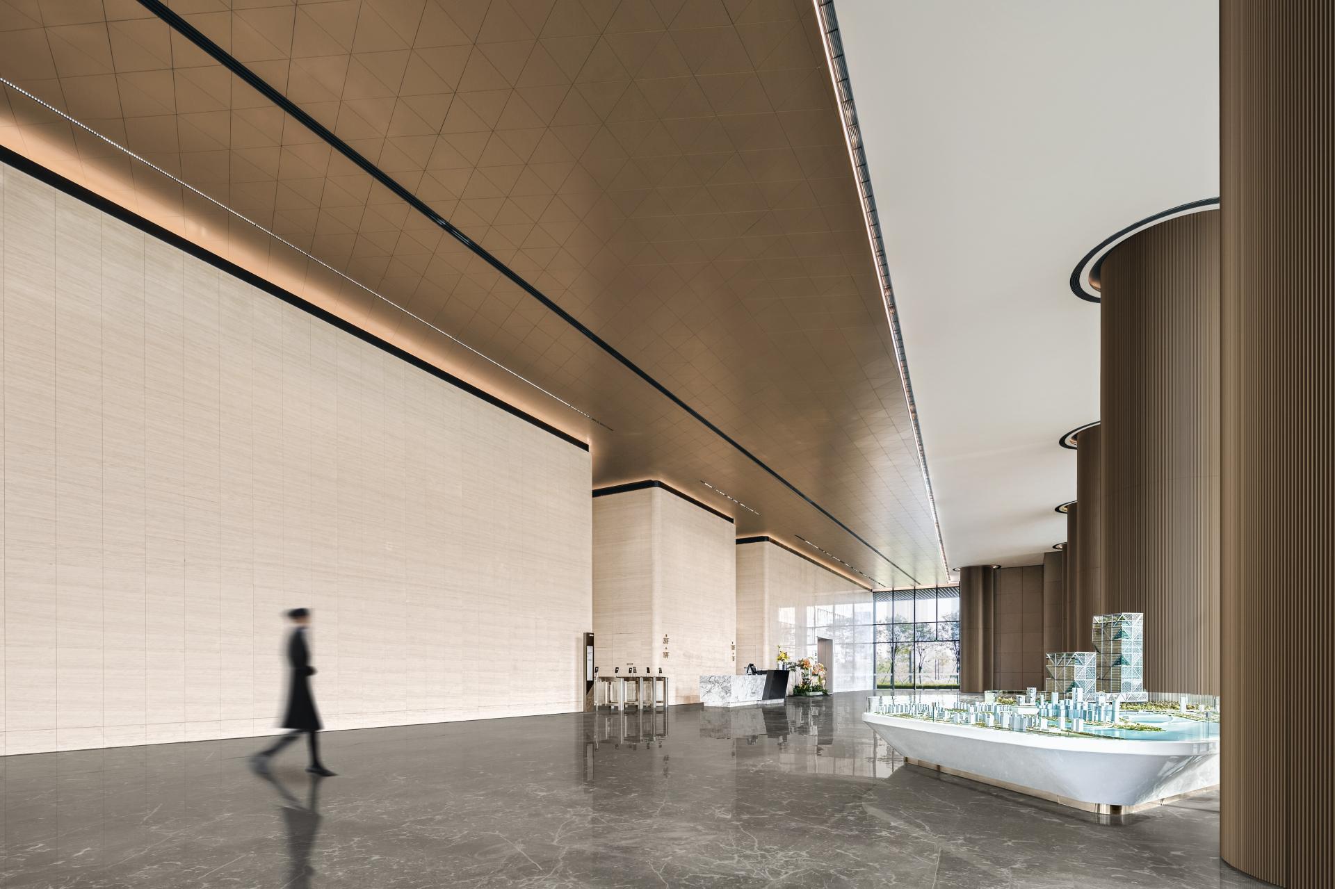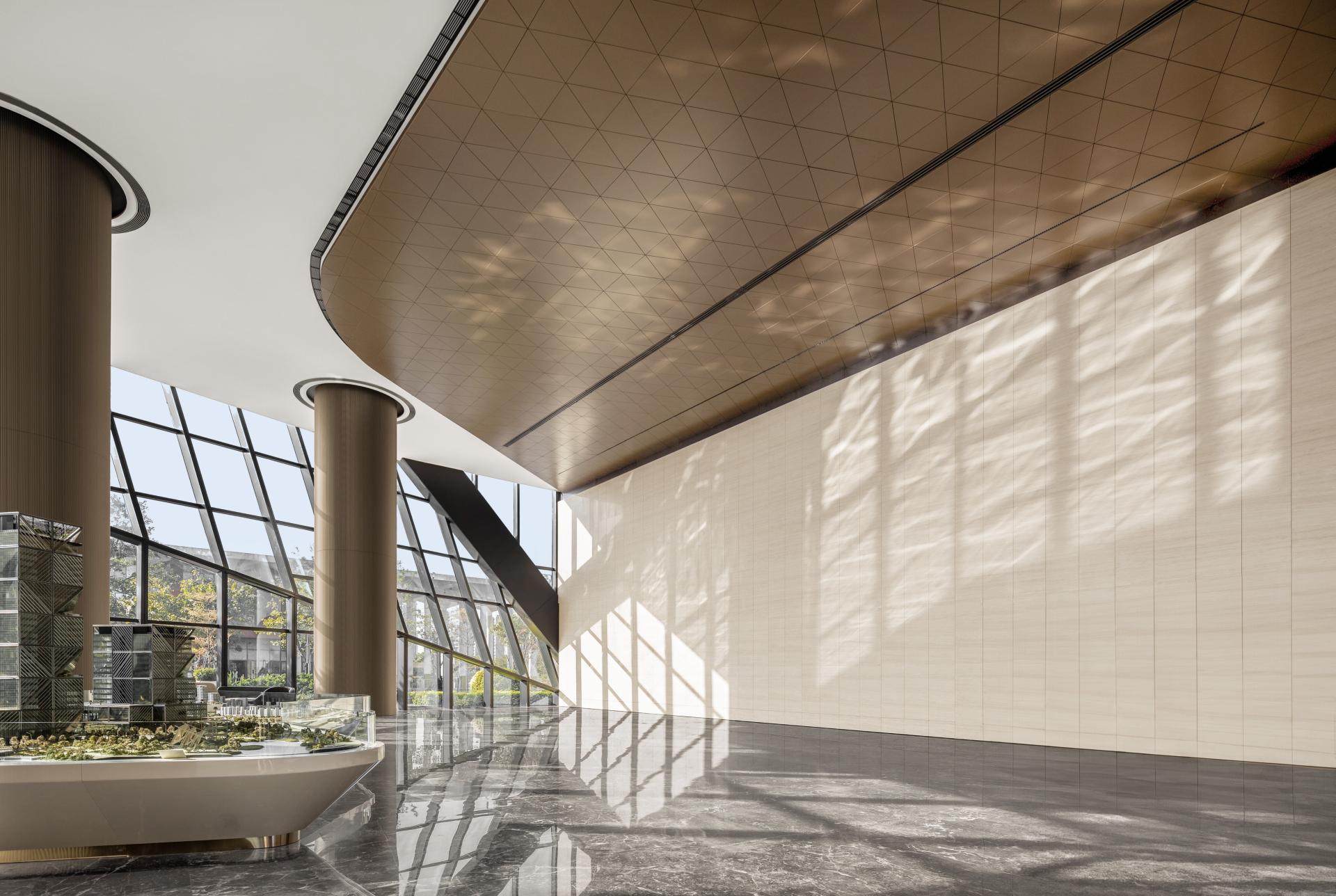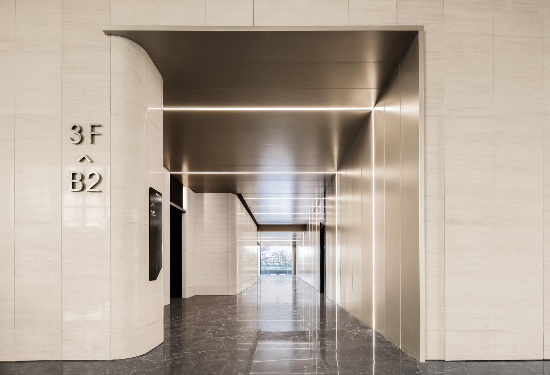 The project highlights a "dual-tower + diamond-shaped façade" design, extending the geometric cutting language of the building's exterior to the interior. Adopting a unique structuralist style, the project constructs a solid yet artistic building appearance through the clever combination of lines and geometric shapes. The interior space continues this design philosophy, with streamlined metal lines on the ceilings and walls, and staggered stone finishes that echo the diamond cuts and symbolic lines of the exterior façade, creating a visual continuity between the inside and outside. The office area adopts an off-center core structure layout, freeing up a column-free open office space that maximizes a 270° panoramic river view. The bold lines of the building's exterior complement the soft atmosphere of the interior space, jointly creating a modern yet cozy business environment.