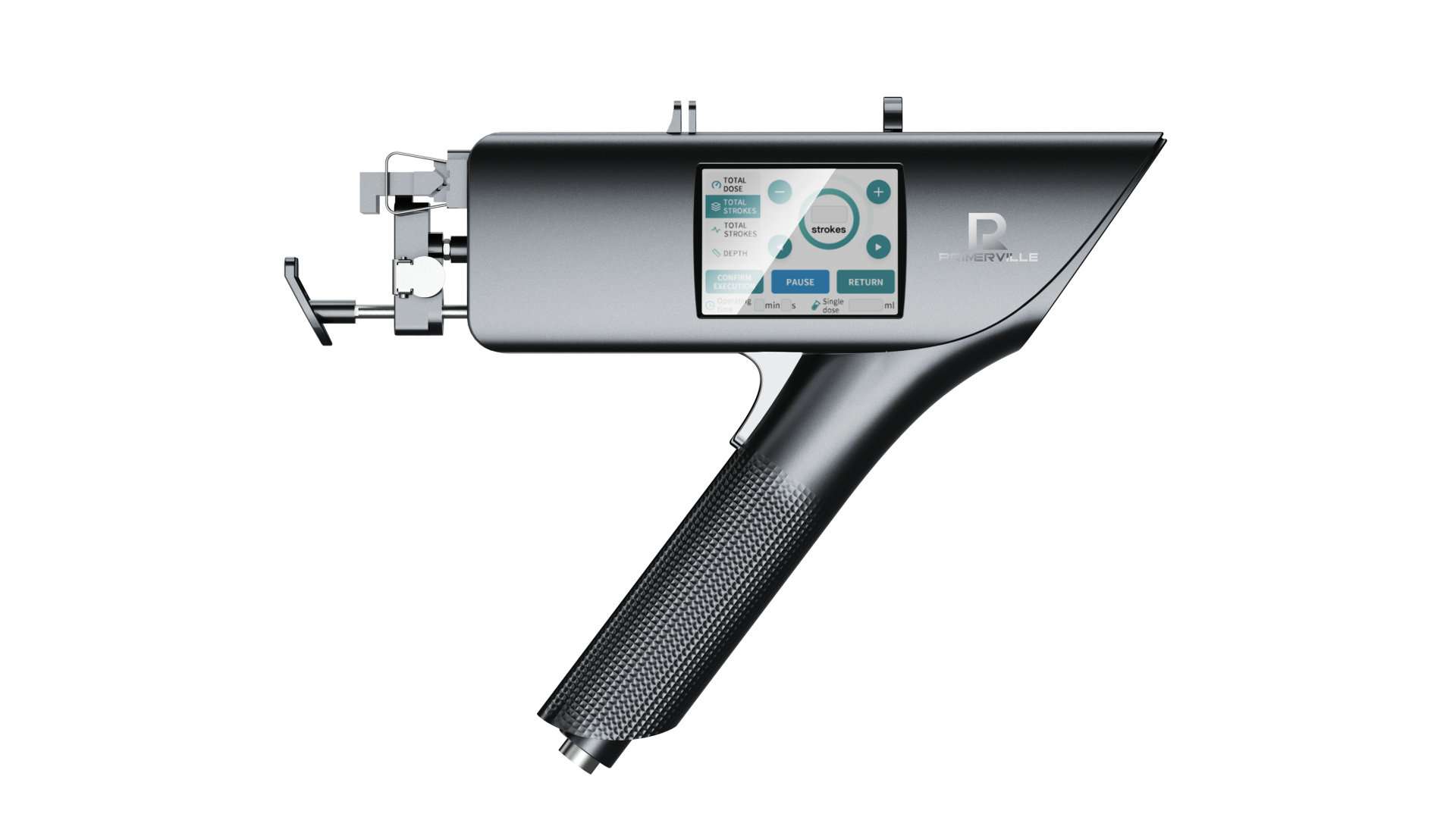This automatic injector adopts a minimalist streamlined design, breaking the stereotype of traditional injectors and shaping unique brand language of PRIMERVILLE. The handle conforms to the natural grip of the hand and is covered with natural textures, ensuring stable and comfortable operation for a long time. Intelligent pressure feedback is built into the index finger pressing area, allowing for precise control of injection flow with a light touch. The matching bracket makes it very convenient to place the automatic injector during work pauses, making the entire medical beauty process smoother. Through the deep integration of good human-machine design and internal precision software and hardware systems, it subverts the traditional paradigm of syringe operation and redefines the precision and elegance of medical beauty injection.