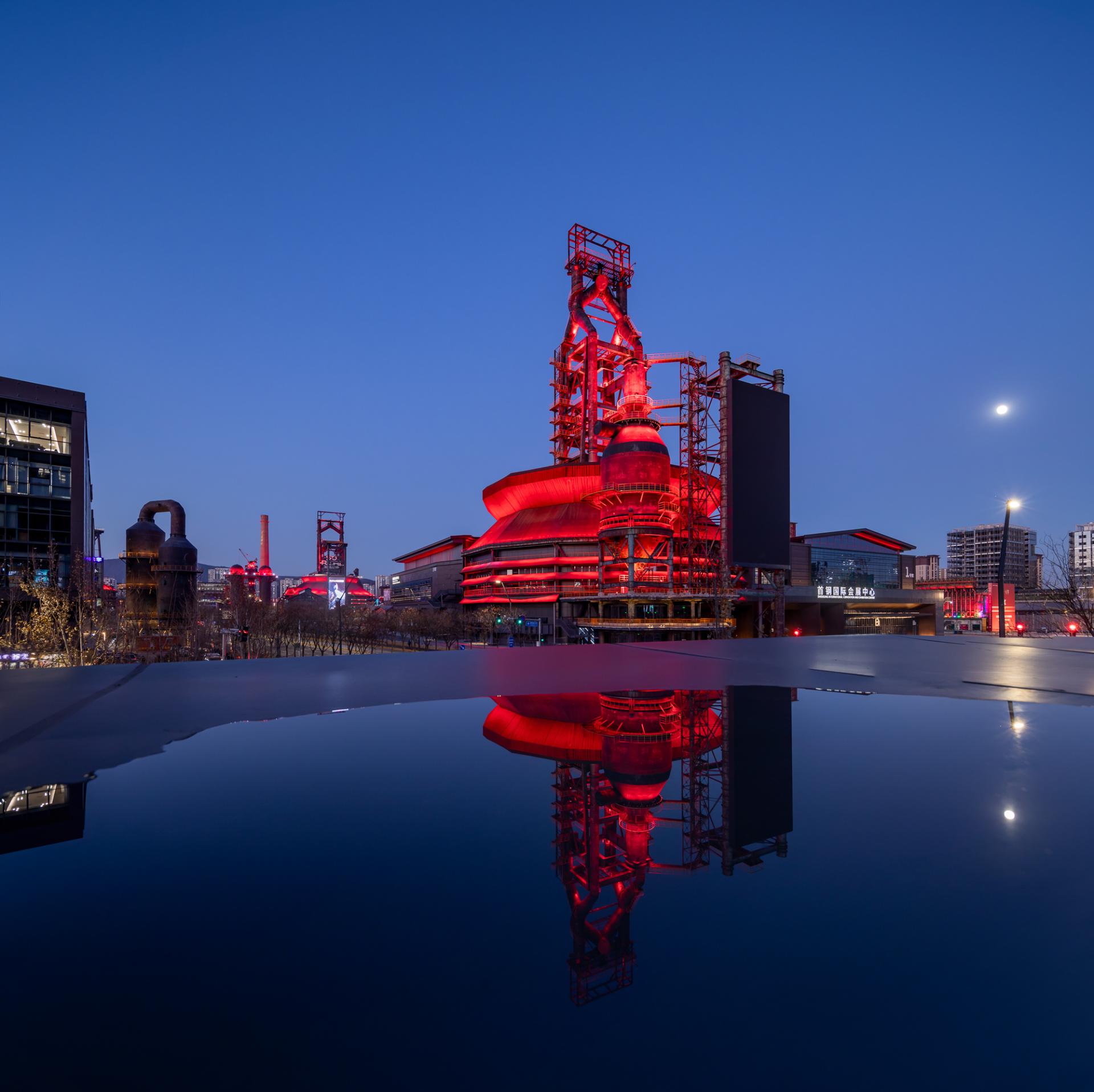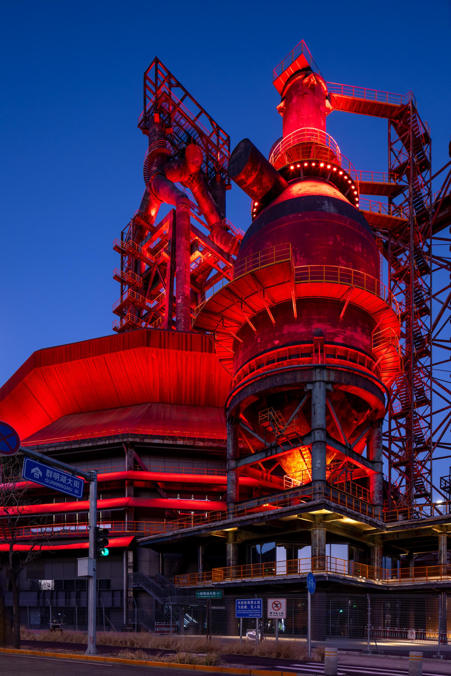 When the No. 4 Blast Furnace is all lit up, it's impossible to miss. You can spot it from between new buildings, across Qunming Lake, from the High - Line Bridge, along the extended Chang'an Street, and even from the S1 Line. Along with the other blast furnaces, it shapes Shougang's amazing night view. Our design is all about helping this furnace hold onto its rich history while smoothly fitting into the modern park, nailing that perfect mix of industrial heritage and contemporary space.