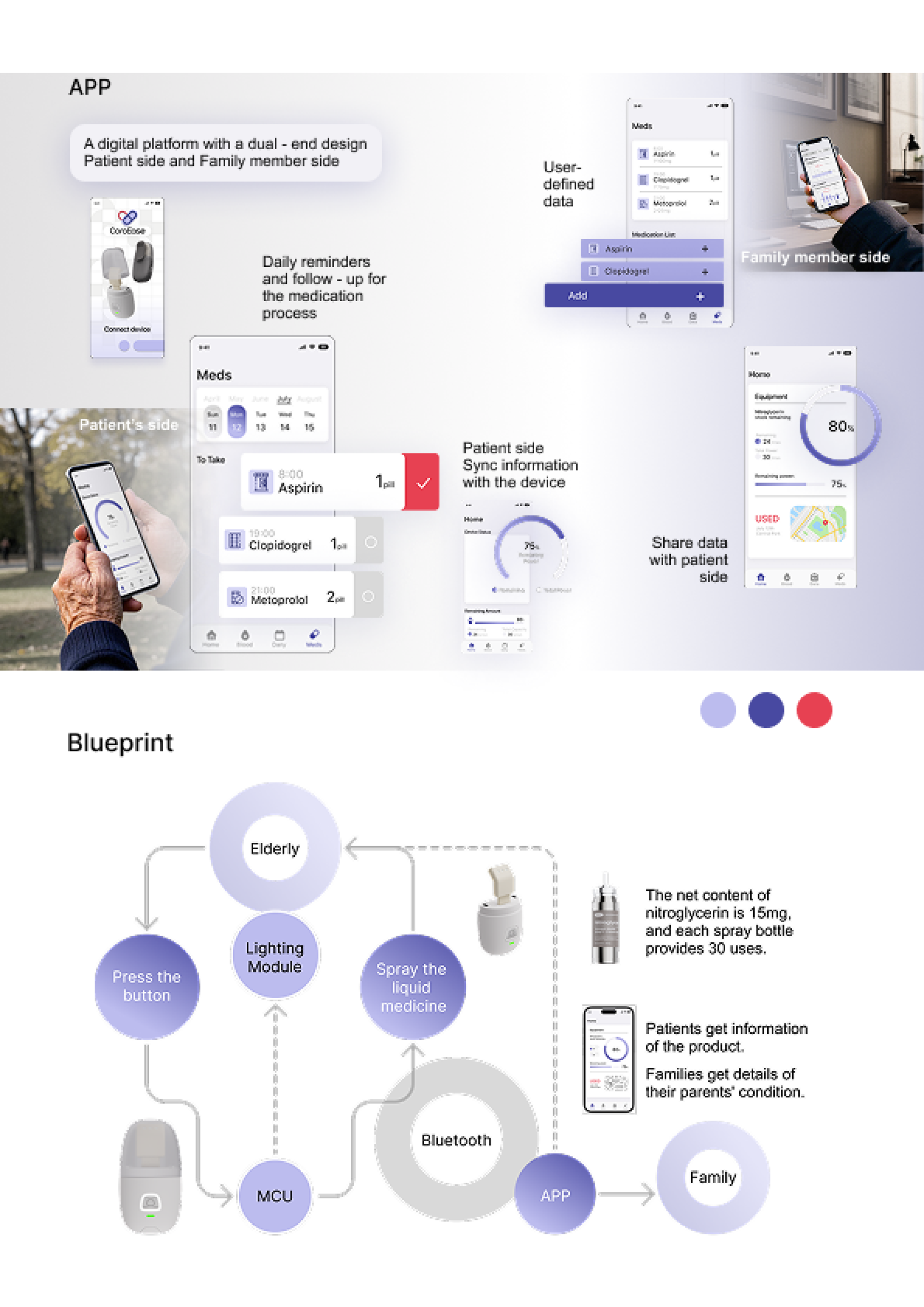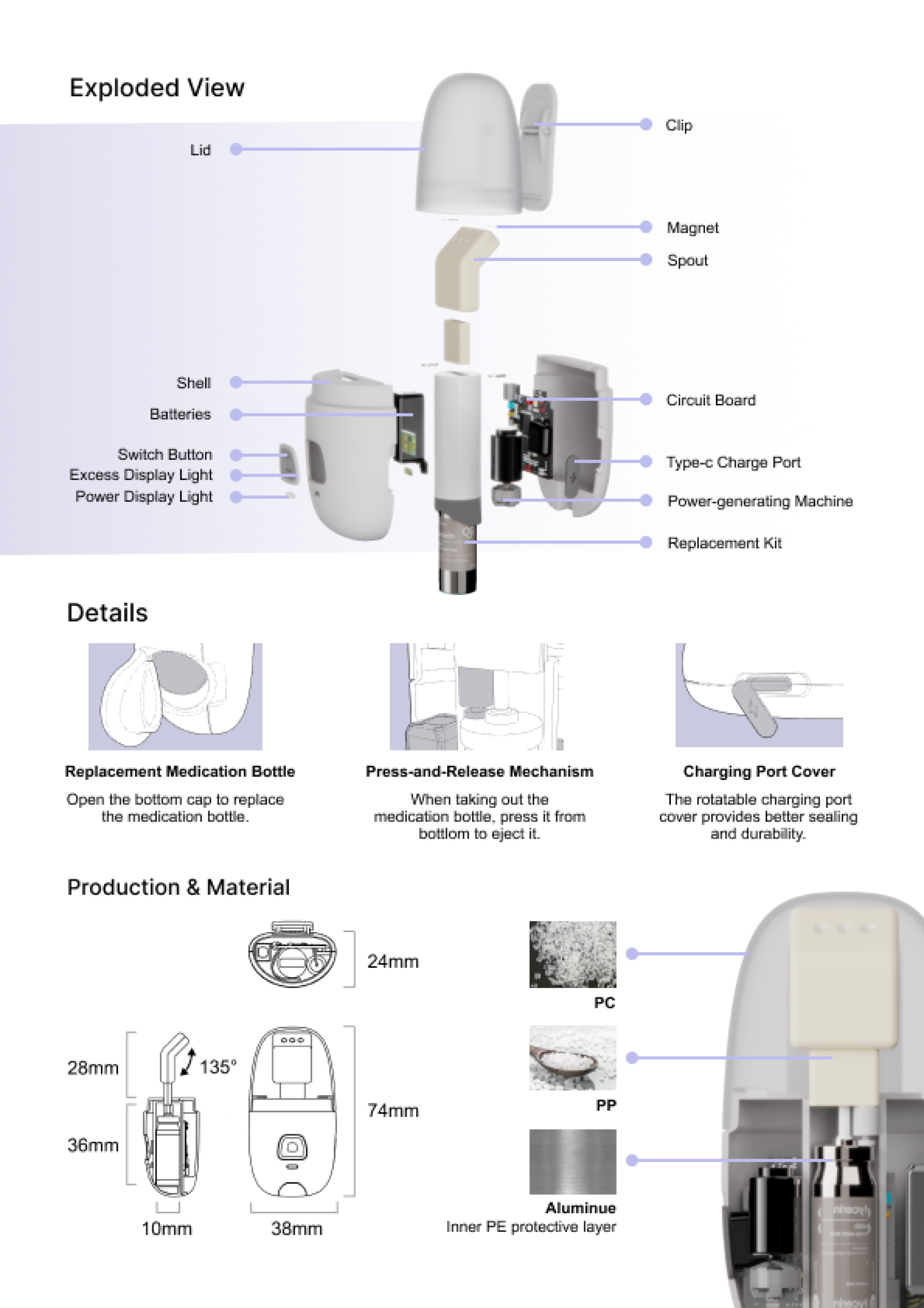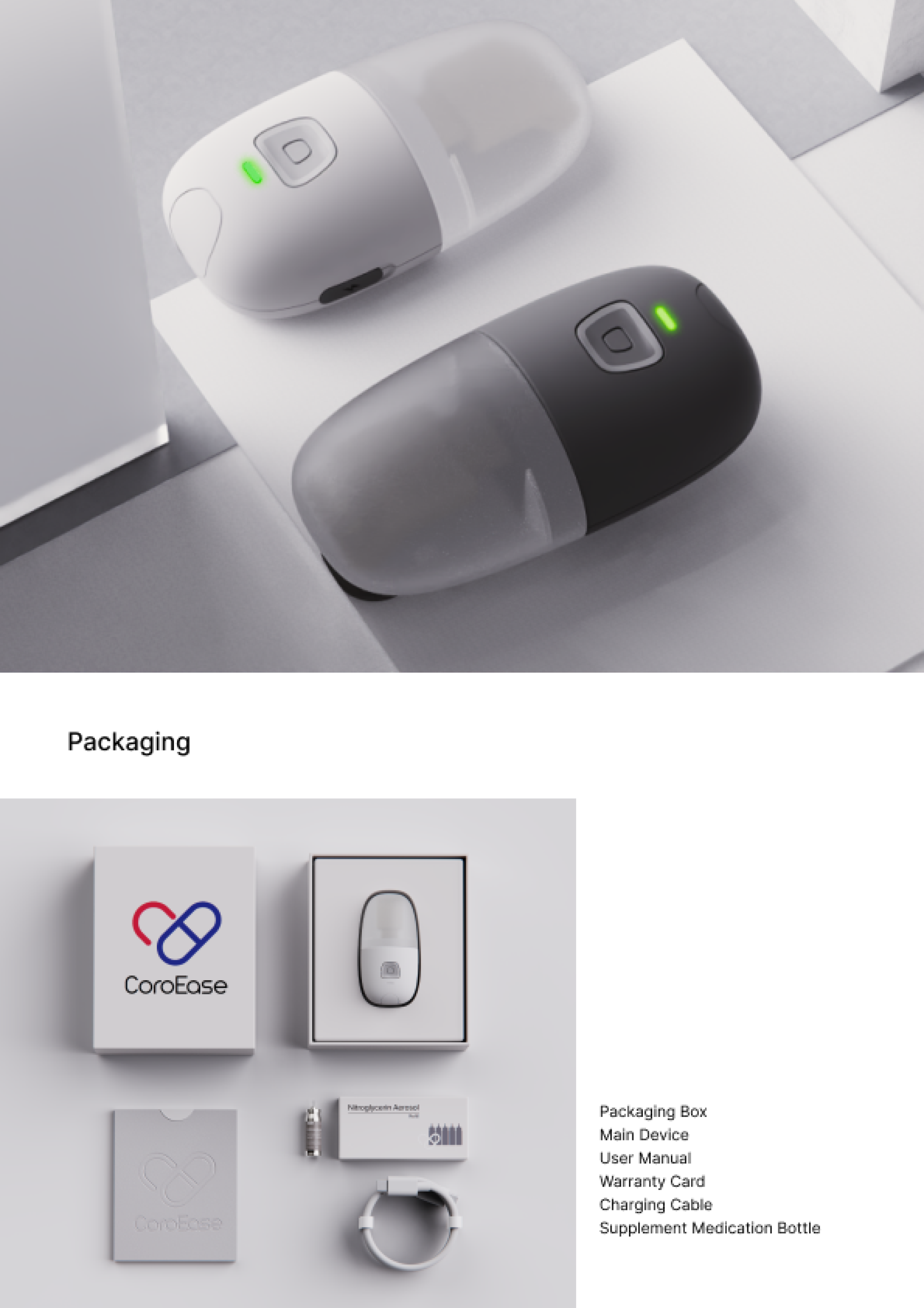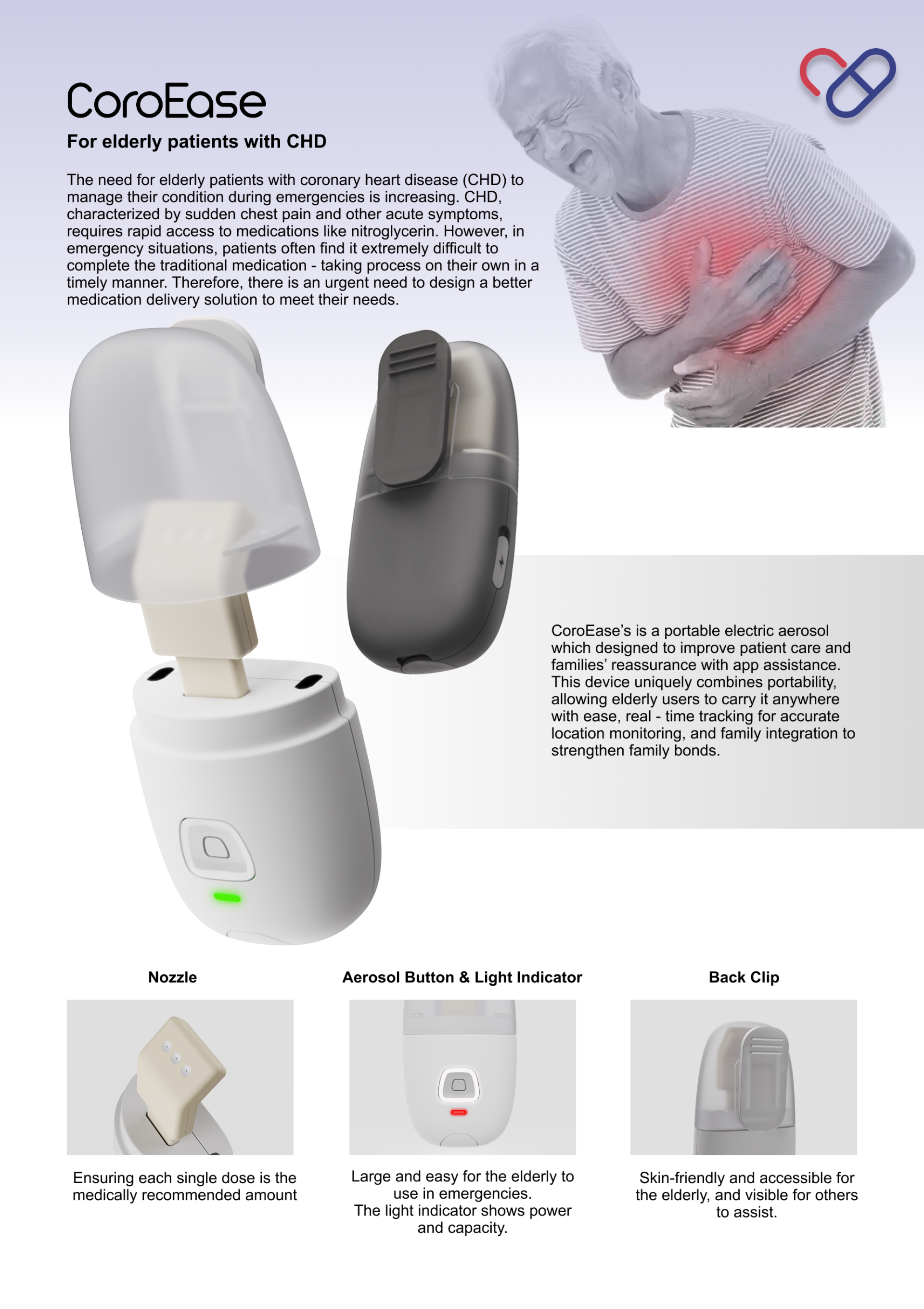 Our design "CoroEase", is a portable electric aerosol which designed to improve patient care and families’ reassurance with app assistance. It offers solution and novel aspects below: