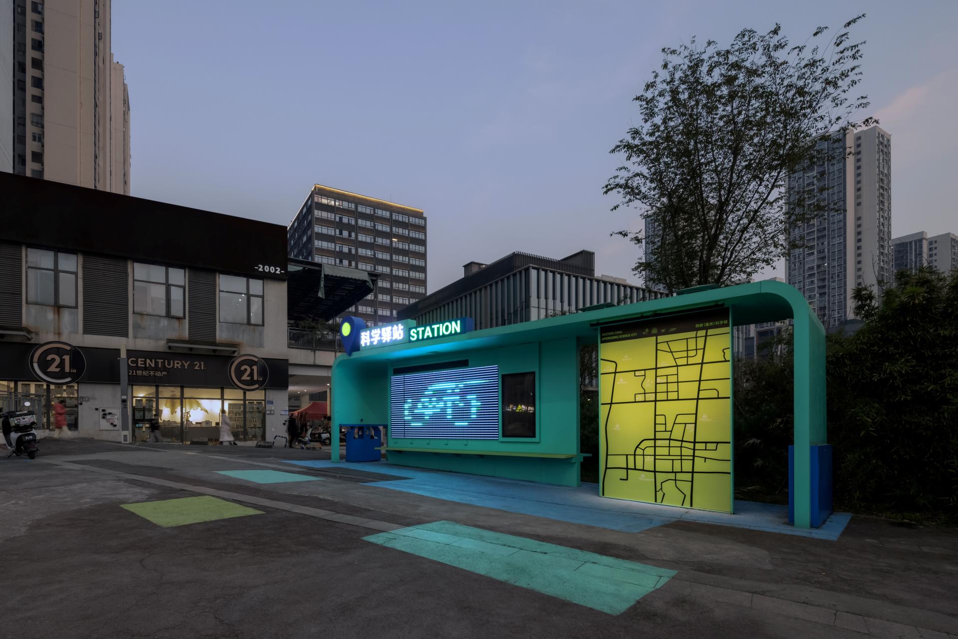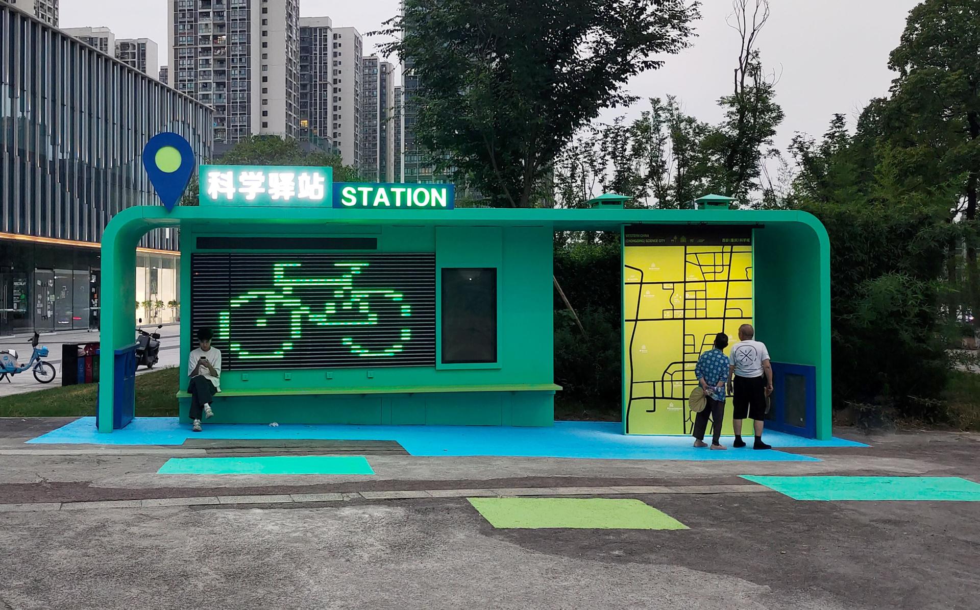 Although the urban post station is a small space, as an important hub in the slow-moving system, it improves the functional supporting system. The dynamic vision of the slow-moving system displayed on the LED display screen strengthens the brand theme of "Scientific Post Road". The newly added functional facilities of the post station have improved the overall experience of the urban public space, conveying the inclusiveness and sharing of the science city, allowing residents to communicate with the city in the post station and feel the warmth and love of the city.