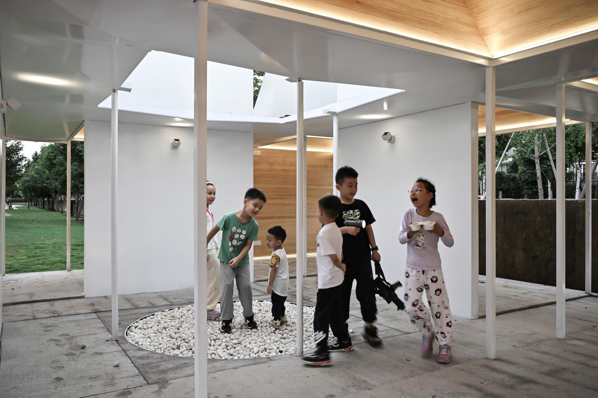 Magic Square Pavilion is an elegant urban landmark set along the west bund of Huangpu River in Shanghai. Drawing on a deep understanding of local waterfront lifestyles and public space dynamics, the pavilion serves as an open, all-weather shelter for diverse daily activities. Inspired by ancient Chinese numerical principles of the Hetu LuoShu, the pavilion’s design is articulated through eight identically shaped yet differently oriented single-slope roofs. These roof forms are dictated by a unique interplay of numerical parameters—distinguishing odd from even and large from small—imbuing the pavilion with a subtle, layered spatial logic. Despite its compact footprint, the pavilion achieves a refined balance between nature and built form, uniting robust steel and warm timber into a light yet resilient load-bearing system. Meticulous detailing in roof engineering, drainage, and waterproofing underscores the project’s technical innovation. Completed in a record 75 days from design to finish—and constructed within a challenging 20-day window under inclement weather—the pavilion epitomizes the fusion of cultural depth with Shanghai’s urban fabric.