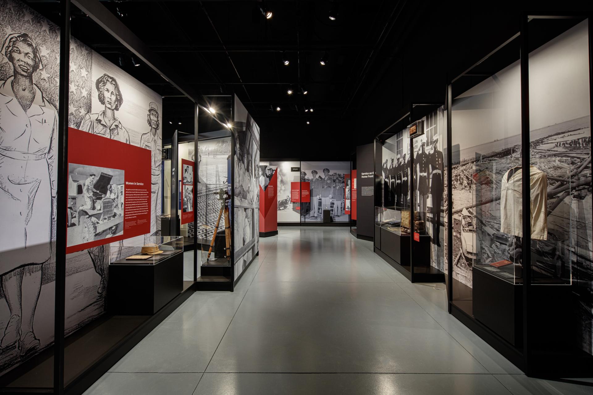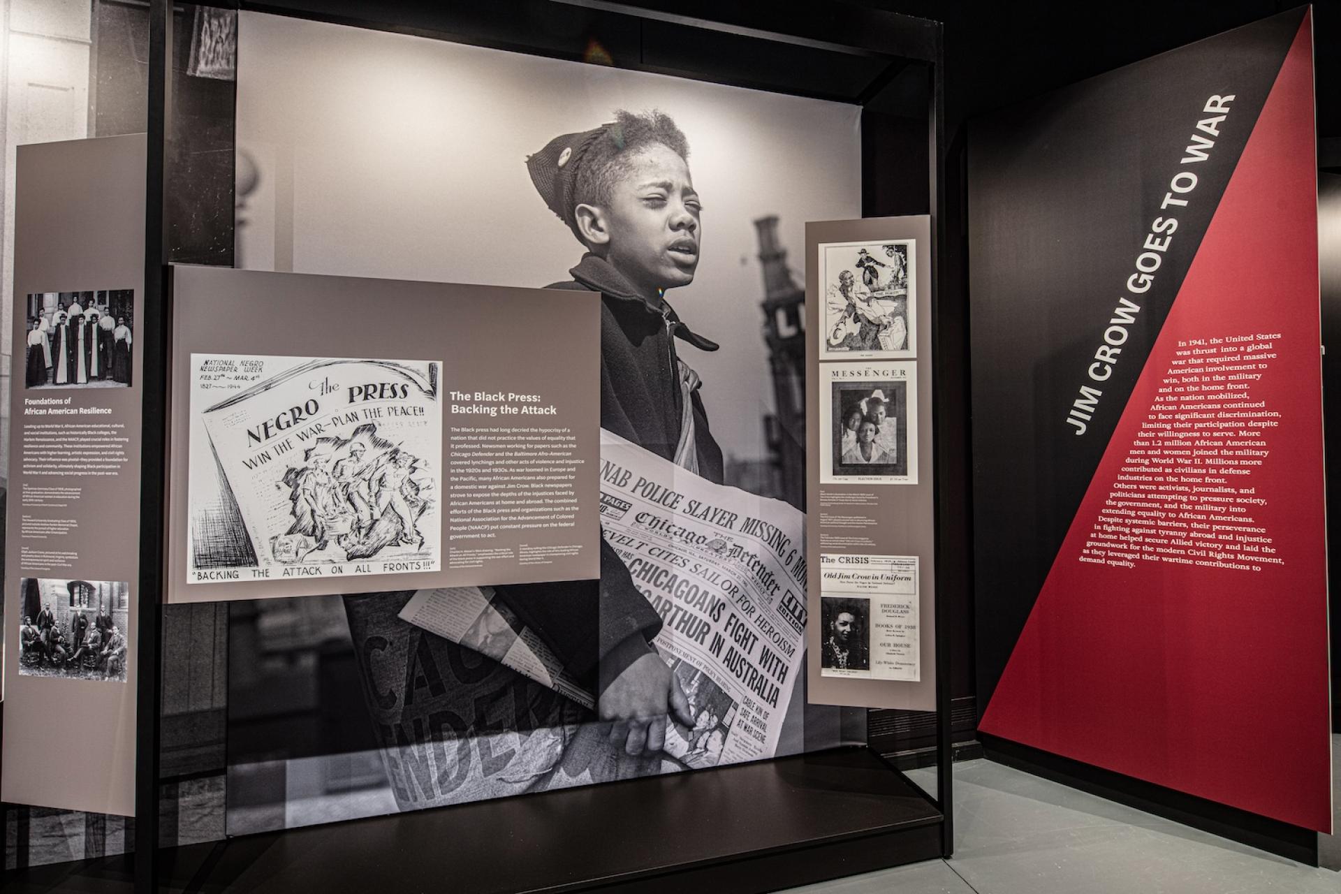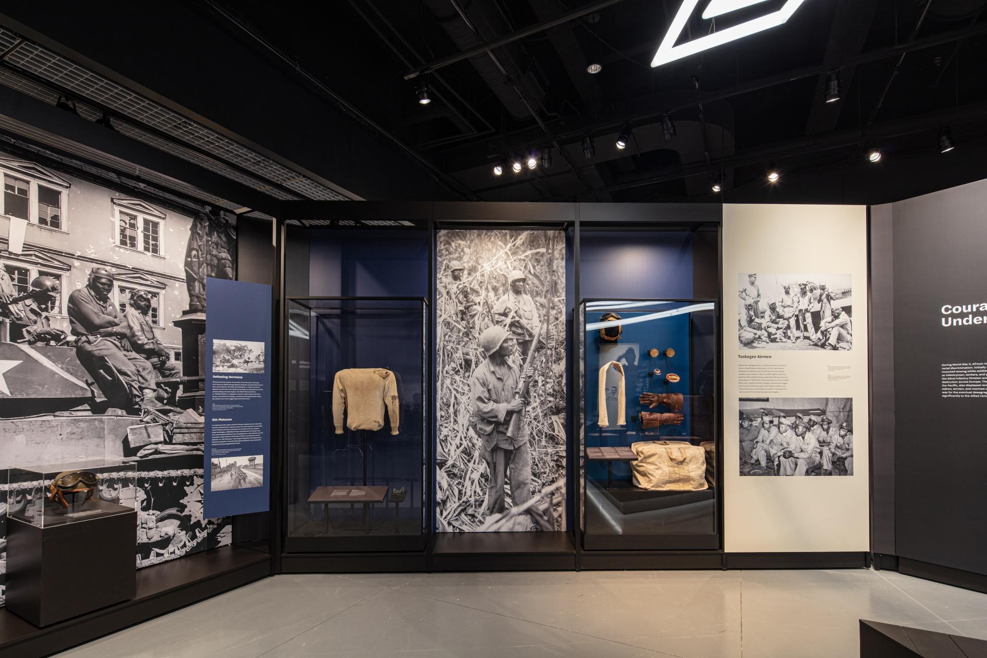 The exhibition engages the military service, civilian contributions, and activism of African Americans during the WWII era through the socio-political dynamics of the time period. Visitors learn about "Double Victory," which describes the experiences of African Americans concurrently fighting against fascism abroad and systemic racism at home. The exhibition establishes an understanding that African American war experiences shaped opportunities for the greater African American community during the war, served as a catalyst to the Civil Rights Movement after the war, and continues to have an impact on our lives today.