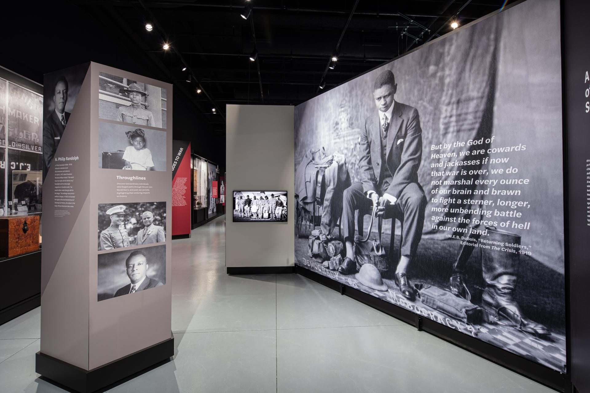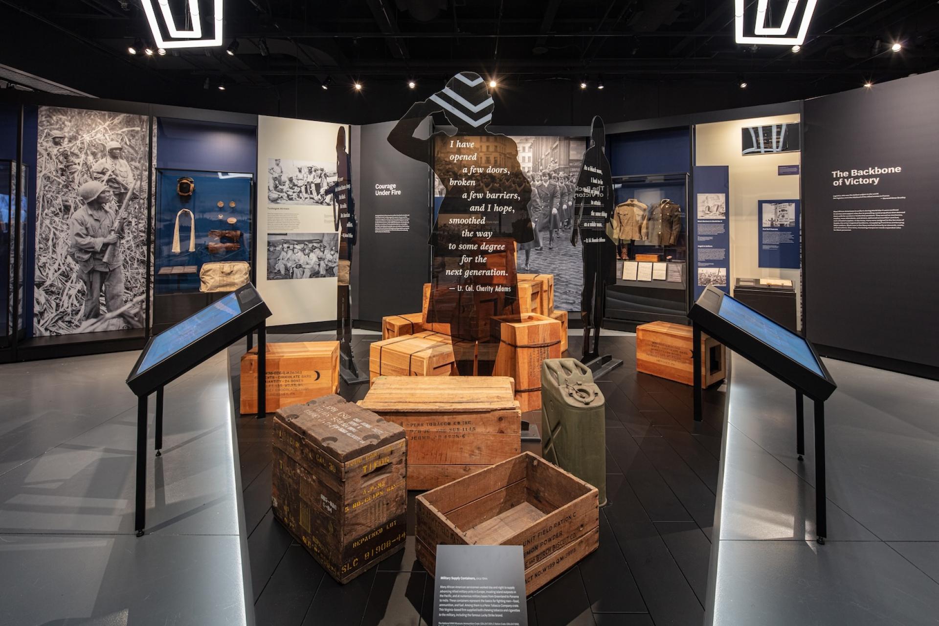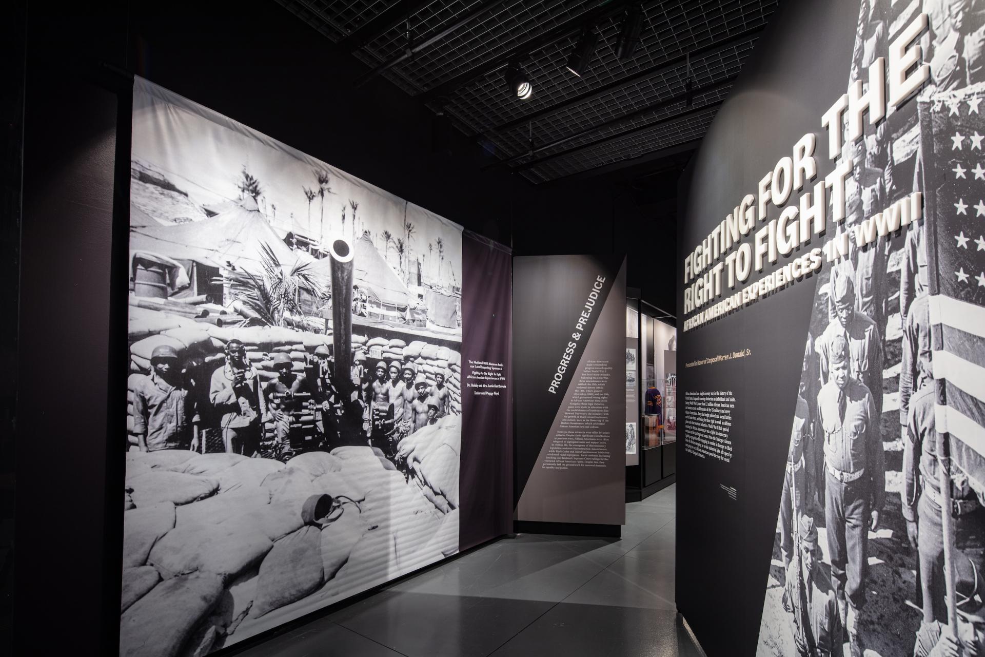 The exhibition engages the military service, civilian contributions, and activism of African Americans during the WWII era through the socio-political dynamics of the time period. Visitors learn about "Double Victory," which describes the experiences of African Americans concurrently fighting against fascism abroad and systemic racism at home. The exhibition establishes an understanding that African American war experiences shaped opportunities for the greater African American community during the war, served as a catalyst to the Civil Rights Movement after the war, and continues to have an impact on our lives today.