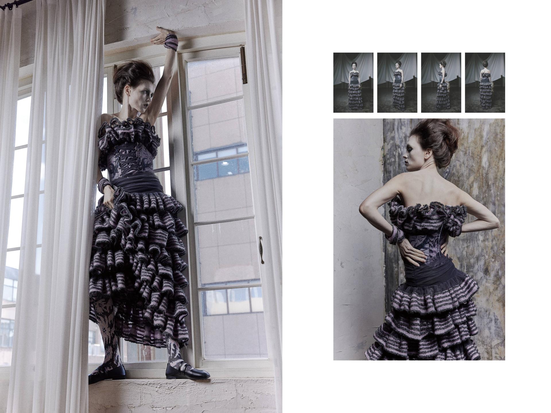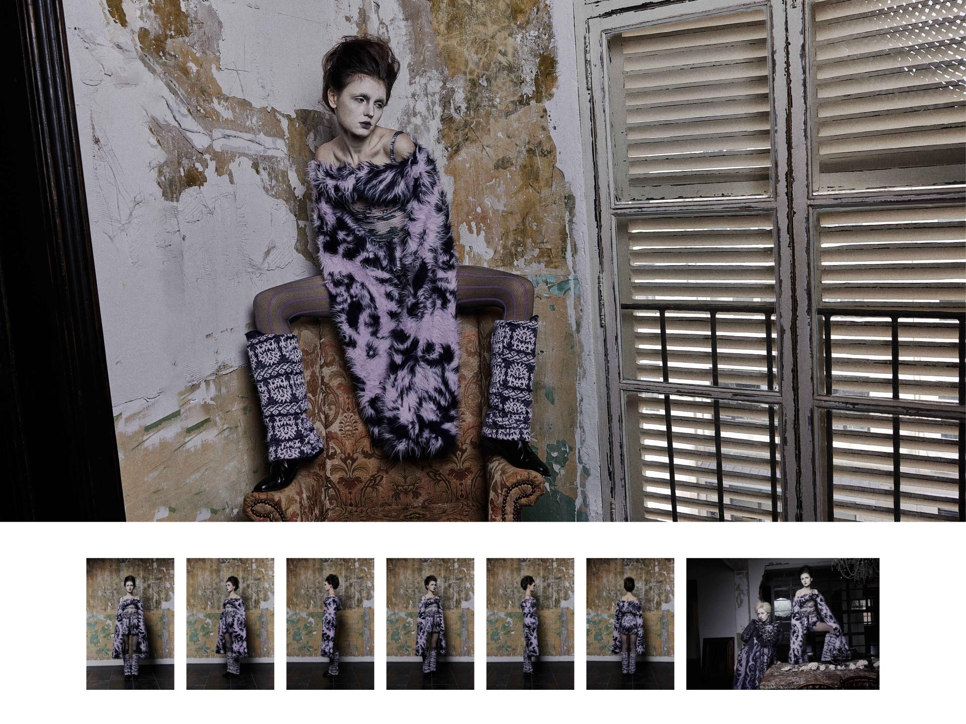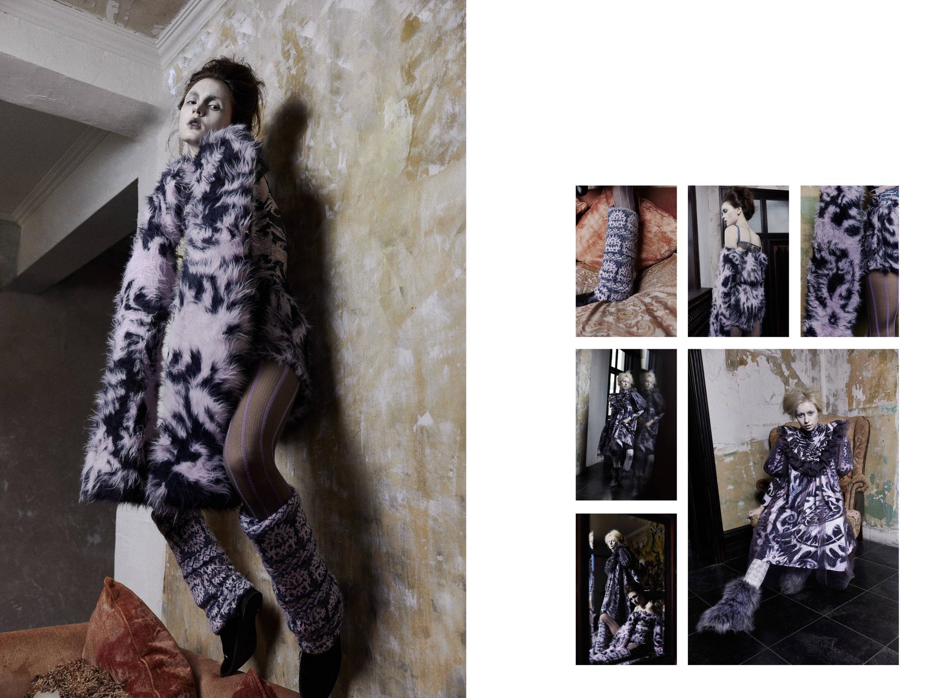 Nightmare is inspired by my fear of birds. The textile design focuses on individuals with niche phobias and psychological disorders. Through my personal experience of this fear, I express it artistically in the form of illustrations, which are then transformed into patterns and prints. These are combined with knitwear design to explore innovative visual presentations. For the yarn selection, I primarily used fluffy yarns to create a soothing, childlike texture.