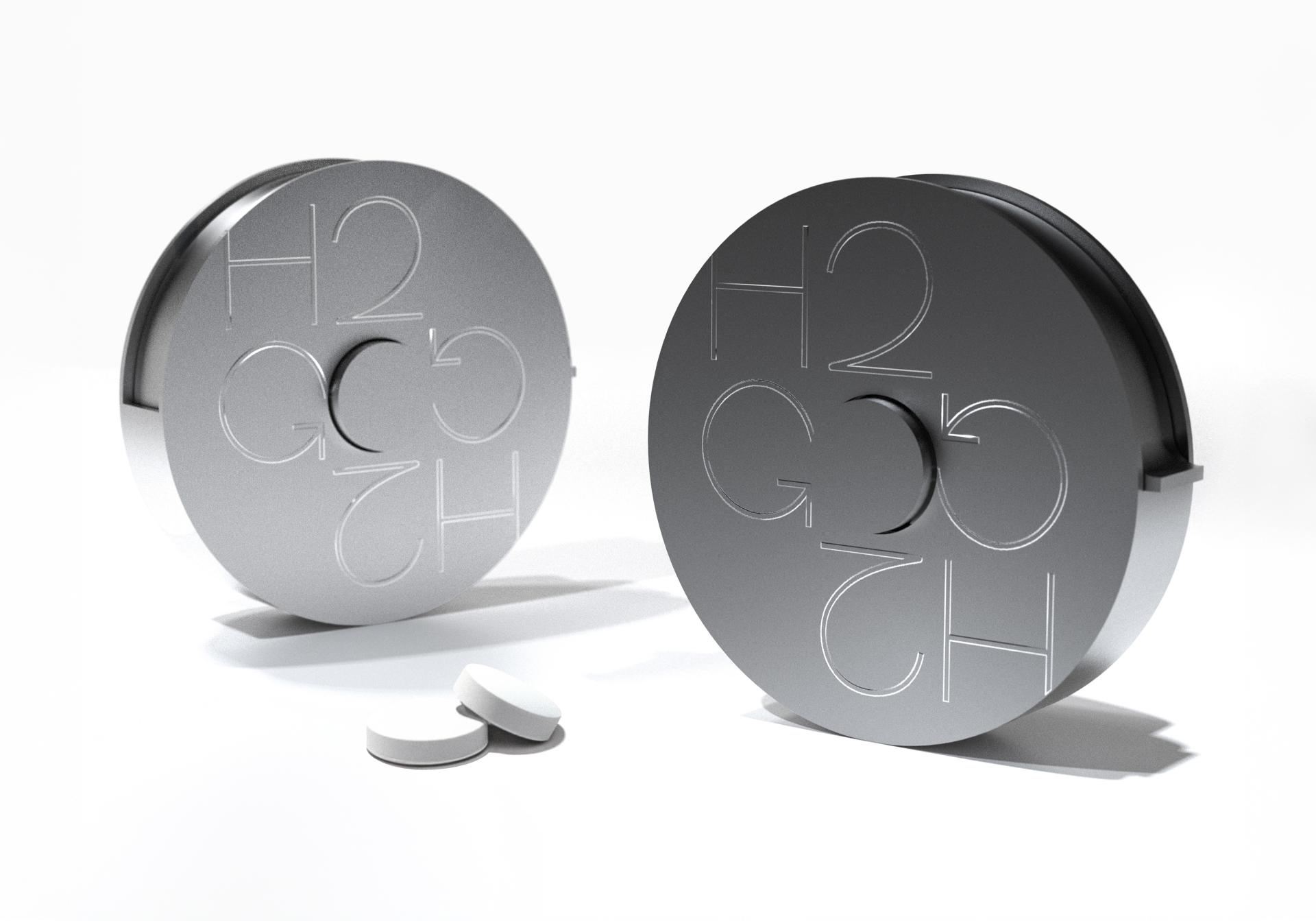 Made from durable stainless steel, the eco-friendly design reduces single-use plastic waste while offering a reusable solution. The refillable cylindrical packaging includes a dual-slot opening system: a smaller slot for dispensing one tablet at a time and a larger slot for easy refilling. The collapsible cup expands for quick use and folds neatly into the packaging, eliminating the need for extra accessories. An internal clasp mechanism adds to its intuitive, press-to-open functionality while maintaining a sleek appearance.
