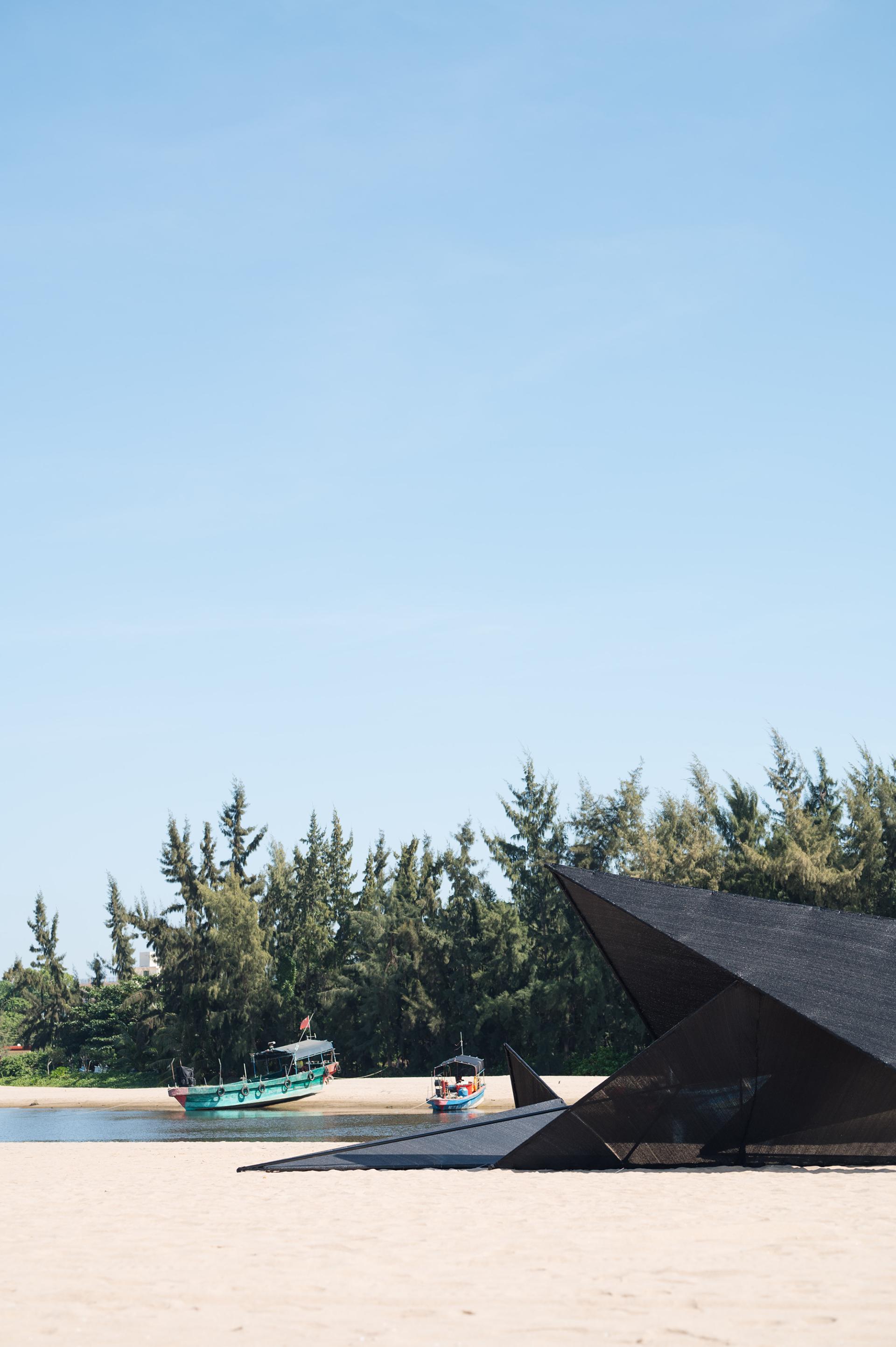 The "OAS/S-VESSE" installation at MEILIAN CŪN is unique fusion of art, nature, and the future. Located on the coastal sands of MEILIAN CŪN in Sanya, this installation not only bridges the gap between tradition and innovation but also emphasizes the deep connection between humans and nature. The design draws inspiration from the sails of ships, symbolizing the rich maritime culture of Hainan, as well as the wisdom of fishermen who live in harmony with the sea.
