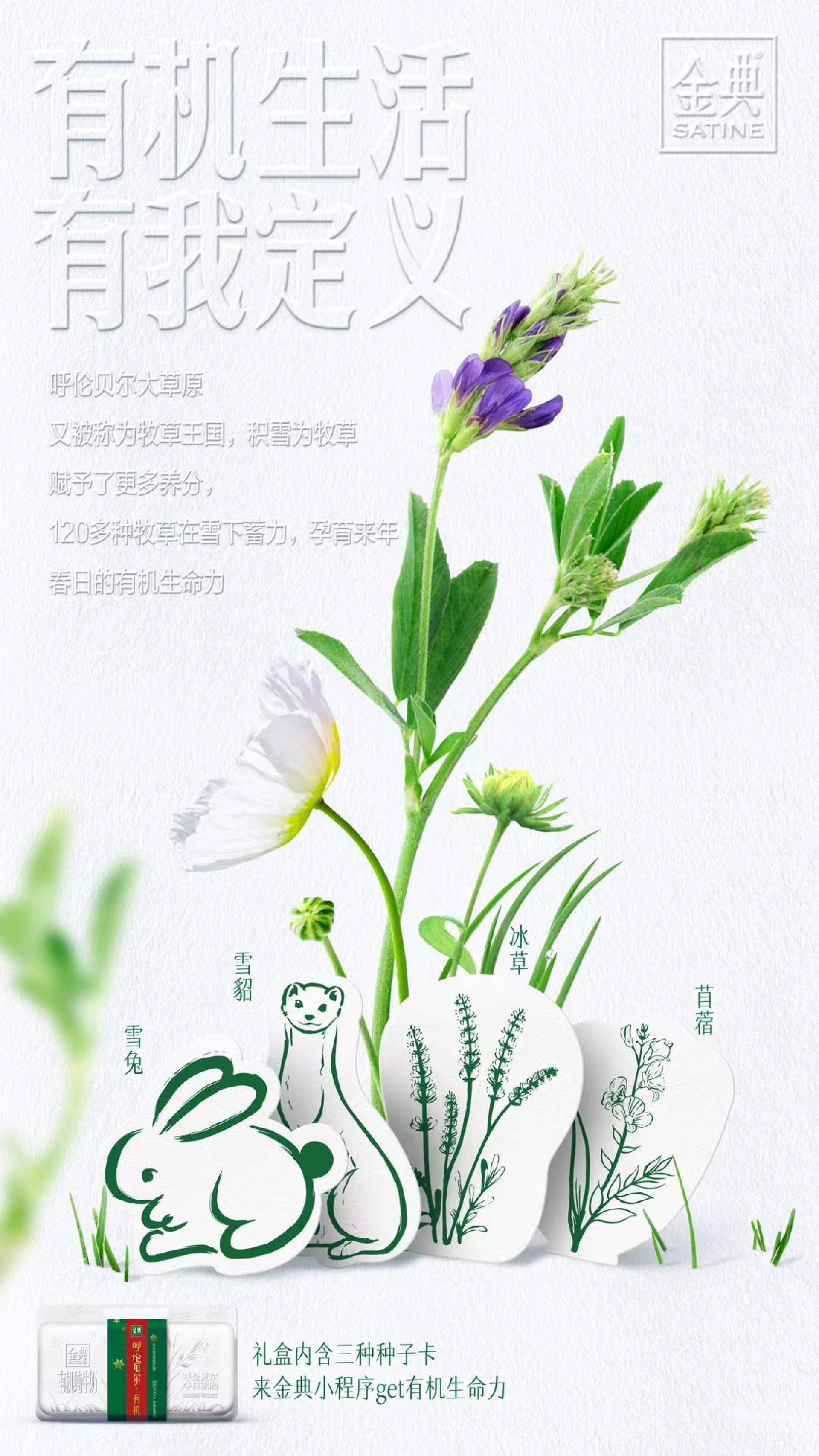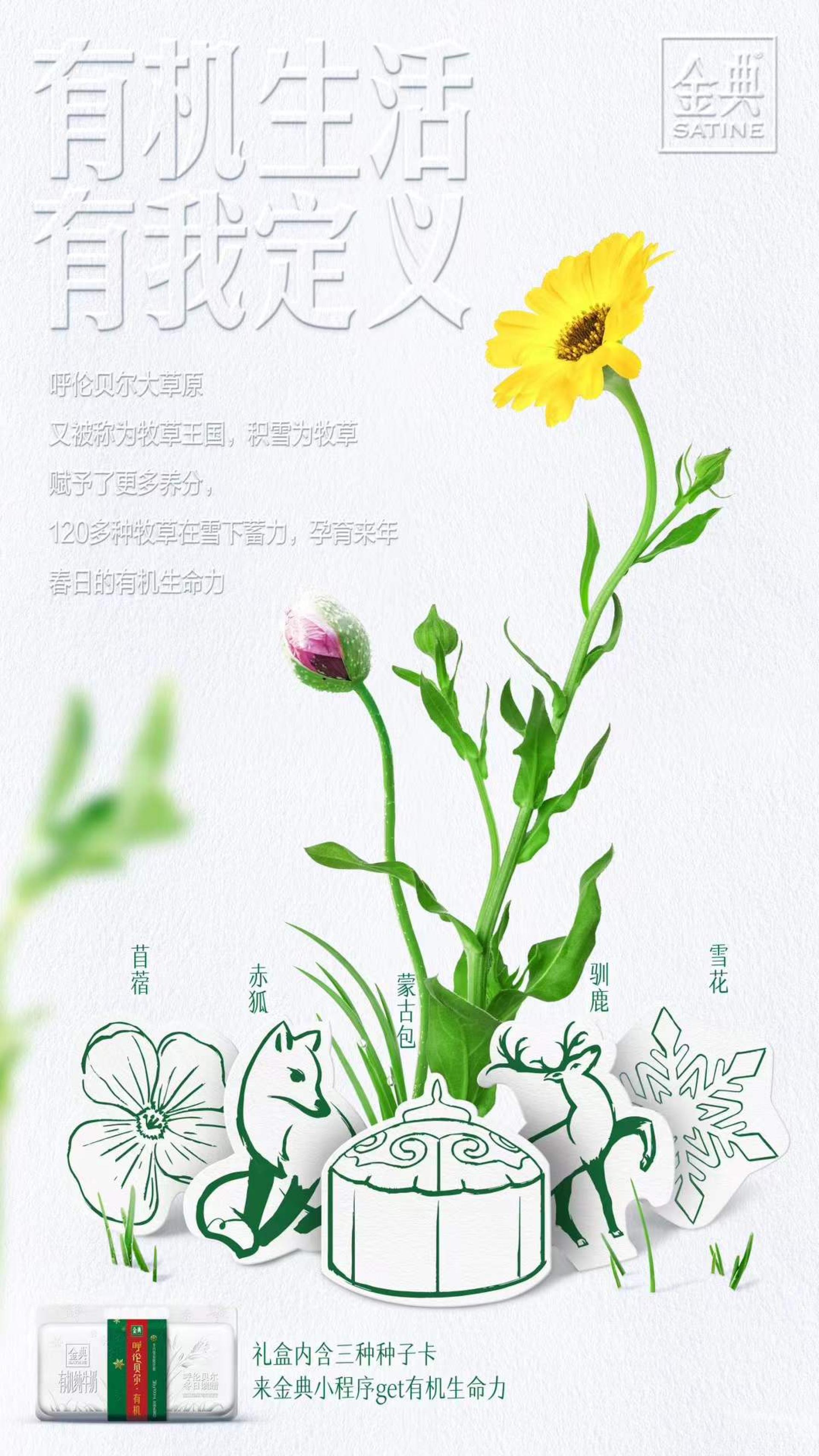 The box is formed using wet pressing technology all-in-one molding, with design elements and product information embossed, and zero ink or printing. Made entirely of plant-based materials, primarily sugarcane bagasse and bamboo fiber, the box degrades completely within six months under natural conditions. Designed in pure white, the box utilizes embossing techniques to recreate the snowscape of the Hulunbuir grassland, restoring the beauty of the pure winter grassland on the product packaging, further showcasing the product’s strength of “good grassland,good organic milk.” Additionally, the box includes a variety of plant seed cards from the Hulunbuir grassland, allowing consumers to reuse the outer packaging as a flower pot.