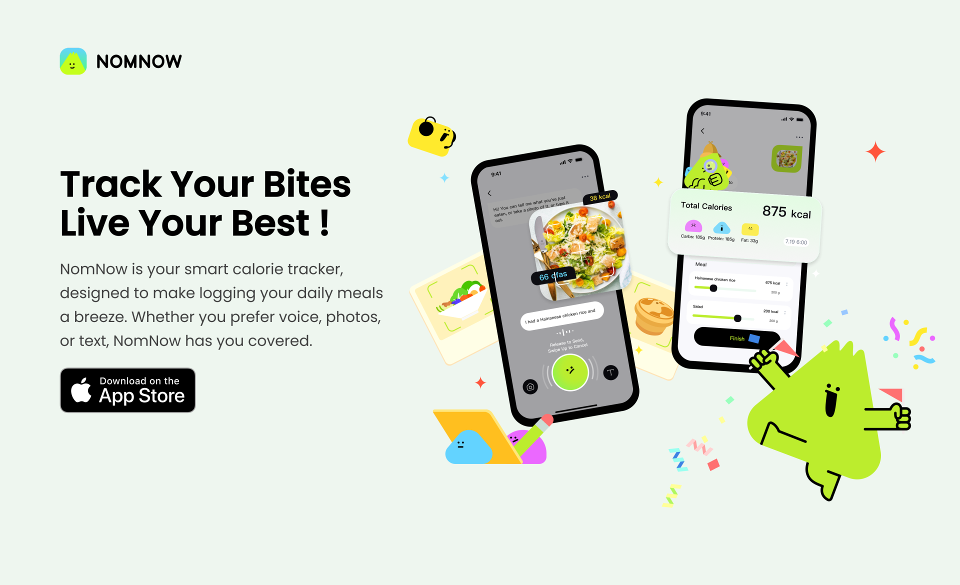 NomNow simplifies the process with AI-powered voice, image, and text tracking. Instead of manually entering data, users can speak naturally, snap a photo, or type freely. AI not only accurately identifies food, calculates nutrition, and logs it seamlessly, but also learns and adapts to your tracking habits.