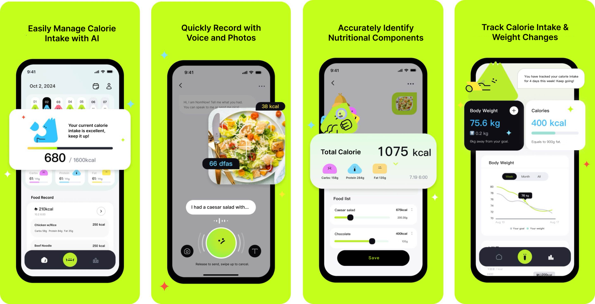 For example, if a user eats an apple but doesn’t know its weight, they can say, “I had an apple the size of a tennis ball, at my usual breakfast time.” NomNow’s AI interprets the input, generates a precise calorie count, and records it automatically.