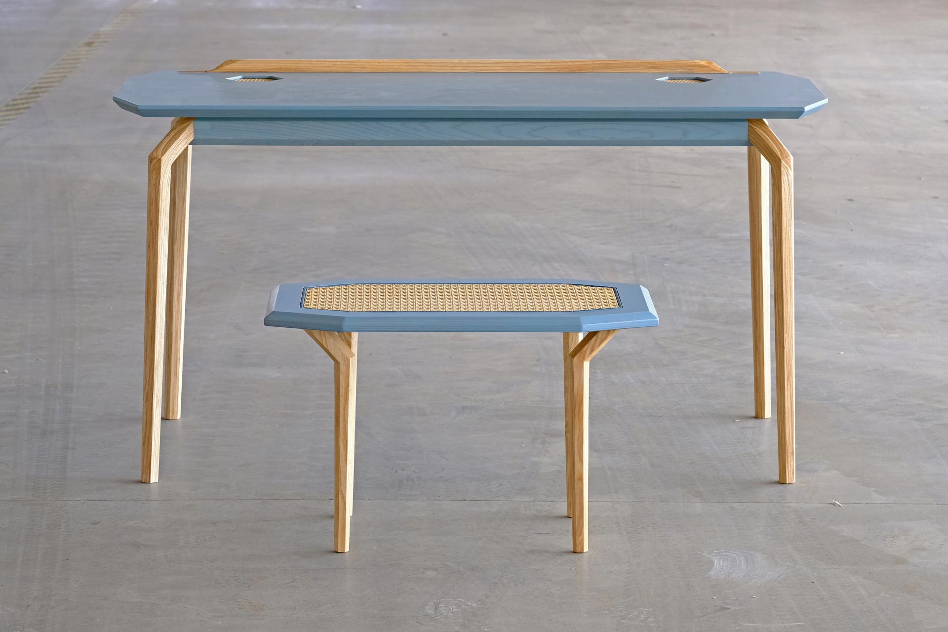 In view for the upcoming Hong Kong Interior Design Week 2025, the Hong Kong Interior Design Association has extended an open invitation for creative furniture designs. Among the noteworthy entries is “Yi Si,” a striking set comprising a working desk and bench. Drawing inspiration from the ancient Chinese study room, “Yi Si” features a hexagonal design that symbolizes "the six directions," embodying principles of harmony, unity, and completeness. The desk showcases a hexagonal top made of highly anti-scratch painted plywood, elegantly supported by folded hexagonal legs, while the bench features a contrasting configuration that complements the ensemble. A sculpted wooden strip at the desk’s far end introduces gentle undulations, mirroring the fluidity of Chinese calligraphy. Enhanced with rattan cup holders set on either side of the desk and incorporated into the bench’s sitting surface, this duo harmoniously fuses classic motifs with sustainable elements suitable for contemporary living.
