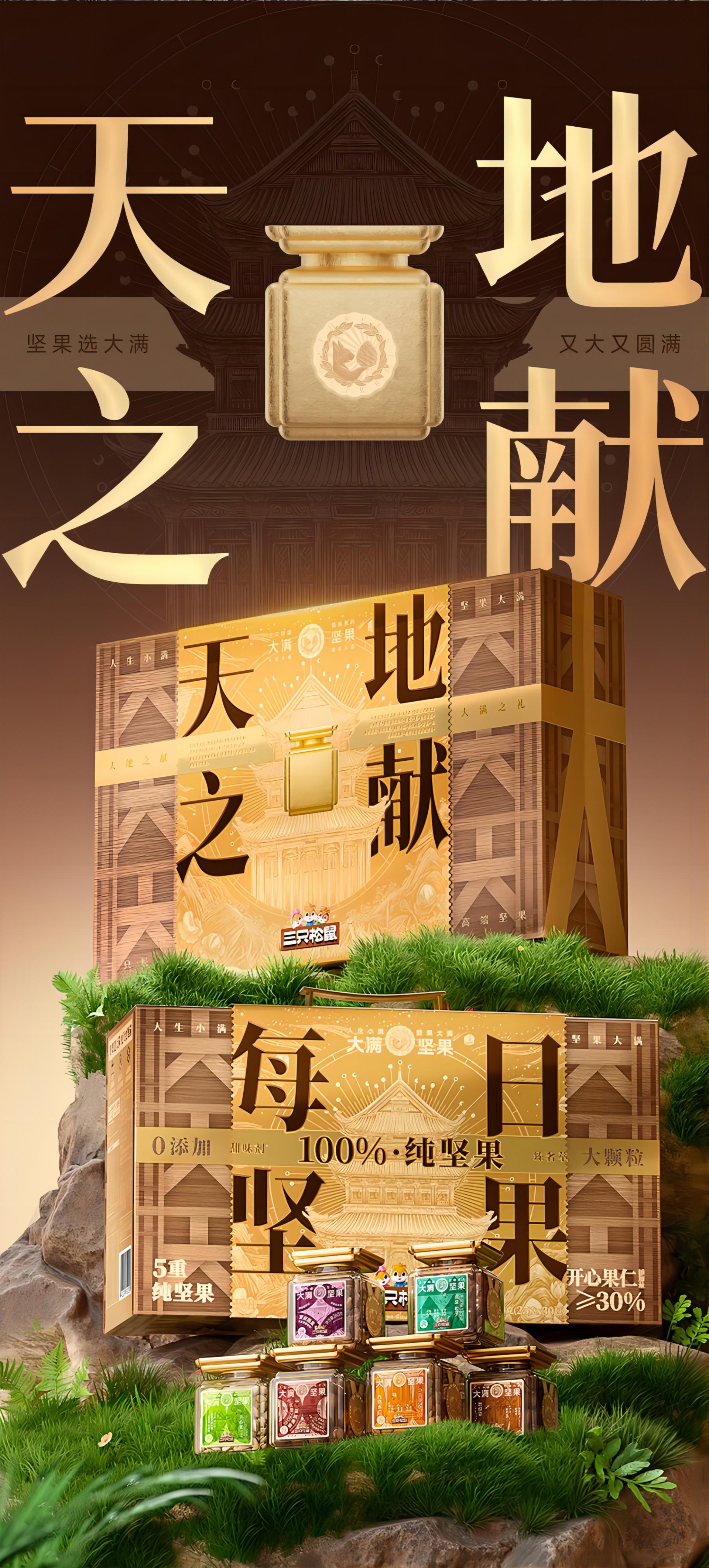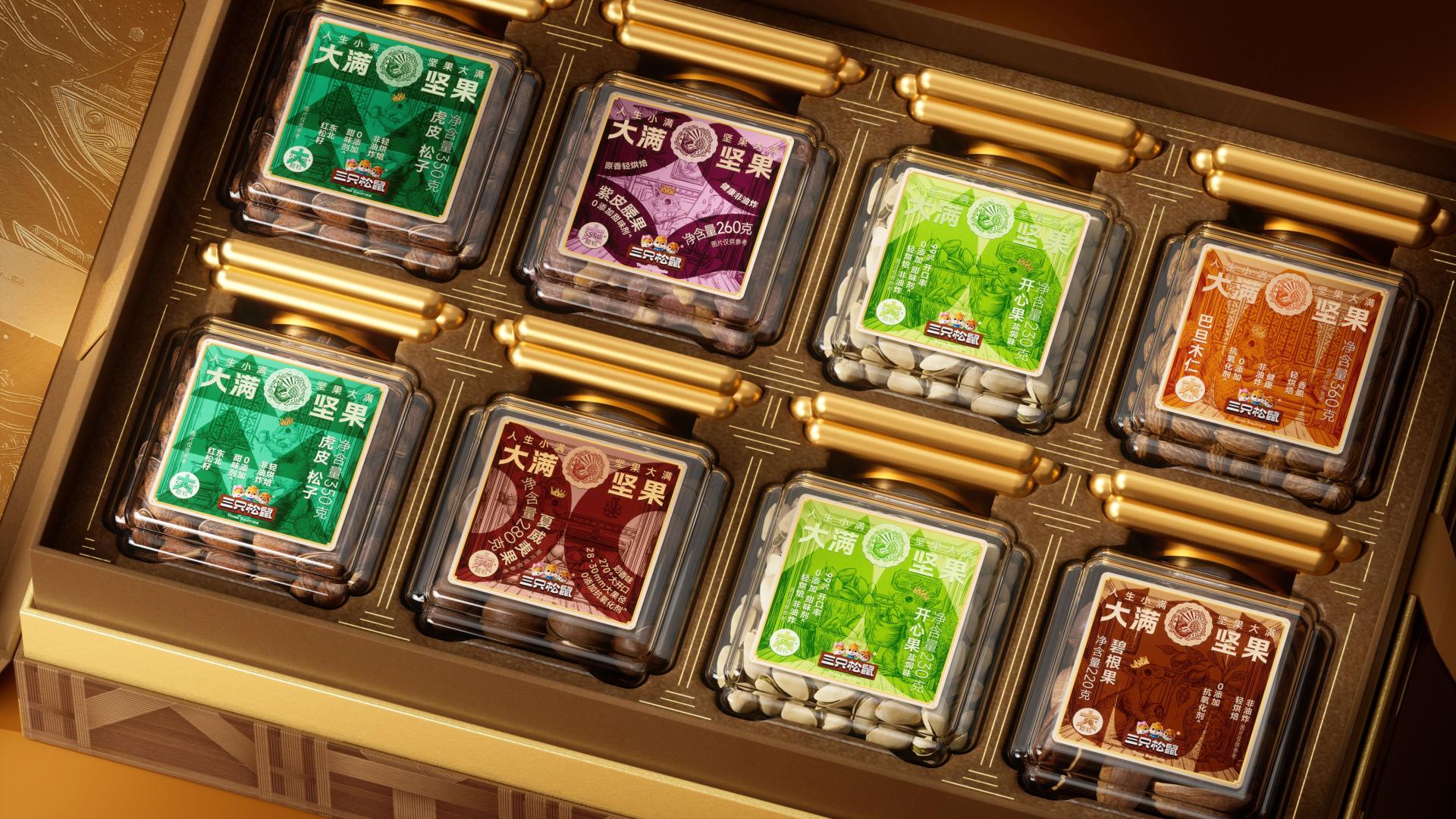 Inspired by the “Jinzun”, a revered Chinese vessel traditionally used to offer fine liquor to esteemed guests, the packaging design reimagines this ancient symbol of hospitality as an iconic nut container—Damond Golden Goblet Can. The rounded, full-bodied silhouette exudes a sense of nobility intrinsic to the brand and perfectly embodies its philosophy of pursuing and celebrating fulfillment. The keywords like "Damond” and “Nuts" are enlarged, alongside the evocative slogan "Life's Small Blessings, Damond's Big Delights". This approach enhances the visual impact of the product name while conveying the brand’s dual values of natural abundance and life’s fulfillment.