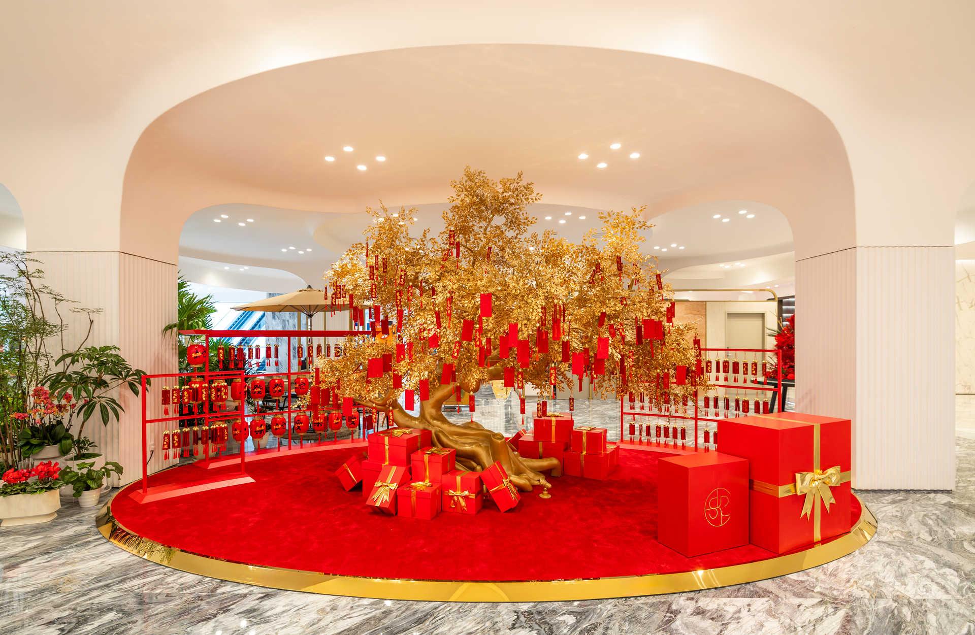 The inspiration for this design is drawn from traditional elements of the Spring Festival and Valentine's Day, seamlessly blending modern artistic techniques with the aesthetic sensibilities of high-end brands. During the early design phase, we considered how the installation should not only reflect the festive atmosphere of Chinese New Year, the Lantern Festival, and Valentine's Day but also resonate with the emotional connections and cultural expectations associated with these celebrations. Due to the complex architectural structure of SKP, particularly the arrangement of the event space and brand boutiques, the design team needed to strategically position the installation within a limited space to ensure optimal layout and integration. Through modular design, we implemented movable installations that seamlessly integrate with the mall’s existing layout without disruption. By ensuring the flexibility and spatial fluidity of the Blessing Tree and market stalls, the design not only aligns with the brand’s upscale aesthetic but also maximizes space utilization for an optimal experience. To maintain a high-end aesthetic and durability, it was essential to select appropriate materials to ensure that the Blessing Tree, lanterns, and market installations retain their visual appeal and functionality even after multiple uses. We used high-quality eco-friendly materials, such as artificial trees, metal frameworks, and LED light strips, combined with professional surface coating and decorative techniques to ensure the aesthetic appeal and structural stability of the installation throughout its lifecycle. Since the event needs to be set up and executed within a short timeframe for both the Spring Festival and Valentine's Day, time and budget constraints became the primary challenges. We used eco-friendly, non-toxic artificial leaves, recyclable materials, and energy-efficient LED light strips to ensure the long-term usability and sustainability of the installation. For the lanterns and decorations, we used recycled paper and detachable materials, reducing environmental impact and enabling sustainable material reuse. The lighting design for the Blessing Tree and lanterns utilizes low-energy LED light strips, which not only conserve energy but also reduce daily maintenance costs.