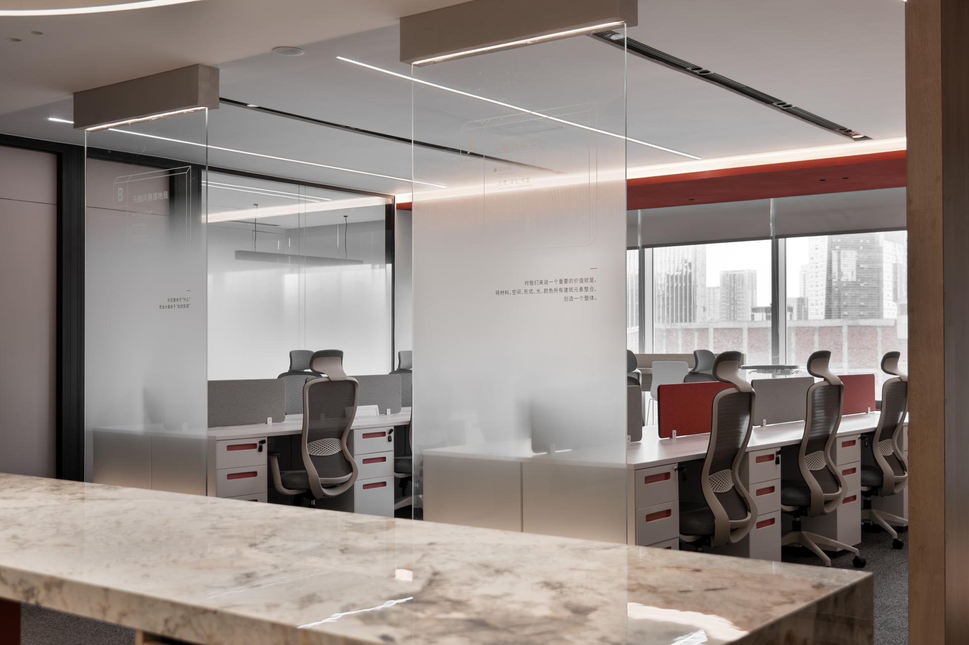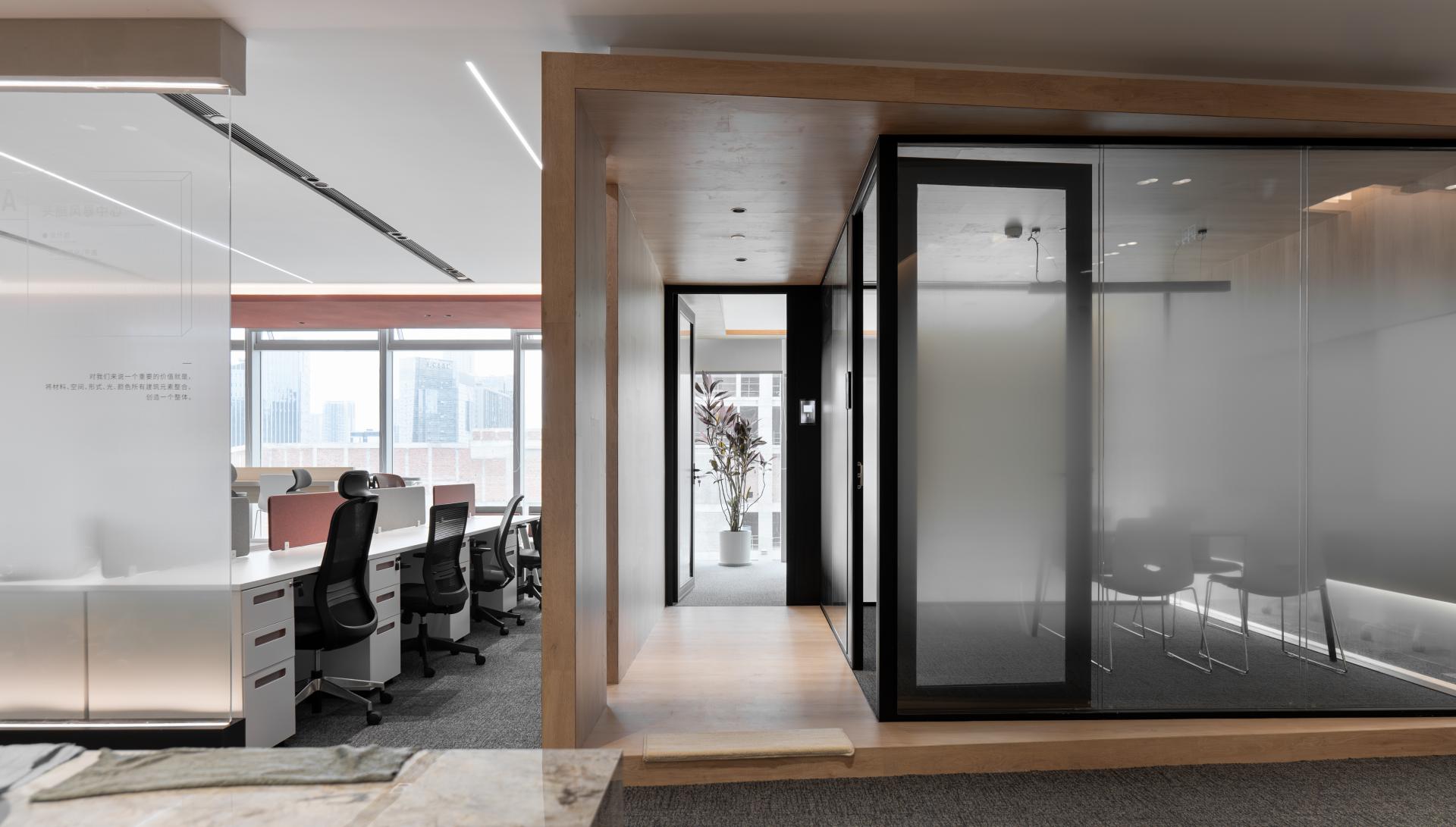 The design also incorporates moments of tranquility, with a corner tea room offering a quiet space for contemplation. Here, it evokes a sense of calm in the bustling city, offering a refined and poetic escape. The beauty of the design lies not in individual objects, but in the interplay of space, light, and materials, creating a harmonious environment that fosters creativity, relaxation, and inspiration.