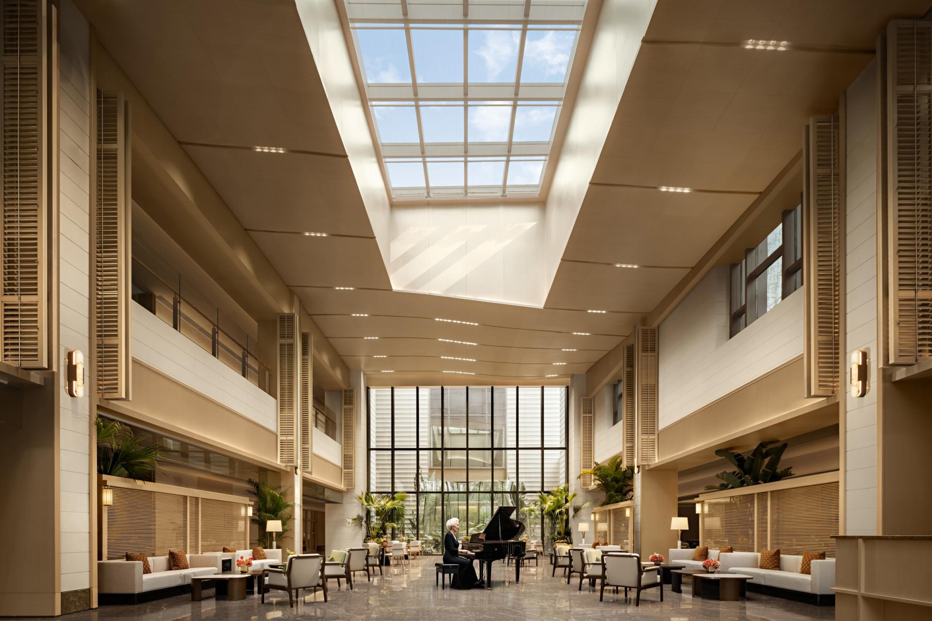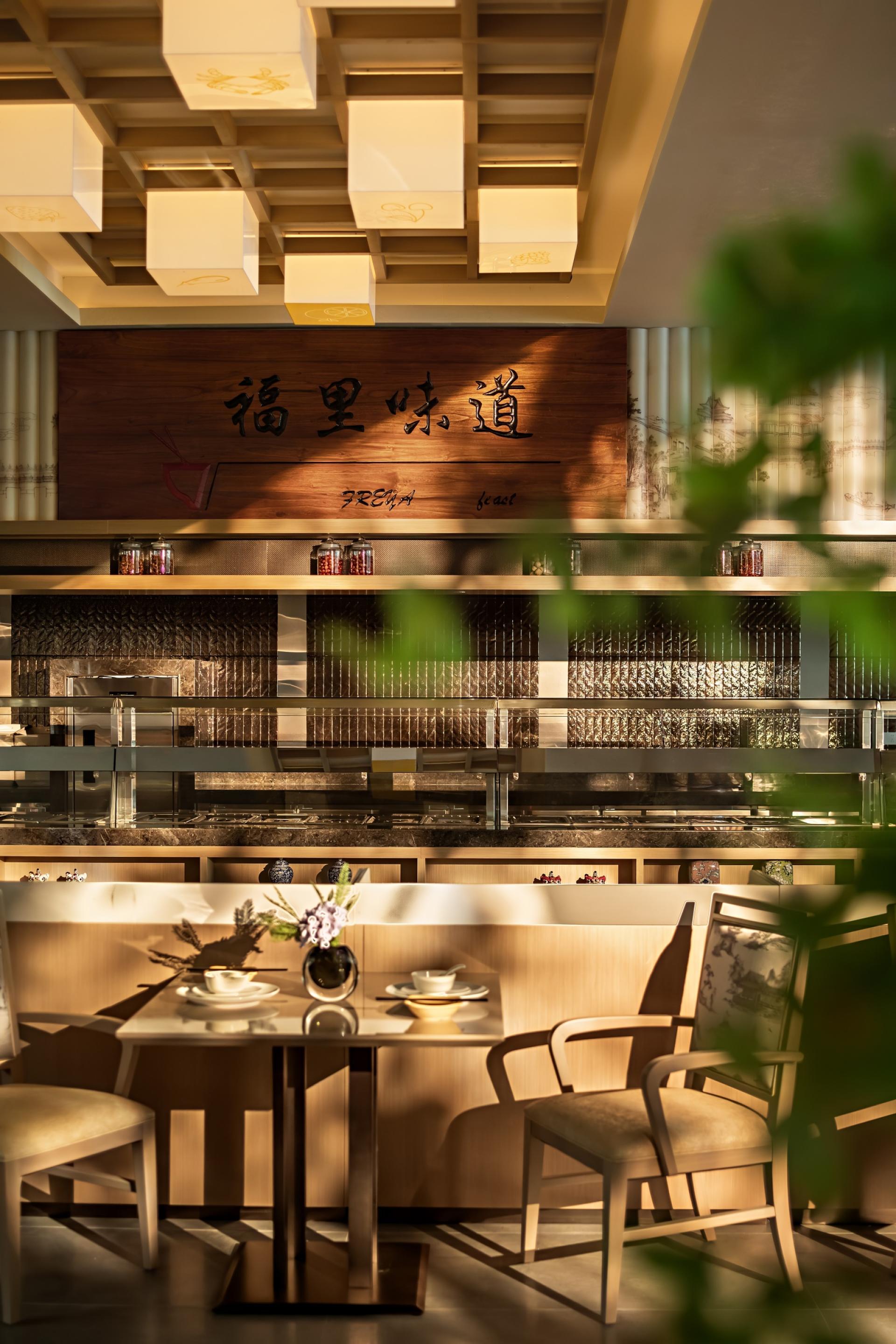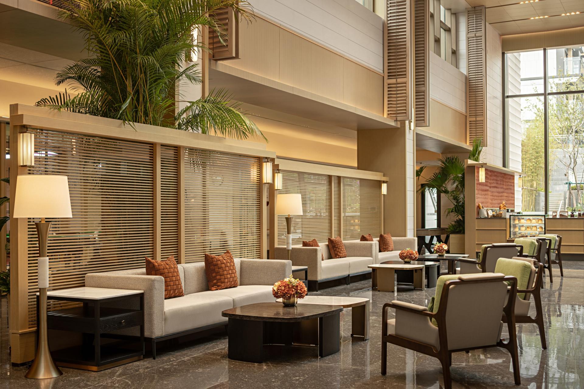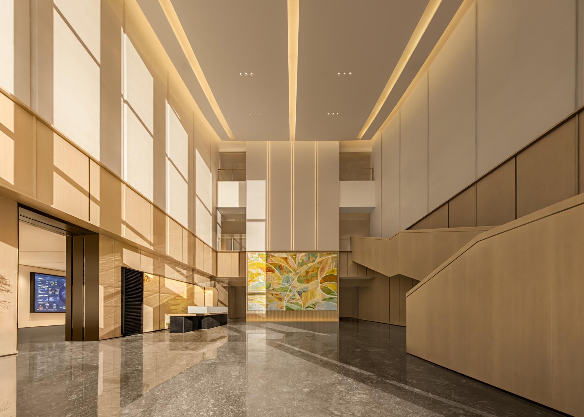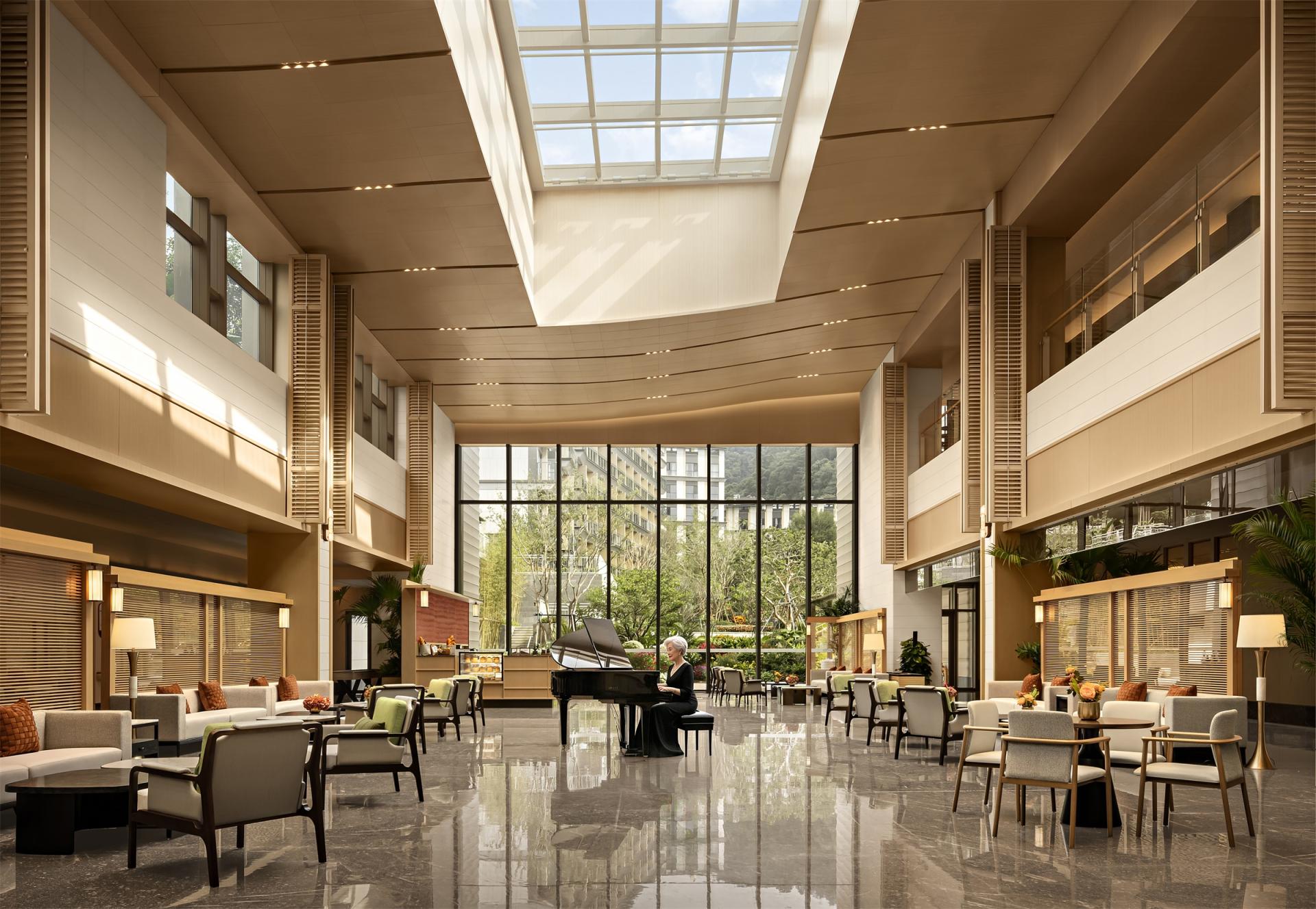 The space is centered around the Four Seasons Flower Hall, blending elements of traditional Fuzhou culture. The layout is flexible and free-flowing, with each step unveiling a new scene, creating the sensation of wandering through a garden. Key areas highlight local cultural landmarks, allowing visitors to experience the rich cultural heritage and feel as though they are strolling through the streets and alleys of old Fuzhou. A New Interpretation of Traditional Elements: Inspired by Fuzhou's "Three Lanes and Seven Alleys," elements such as horse-head walls, lanes, courtyards, and alleys are reimagined using modern architectural language. This approach preserves the regional characteristics while infusing the space with a contemporary feel.Integration and Innovation in Space: The design creates boundaryless spaces, such as the Four Seasons Flower Hall, which seamlessly connects with the outdoor landscape, breaking the interior-exterior boundary and offering a dynamic spatial experience with ever-changing views. Additionally, the design incorporates "hall-well culture," making the Flower Hall a multifunctional space for relaxation and spiritual exchange for the elderly.Locally sourced materials, such as red soil, reclaimed longan tree trunks for tea tables, floral tiles, gray bricks, and oil-paper umbrellas, are used in the design. These materials carry the history and cultural memories of the region, directly reflecting the local cultural characteristics. They help immerse residents and visitors in a rich regional cultural atmosphere, contributing to the preservation and promotion of Fuzhou's traditional culture. Natural Lighting and Ventilation: Large skylights, floor-to-ceiling windows, and other design elements allow natural light to flood the space, especially through the high ceilings of the lobby. This reduces reliance on artificial lighting during the day, lowering energy consumption.Indoor Greenery and Ecological Space: Green plants are integrated into the interior design, creating an eco-friendly and sustainable environment. From the overall planning and construction concept of Fuyuan, there is a strong focus on sustainable development. In the interior design, eco-friendly materials are extensively used, including eco-friendly texture paints, inorganic coatings, PVC flooring, sustainable panels, and natural fabric materials. This approach aims to minimize environmental impact and achieve green and eco-friendly goals, in line with current societal demands and trends for sustainability.