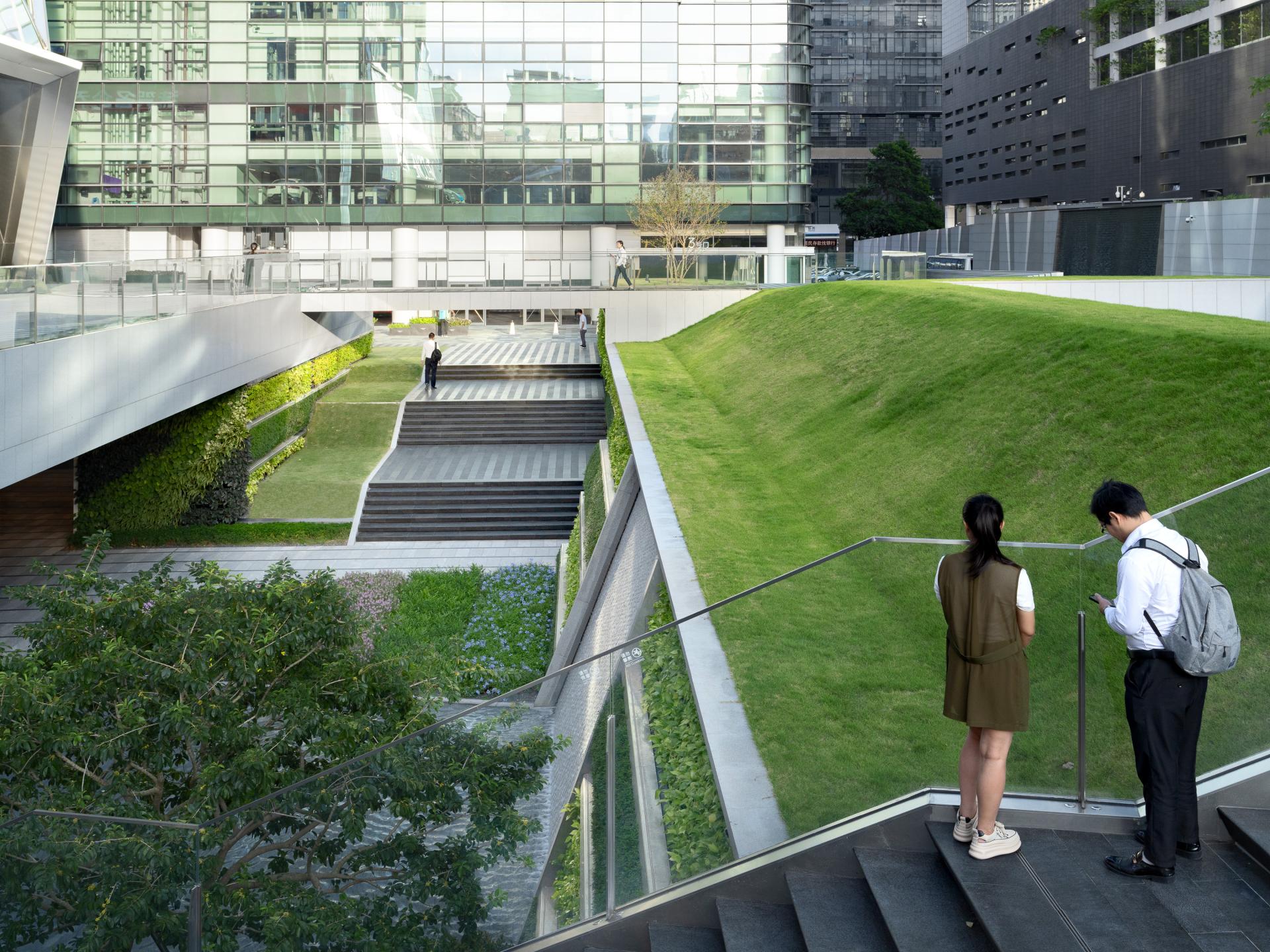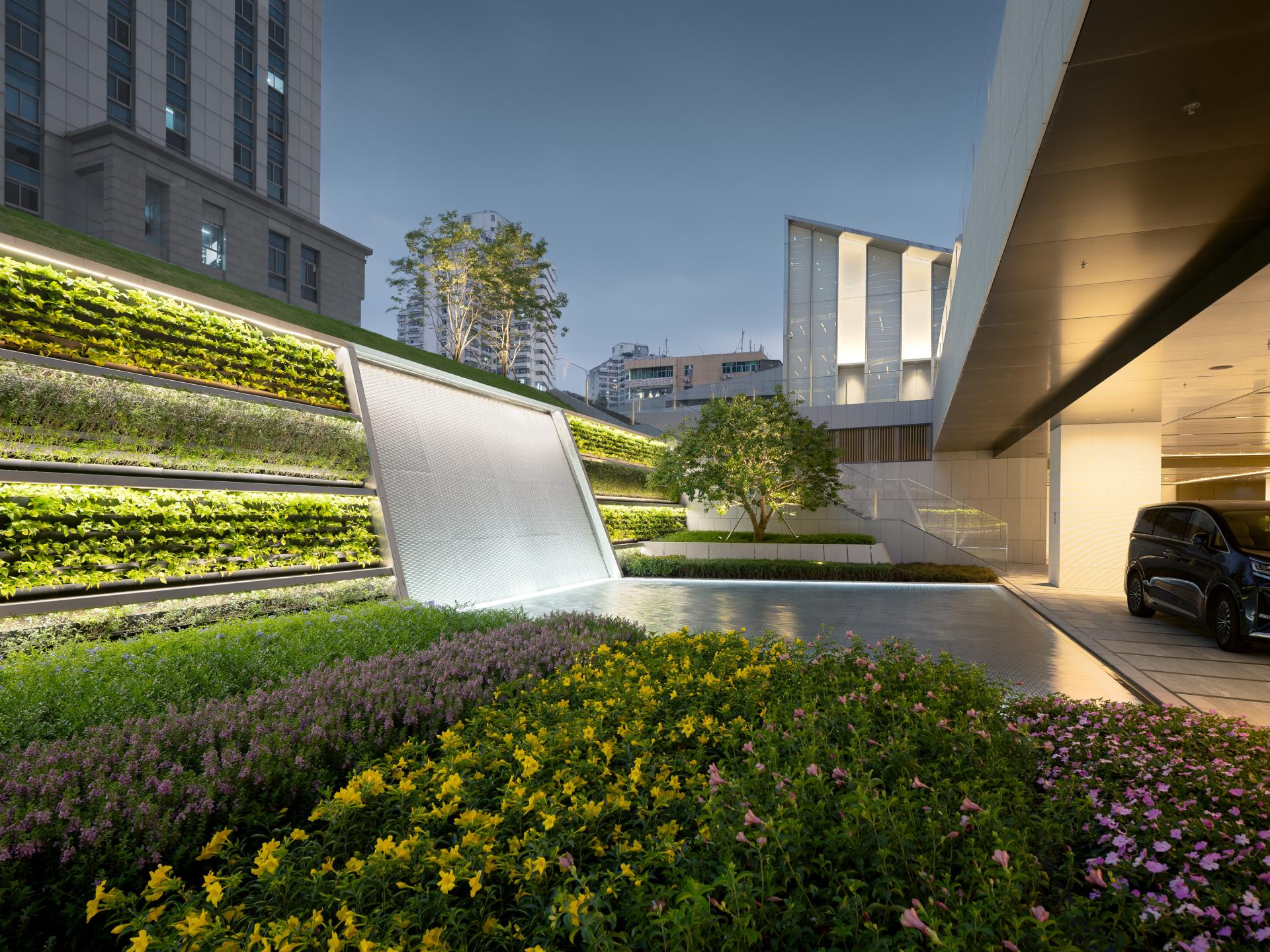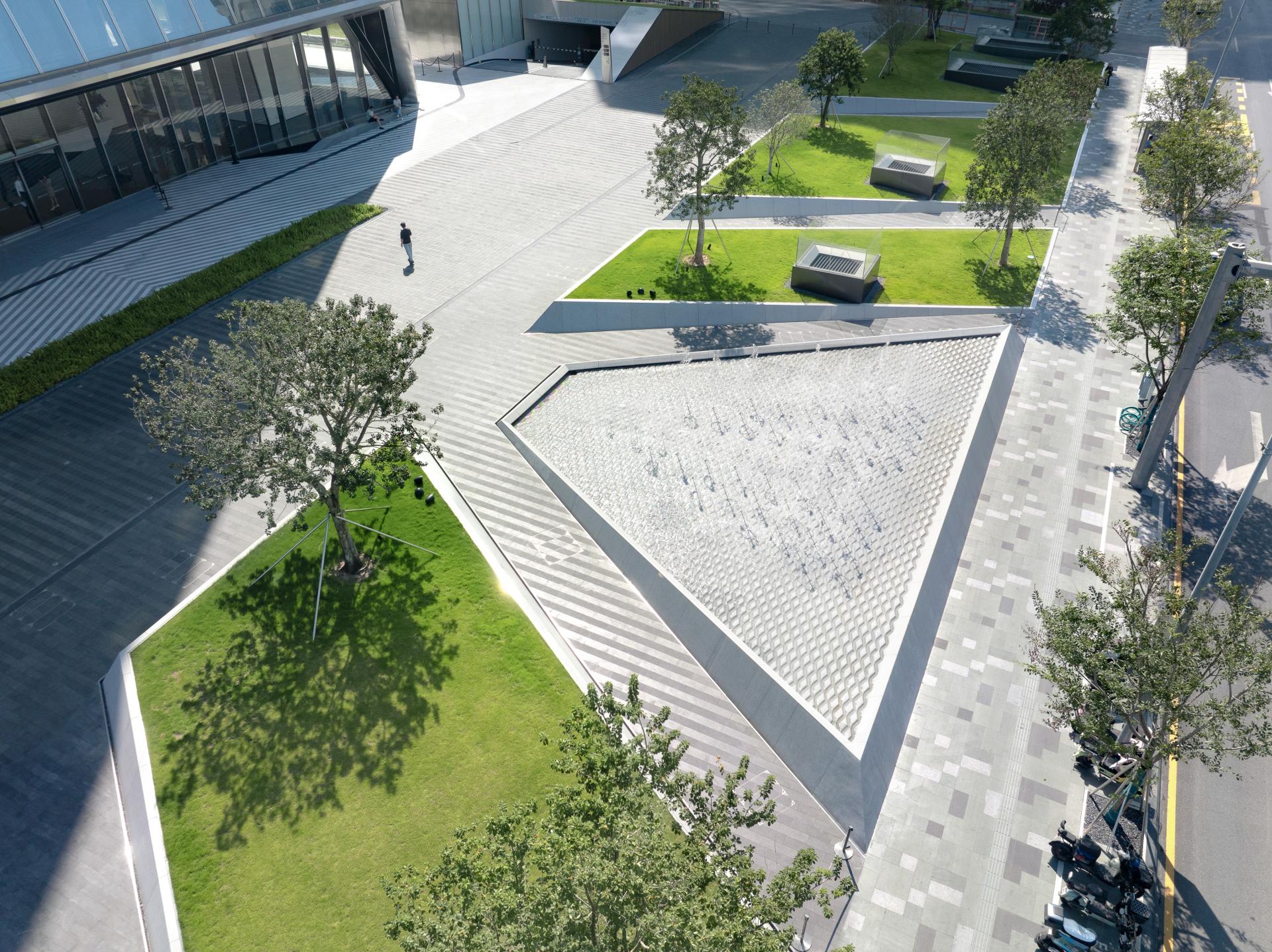 The design team drew inspiration from the elegance and ingenuity of origami. This innovative approach, which we termed "Urban Origami," involves sculpting, folding, and crafting the landscape and architectural elements to create a cohesive and vibrant spatial environment. The architecture and landscape design reflect the fluidity and precision of origami, with its folded surfaces and intricate forms seamlessly integrating landscape spaces with the urban context. The overall design focused on grounding the tower, defining the landscape building precinct, and sculpting the green plinth, paying special attention to its edge conditions and connections to residential and commercial areas.
