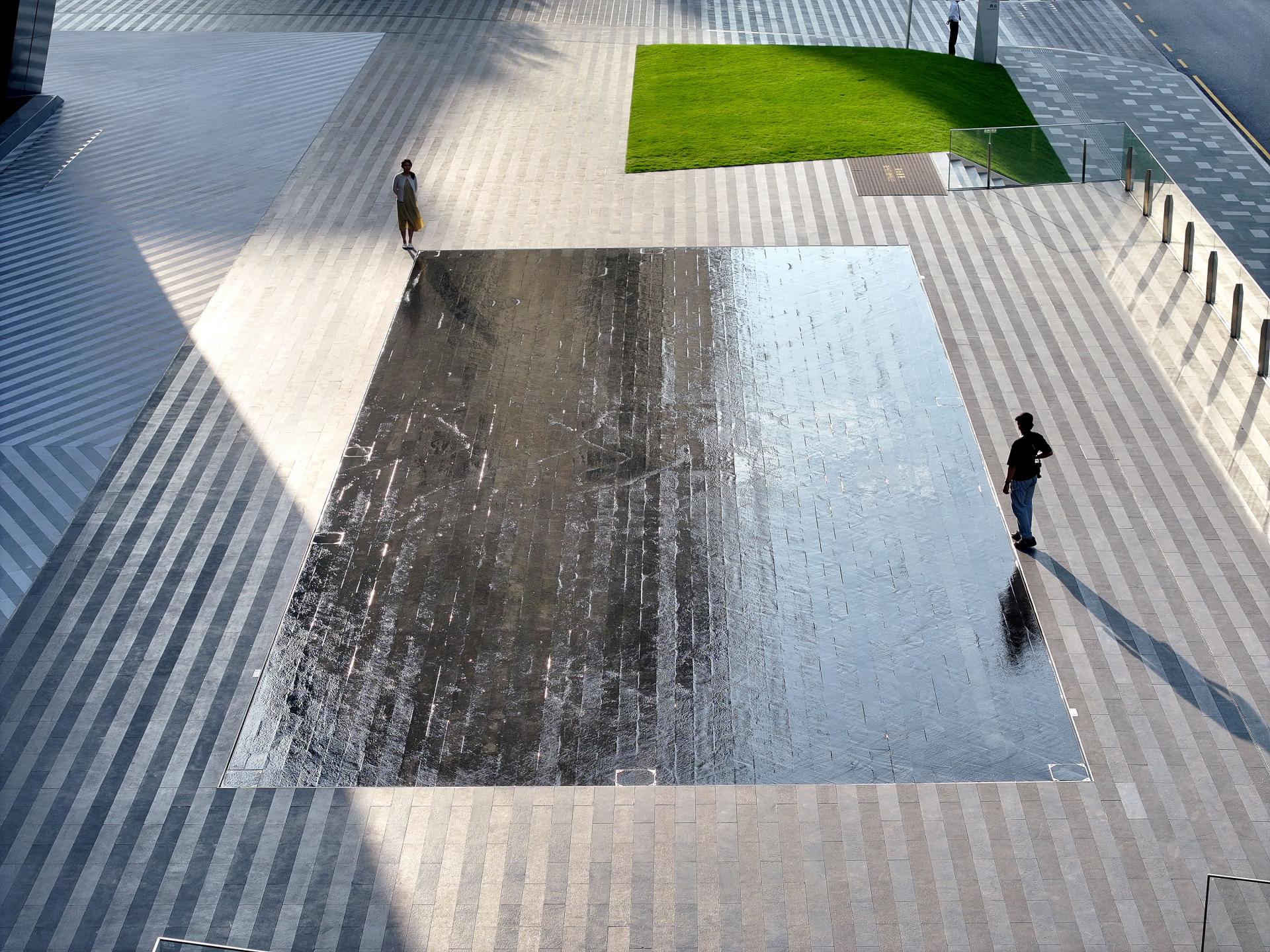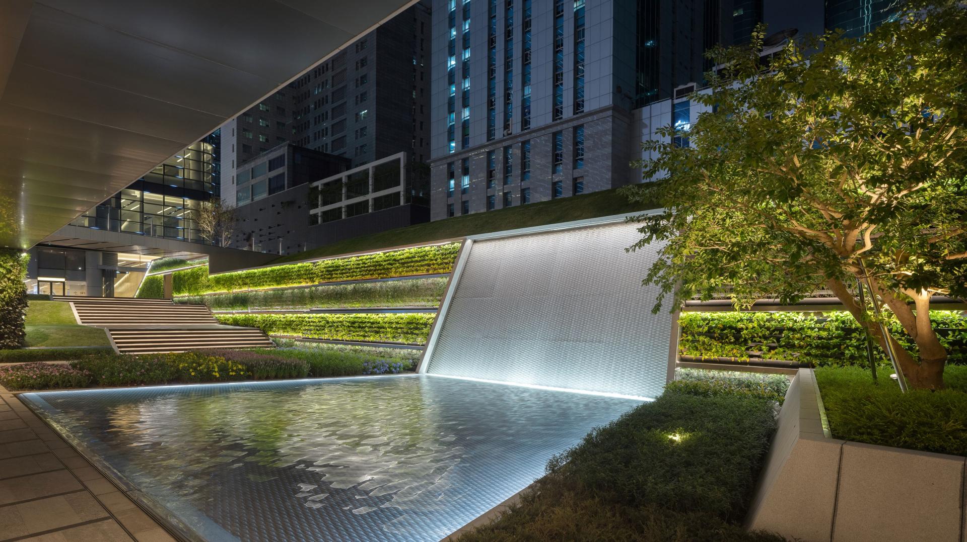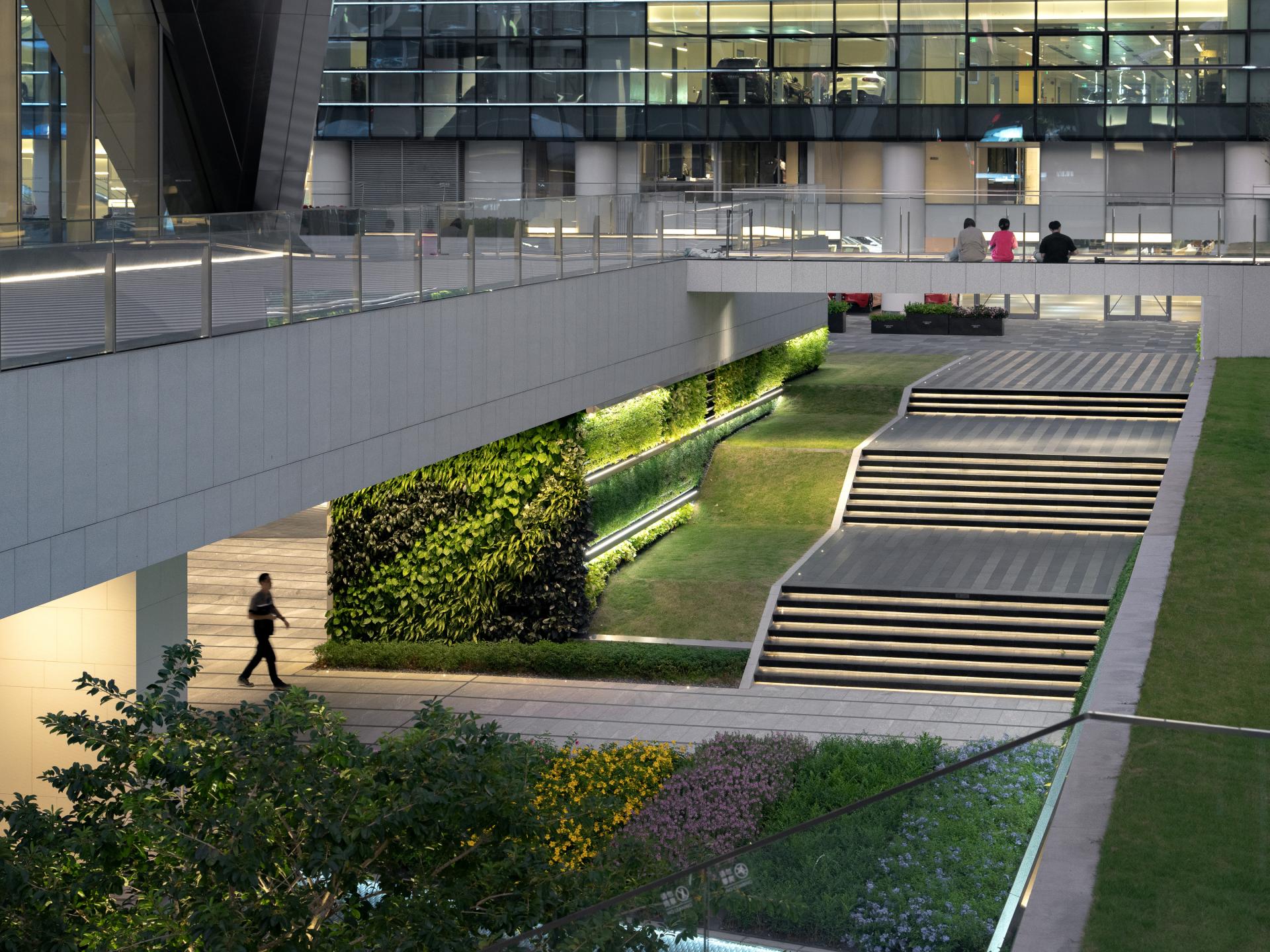 The design team drew inspiration from the elegance and ingenuity of origami. This innovative approach, which we termed "Urban Origami," involves sculpting, folding, and crafting the landscape and architectural elements to create a cohesive and vibrant spatial environment. The architecture and landscape design reflect the fluidity and precision of origami, with its folded surfaces and intricate forms seamlessly integrating landscape spaces with the urban context. The overall design focused on grounding the tower, defining the landscape building precinct, and sculpting the green plinth, paying special attention to its edge conditions and connections to residential and commercial areas.