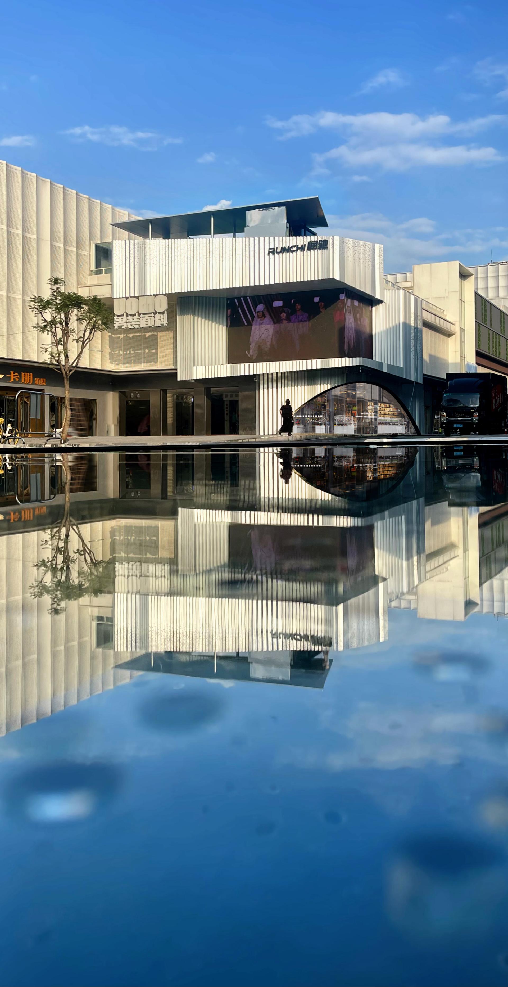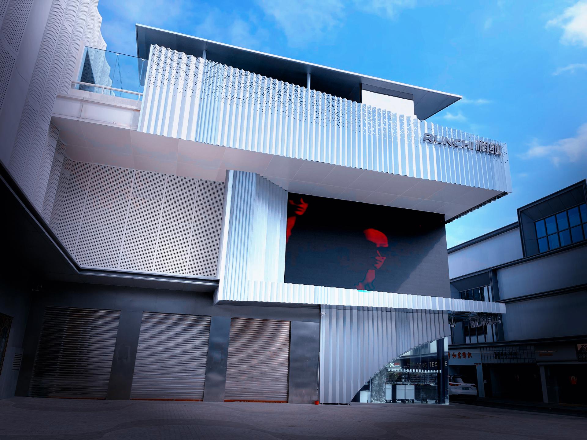 The project is a thoughtful building renovation that preserves the original structural integrity while seamlessly integrating the product’s identity into the contemporary façade design. The exterior is clad in aluminum-zinc panels, which create a captivating visual narrative as they interact with changing light throughout the day, offering a dynamic and ever-evolving aesthetic. The façade’s rhythmic yet dynamic textures subtly convey the owner’s commitment to exceptional product quality and refined design sensibilities. Meanwhile, the softly blurred design at the corner demonstrates a deliberate and respectful dialogue with the building’s surrounding environment, harmonizing the new structure with its context.
