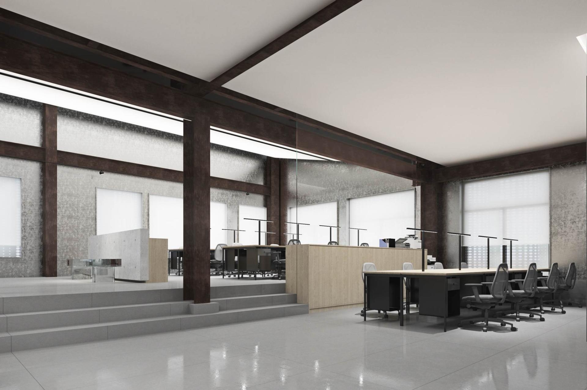 Inside the building, a section of the floor slab has been opened up. A striking metal conveyor belt, strategically spanning both levels, serves as both a physical and visual connector, seamlessly integrating various product zones while injecting a sense of kinetic energy. This innovative design element not only establishes a cohesive industrial aesthetic but also subtly guides visitors through the space, enhancing the overall journey.