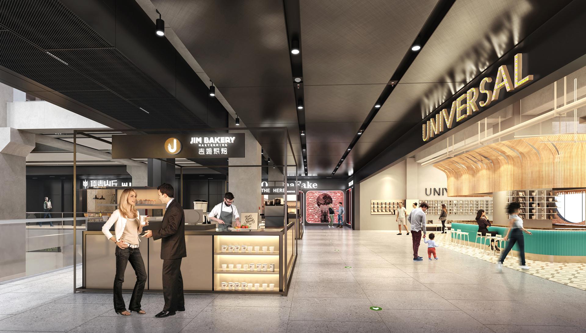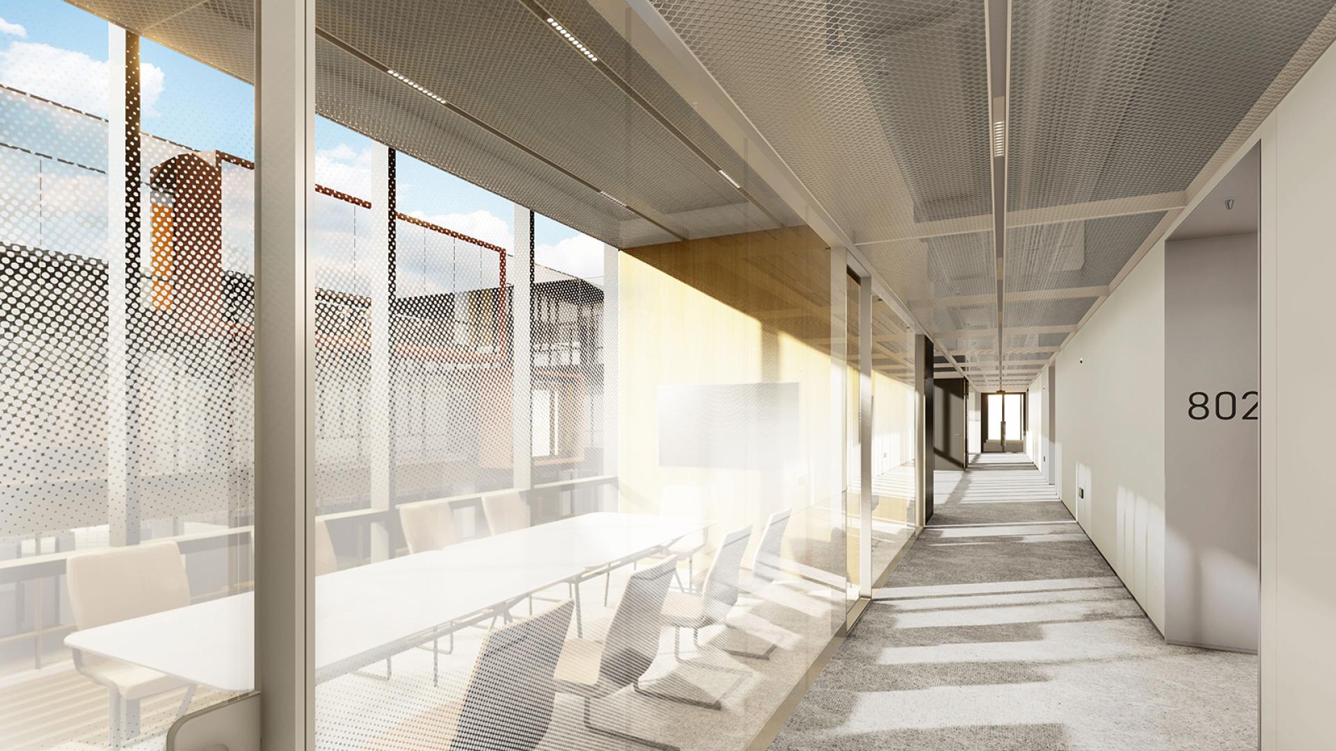 The interior of the sinter factory is a celebration of steel, using cortene, bead-blasted, cross-hatch, mirror-finish and mesh variants over 10 floors. Materials to the lower retail floors are dark with dramatic lighting to simulate the atmosphere of the original sinter factory.