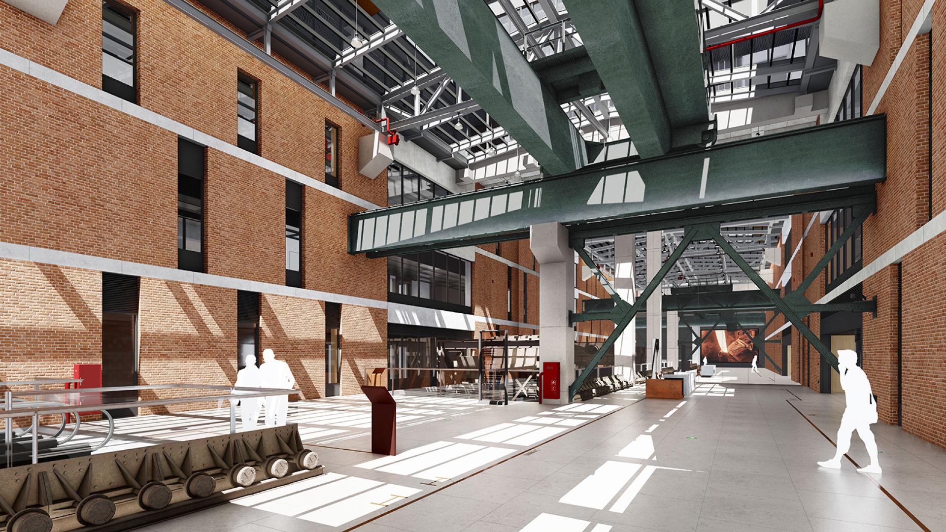 The heart of building is the upper atrium museum that contains most of the legacy machinery from the sinter works. This will be a kernel of the former industrial past surrounded by modern functions - a building within a building that can be used as a gallery or event space.