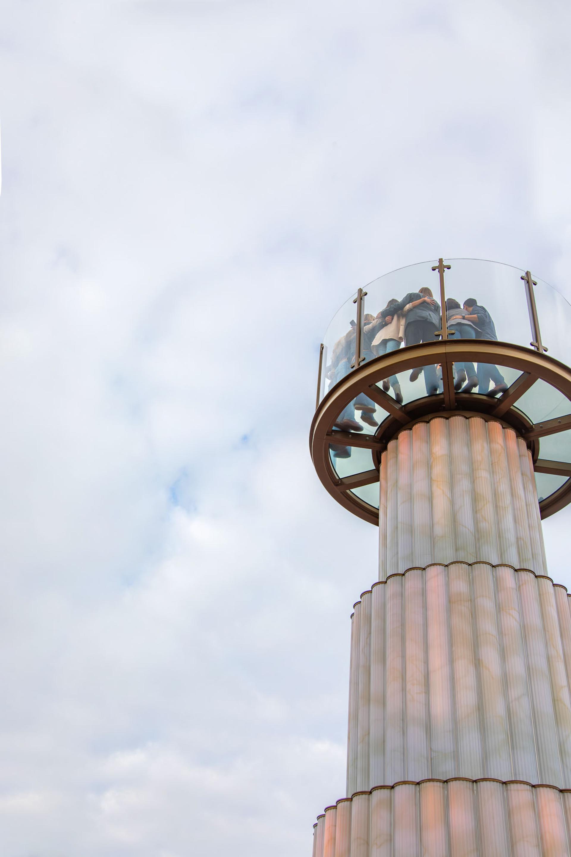 The Beam offers a thrilling experience inspired by the famous “Lunch Atop a Skyscraper” photo, securely lifting guests 12 feet above the 69th floor and rotating them 180 degrees for breathtaking views of Manhattan. Skylift, a circular open-air platform, elevates visitors 30 feet above the 70th floor, providing an unmatched 360-degree perspective of the city. It also features programmable LED lighting for holidays and civic events.