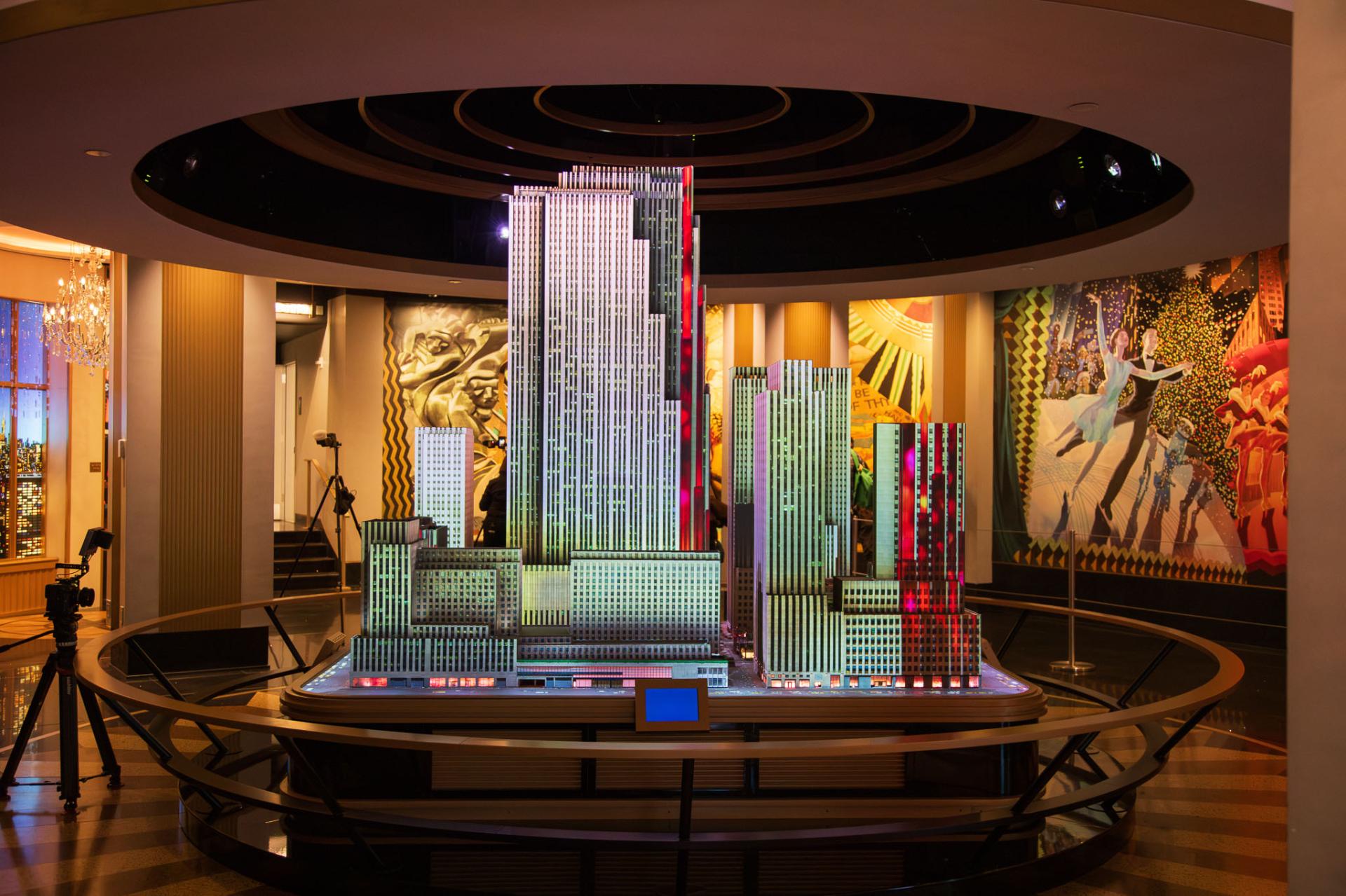 The reimagined attraction includes multiple engaging touchpoints. The Welcome Gallery features 304 linear feet of hand-painted murals by Sally Wern Comport, celebrating Rockefeller Center’s nearly 100-year history in a signature Art Deco style. Interactive activations and photo opportunities immerse visitors in the site’s legacy, while a projection-mapped show on a 10-foot architectural model highlights its construction, seasonal transformations, and cultural significance.