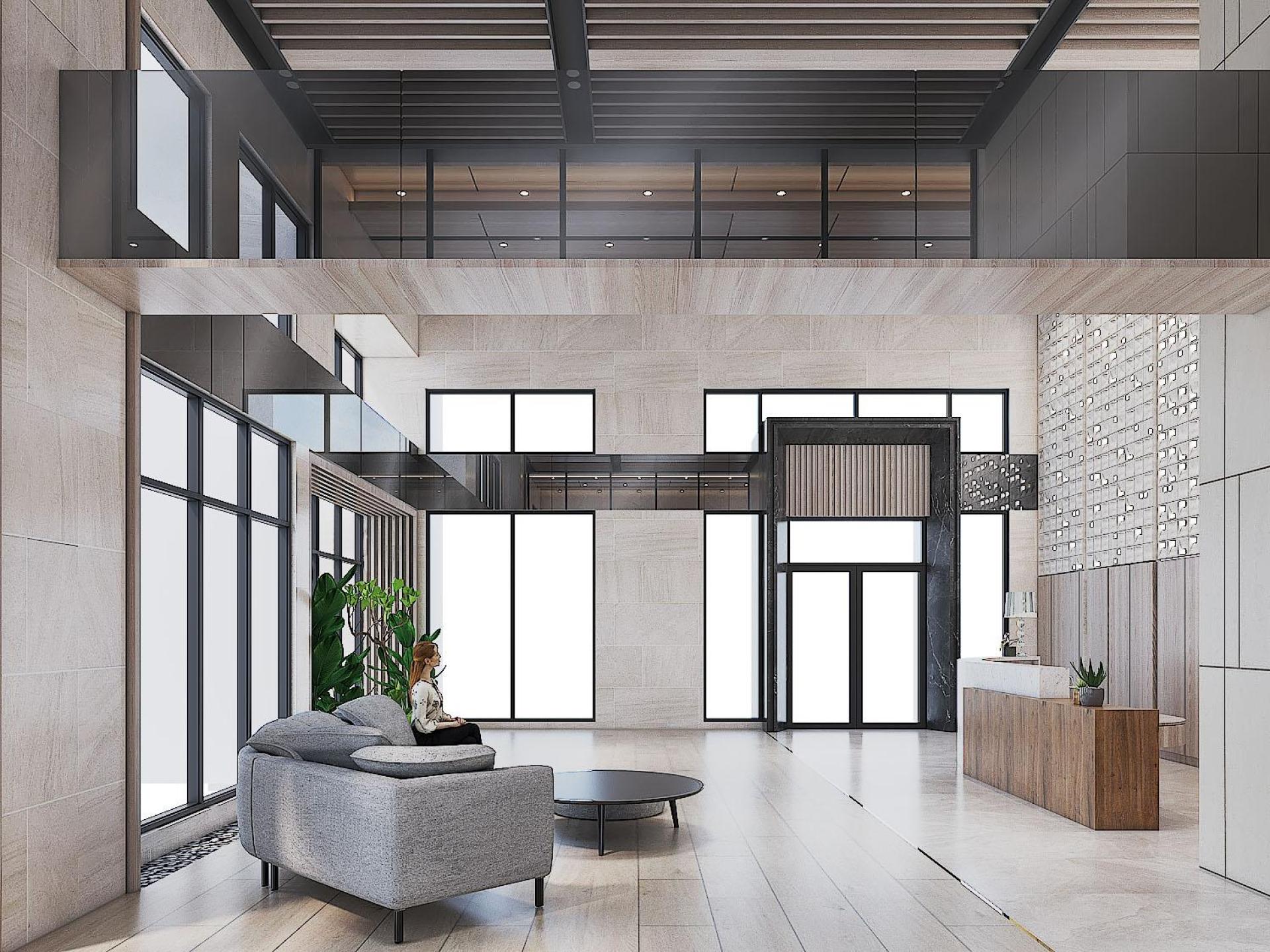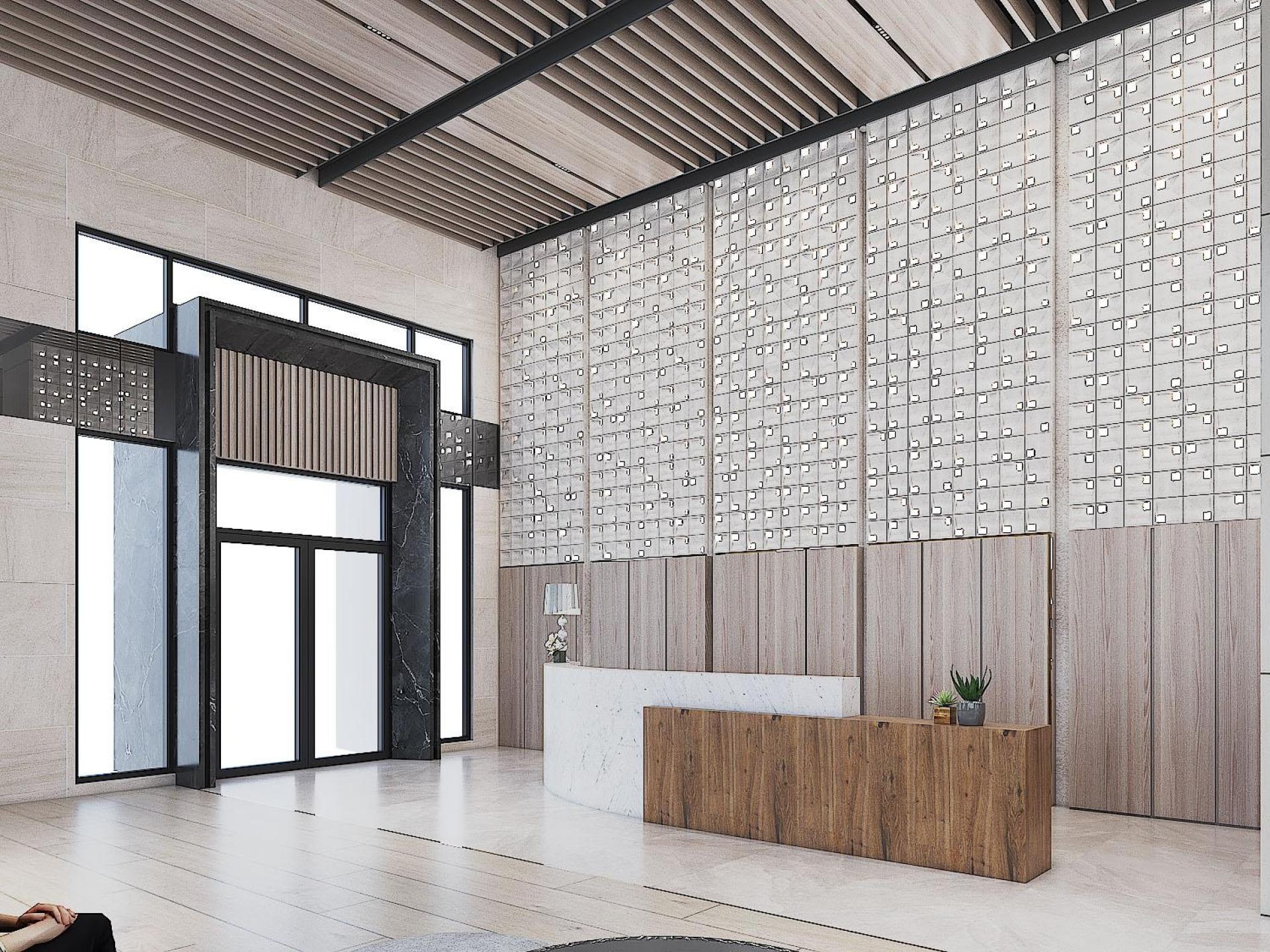 The Grand Lobby presents a refined aesthetic with its gracefully curved wooden ceilings, polished stone flooring, and expansive glass panels that welcome natural light. Lush greenery and artistic installations enhance the lobby’s serene ambiance, offering a harmonious blend of organic and contemporary elements. The meticulous detailing creates an inviting atmosphere that sets the tone for the entire community.