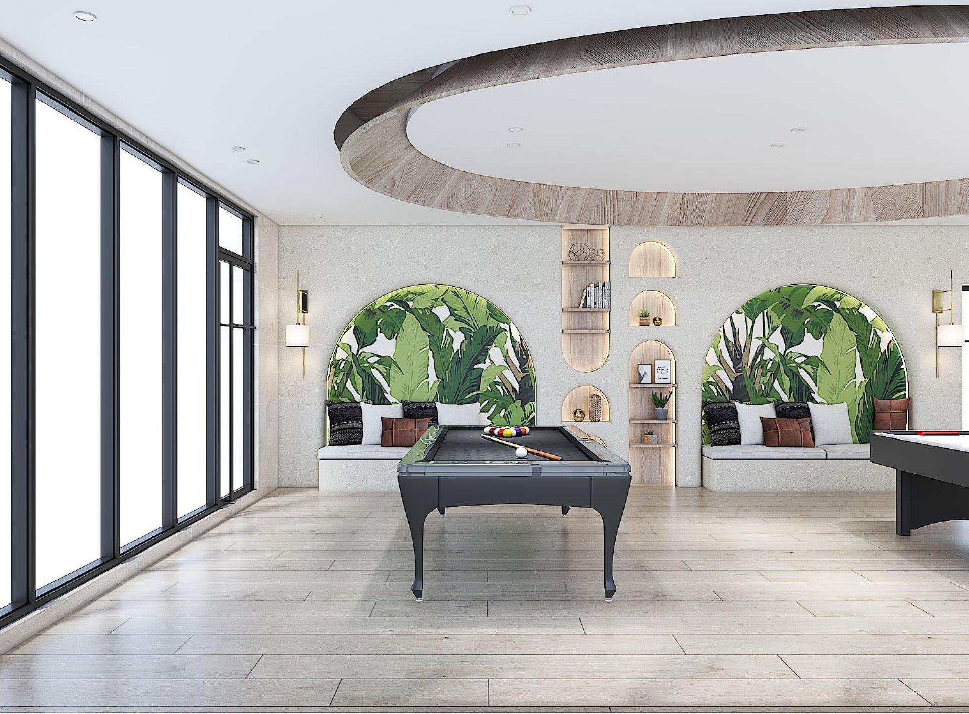 The Recreational Lounge is designed to foster social interaction and leisure. Featuring billiards, table field hockey, and intimate seating areas, the space offers a sophisticated yet lively environment. Nature-inspired murals and sculptural furnishings create a dynamic visual interplay, providing a sense of vibrancy and relaxation.