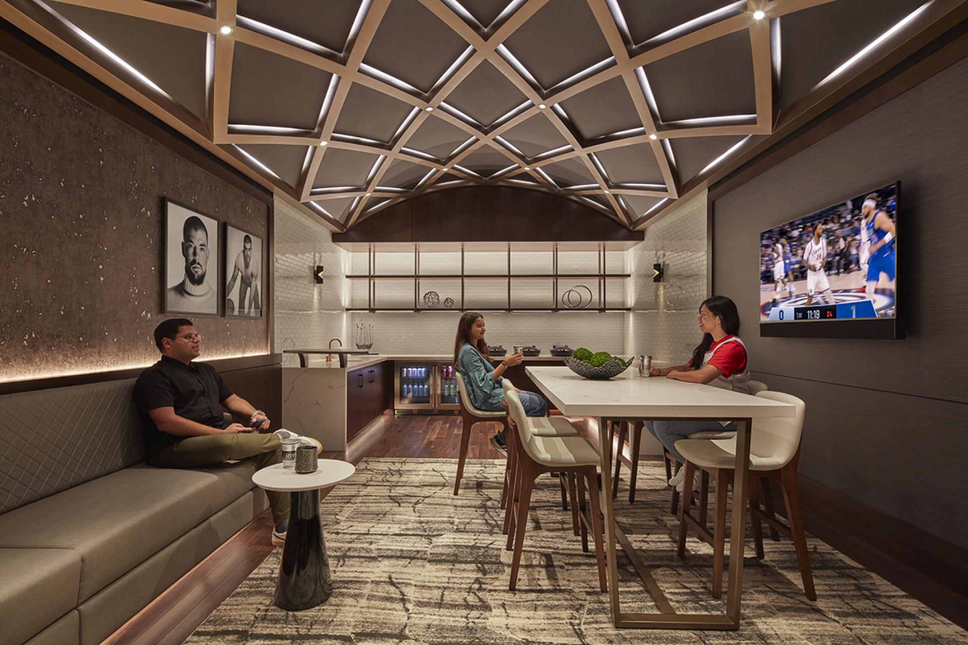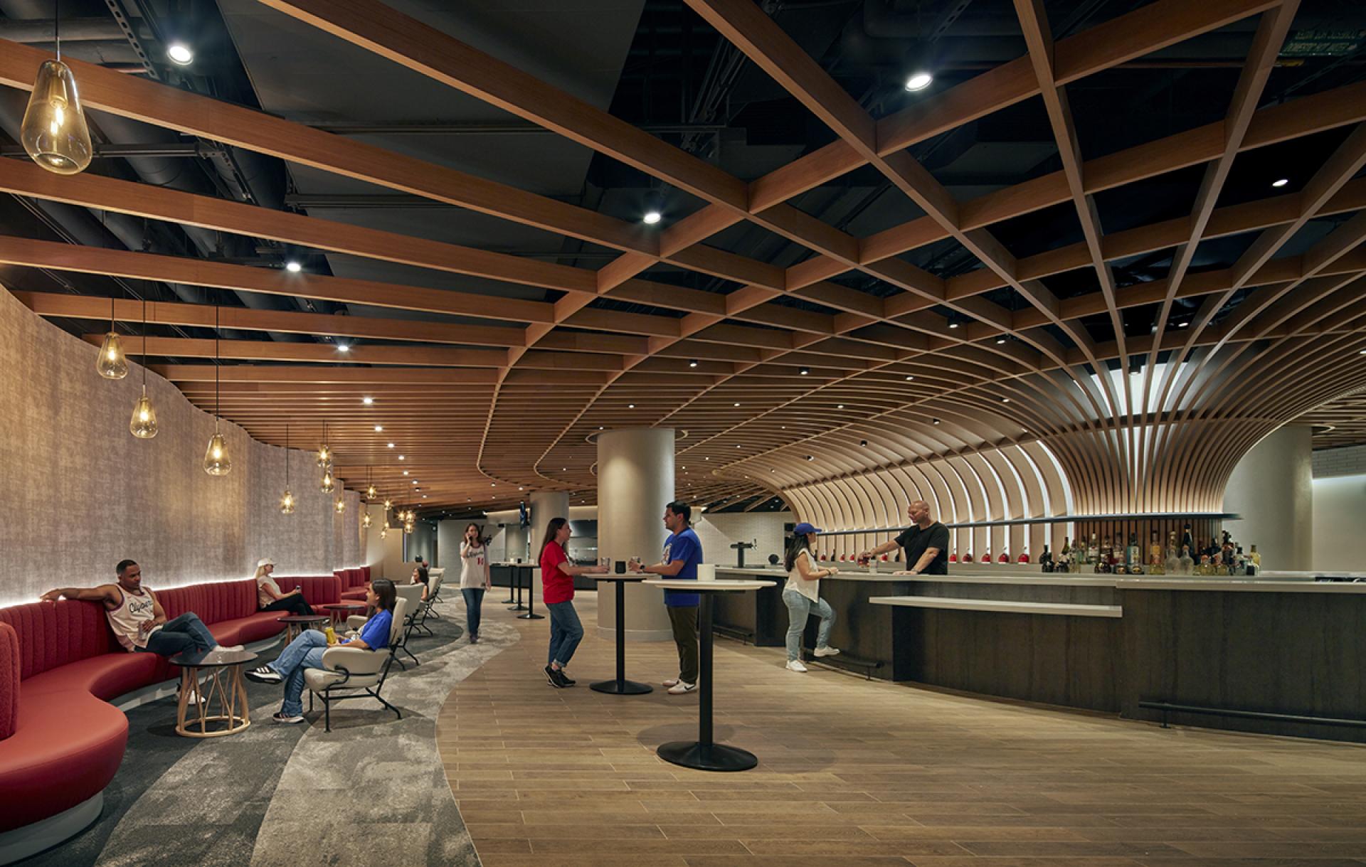 With user ease in mind, seamless technology is integrated into every aspect of the design, creating a more personalized fan experience. ‘Cashier free service’ allows fans to self-select anything and quickly return to their seats. Toilet rooms have queuing sensors, so fans know which facilities have the shortest lines. Less time in line means more time courtside.