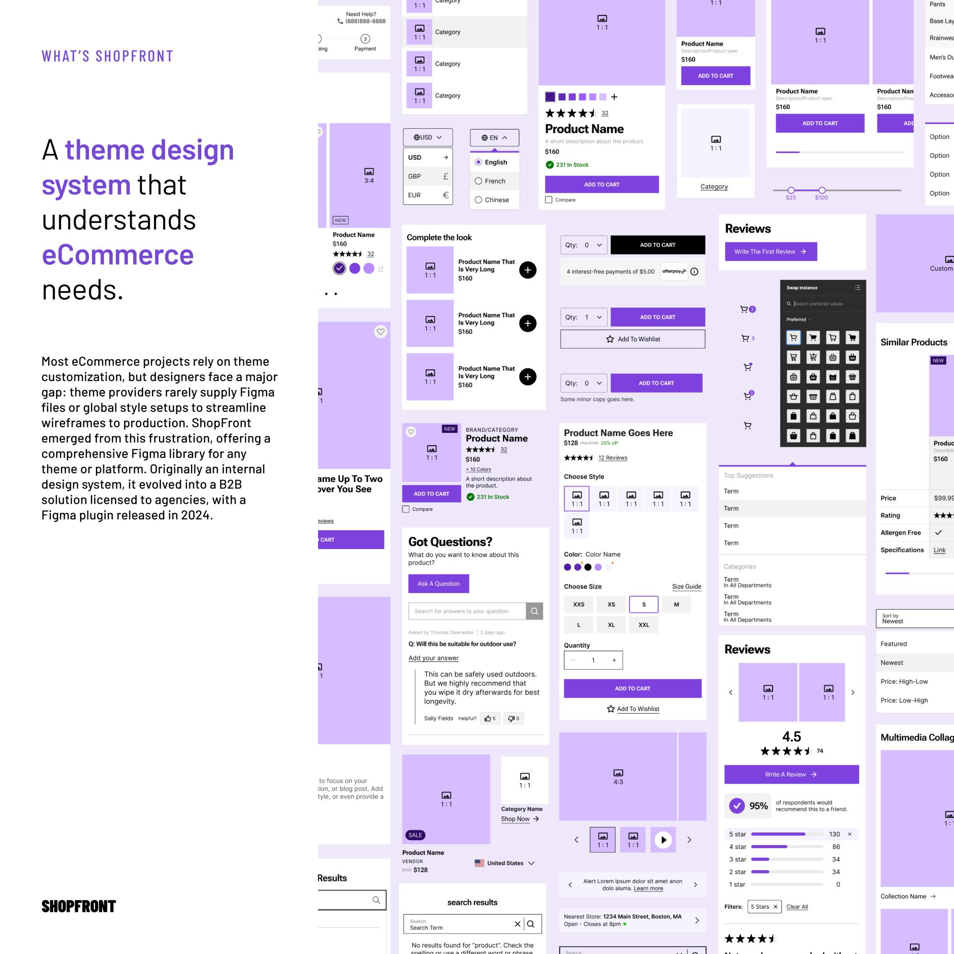 ShopFront is a cutting-edge theme design system crafted specifically for eCommerce brands, agencies, and creative teams. Designed to work seamlessly in Figma, it provides a structured yet flexible foundation for building high-performing online stores with speed and consistency.