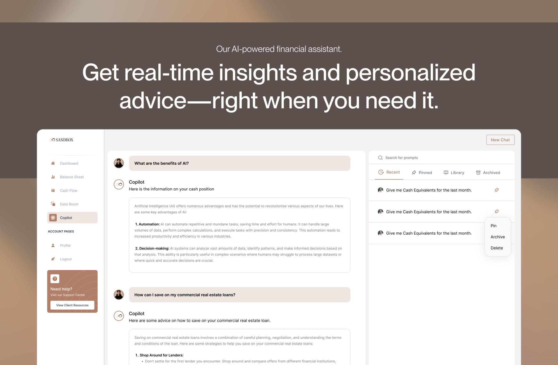 In an industry where high-net-worth individuals demand personalized financial solutions, Sandbox Wealth empowers advisors with the tools to better serve their clients while providing banks a new channel to expand their lending and deposit portfolios.