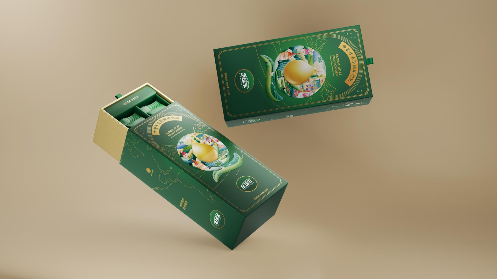 Goat milk, known for its balanced nutrition and lower likelihood of causing lactose intolerance, has become a new health choice for middle-aged and elderly individuals. Global goat milk brands utilize cutting-edge technology to source premium nutrition from around the world and produce high-quality goat milk powder to support the health of older adults. The packaging design centers around the brand’s initial “Q,” incorporating global elements. The golden milk droplet symbolizes purity and nutrition, surrounded by landmarks from various countries, representing the convergence of global nutrition. The international and striking packaging design helps the brand stand out in the market, gaining wide recognition and becoming a benchmark in the field of health food for older adults.