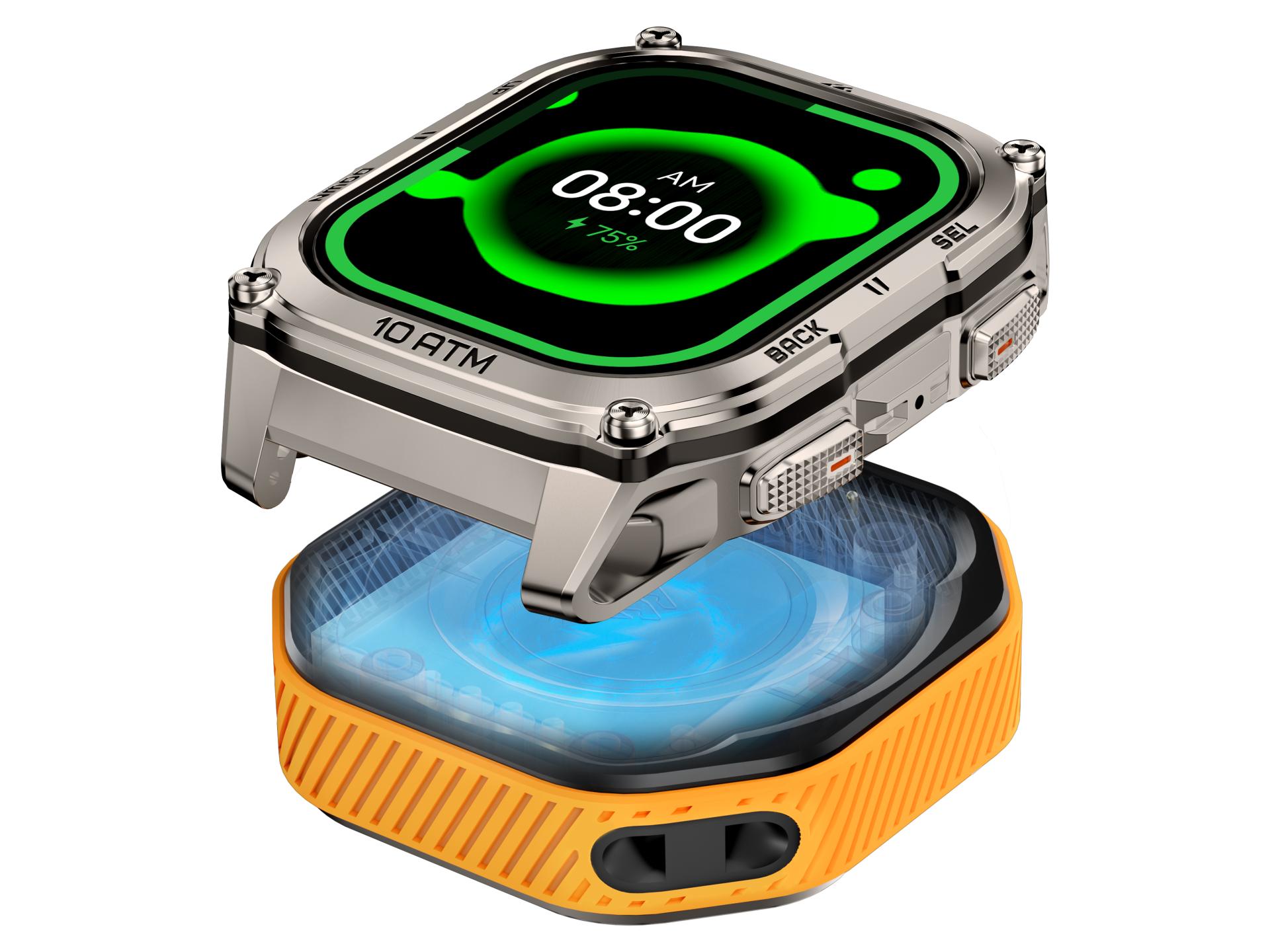 In terms of aesthetic design, the M4 adopts a square face with rugged lines, building a powerful, reliable image. A full-metal body, complemented by Clous de Paris (also known as a hobnail pattern), exudes modest luxury. A 1.96-inch AMOLED screen gives a strong visual impact, where fitness data are easy to read. Furthermore, the brand’s signature color—orange—as the embellishment adds a vibrant touch, symbolizing the energy and passion of sports.