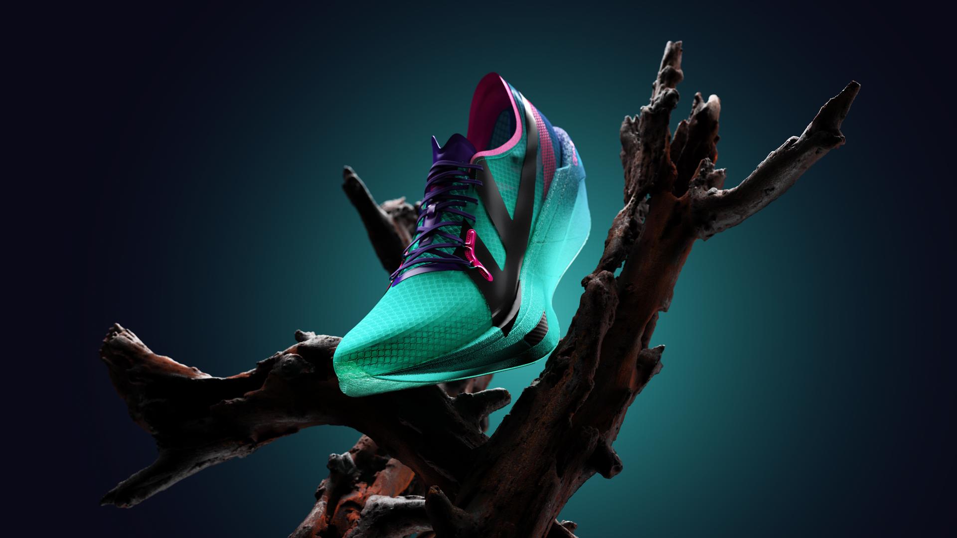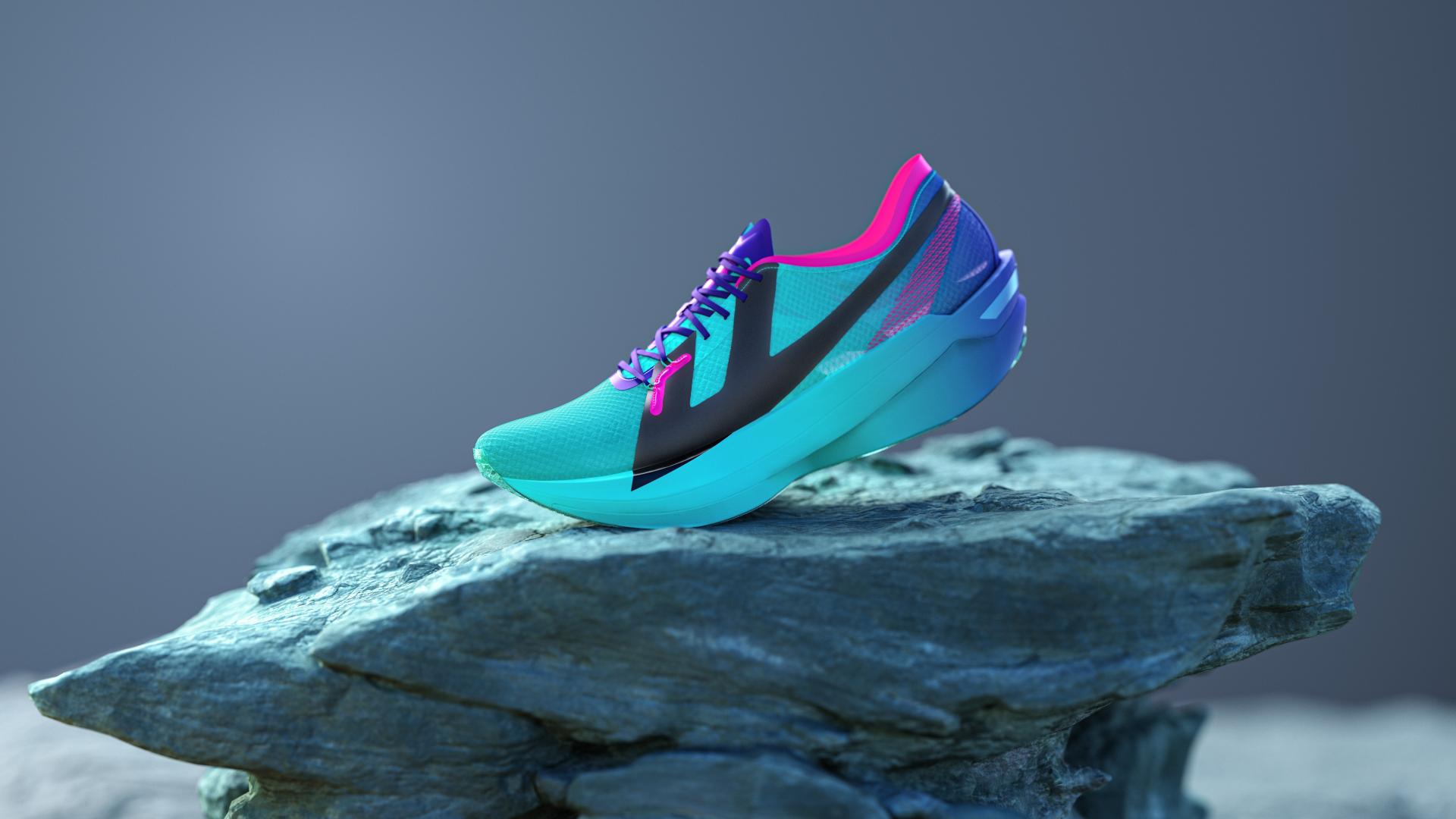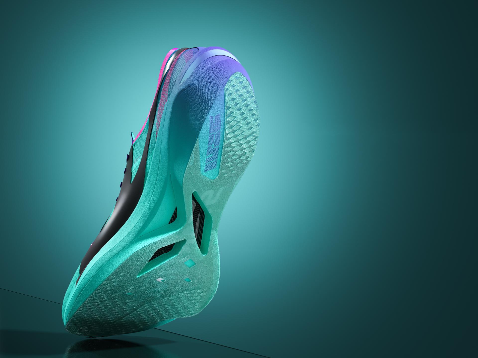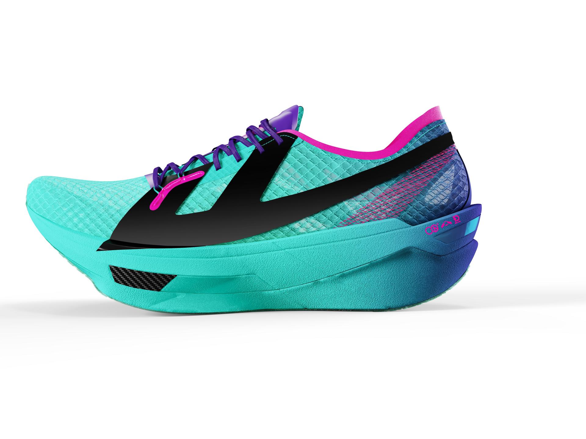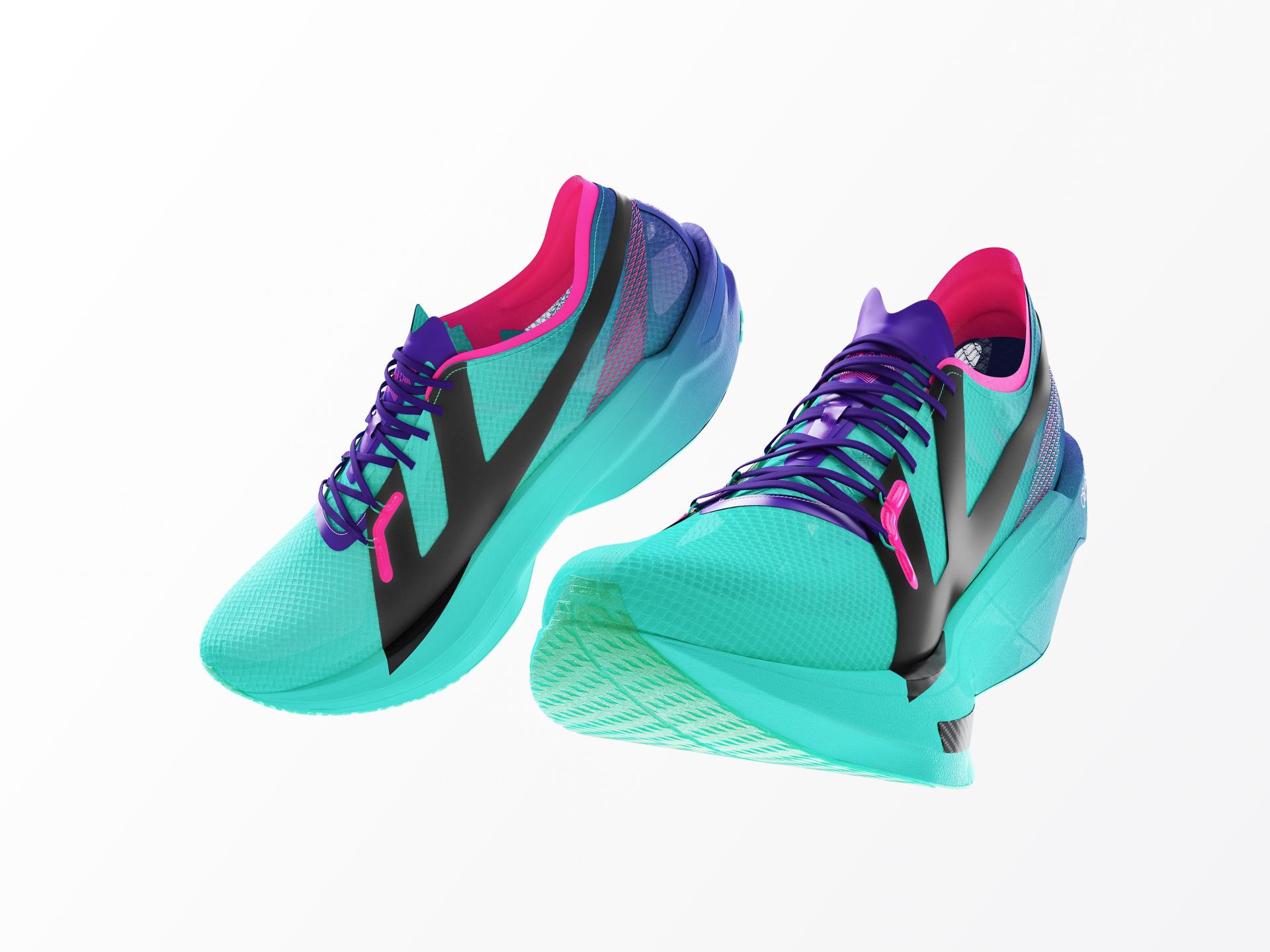 As for appearance design, Starting resembles the ancient Chinese weapon ji (polearm), and adopts a color scheme of malachite blue, fluorescent magenta, and obsidian black. These aesthetically pleasing colors also enhance the safety of runners in environments with low visibility such as rain or heavy fog. Moreover, the streamlined profile, coupled with the inverted trapezoid heel, reduces wind drag and lowers overall weight, greatly optimizing aerodynamic performance. Additionally, the textures of the upper, decorative film, and heel counter echo the Chinese brand name and add a high-tech aesthetic, improving brand recognition and showcasing a professional brand image.