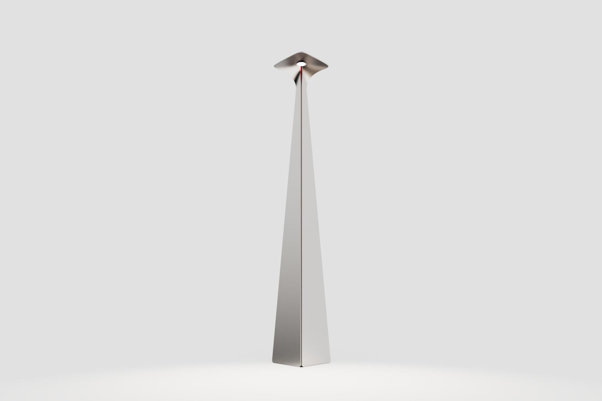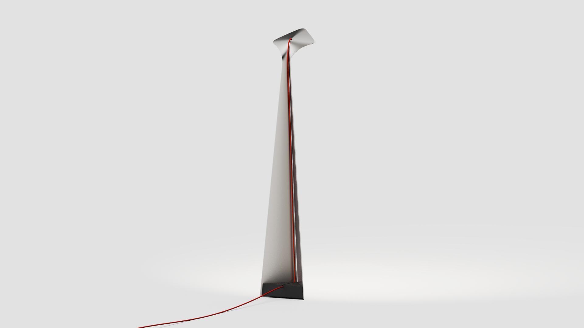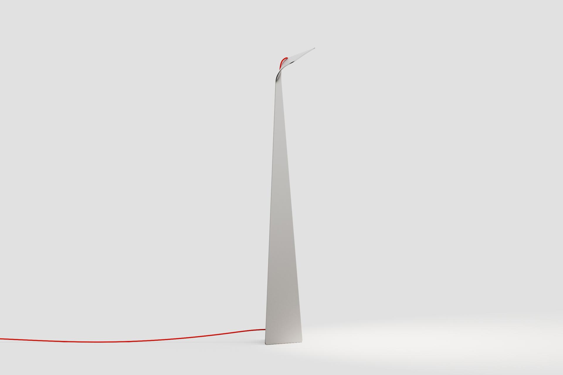 Ori Floor Lamp is a minimalist lighting fixture inspired by Japanese origami, transforming a single sheet of recyclable aluminum into a sculptural form through precise folds. Free from welding, Ori’s streamlined construction enhances sustainability while maintaining an elegant aesthetic. The reverse-folded top seamlessly forms a lampshade, diffusing glare-free light ideal for reading. Standing at 35 inches with a compact footprint, Ori balances functionality and visual appeal, making it easy to place and transport. By integrating origami principles into metal fabrication, the design optimizes material efficiency while achieving structural stability. The result is a refined yet striking floor lamp that challenges conventional geometric forms, embodying simplicity, sustainability, and craftsmanship in modern lighting design.
