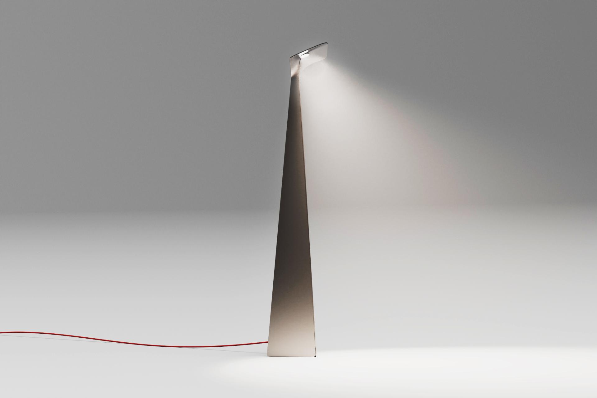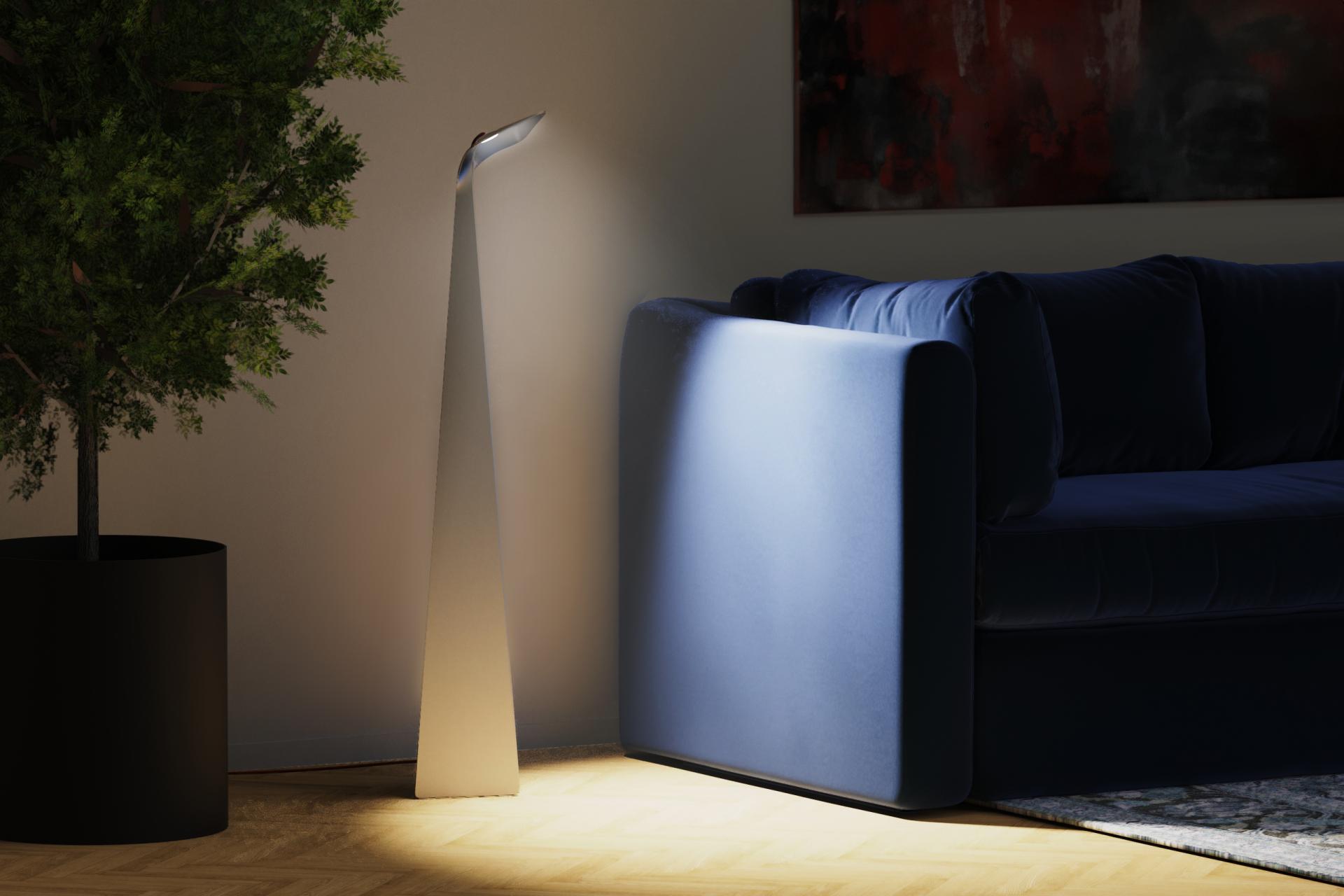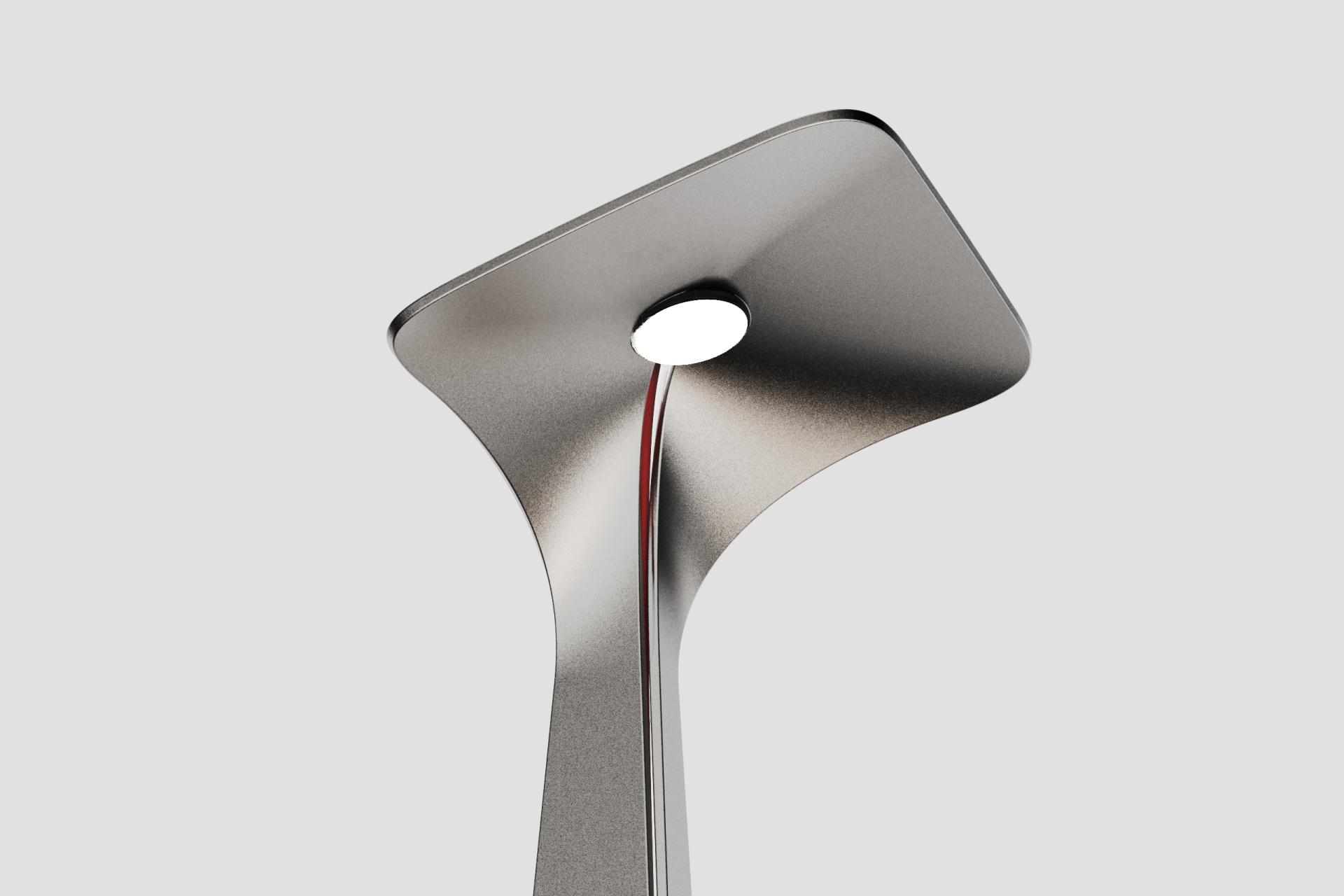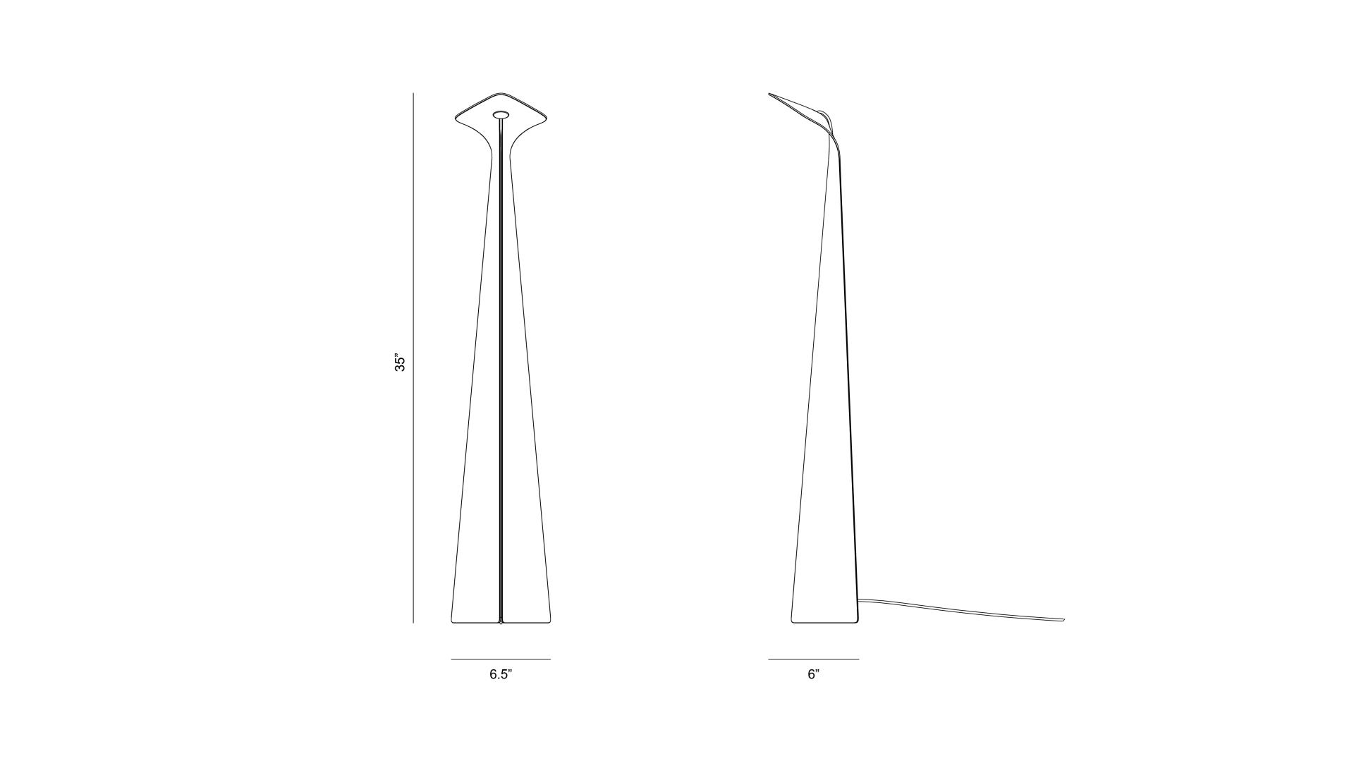 Ori Floor Lamp is a minimalist lighting fixture inspired by Japanese origami, transforming a single sheet of recyclable aluminum into a sculptural form through precise folds. Free from welding, Ori’s streamlined construction enhances sustainability while maintaining an elegant aesthetic. The reverse-folded top seamlessly forms a lampshade, diffusing glare-free light ideal for reading. Standing at 35 inches with a compact footprint, Ori balances functionality and visual appeal, making it easy to place and transport. By integrating origami principles into metal fabrication, the design optimizes material efficiency while achieving structural stability. The result is a refined yet striking floor lamp that challenges conventional geometric forms, embodying simplicity, sustainability, and craftsmanship in modern lighting design.