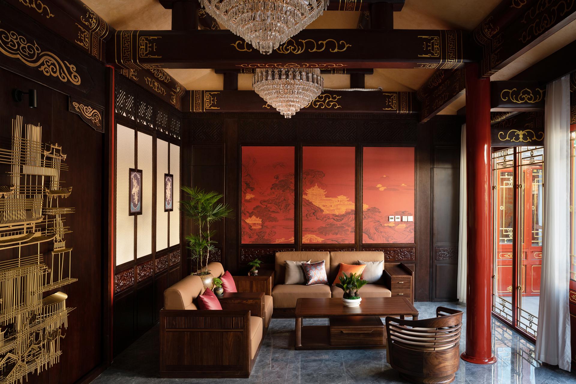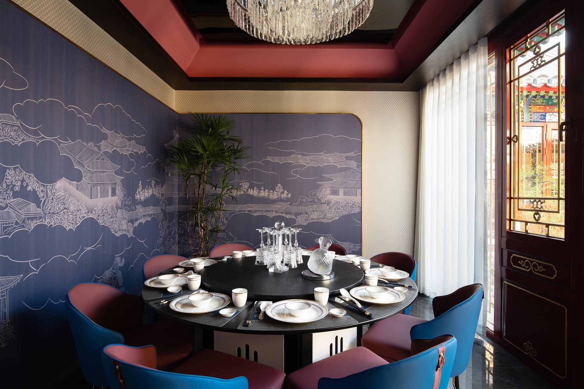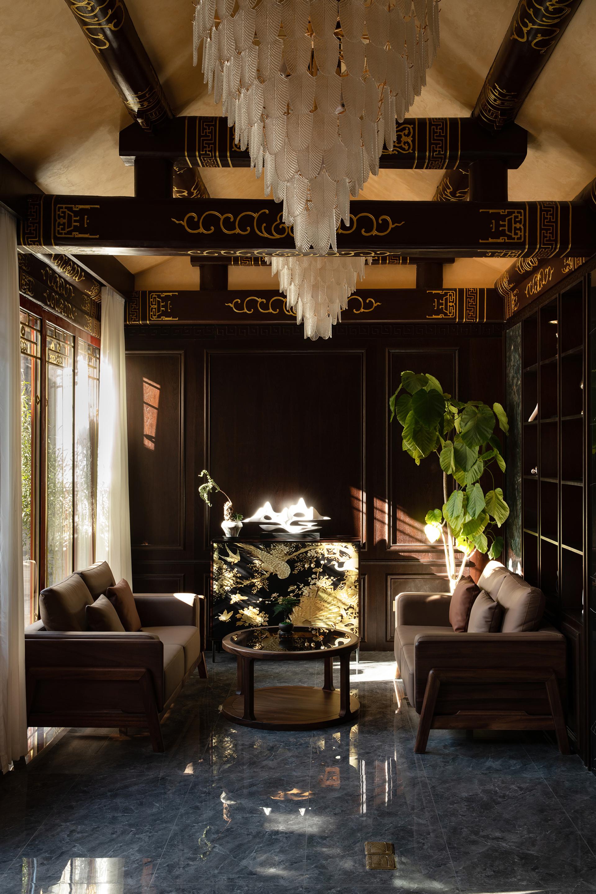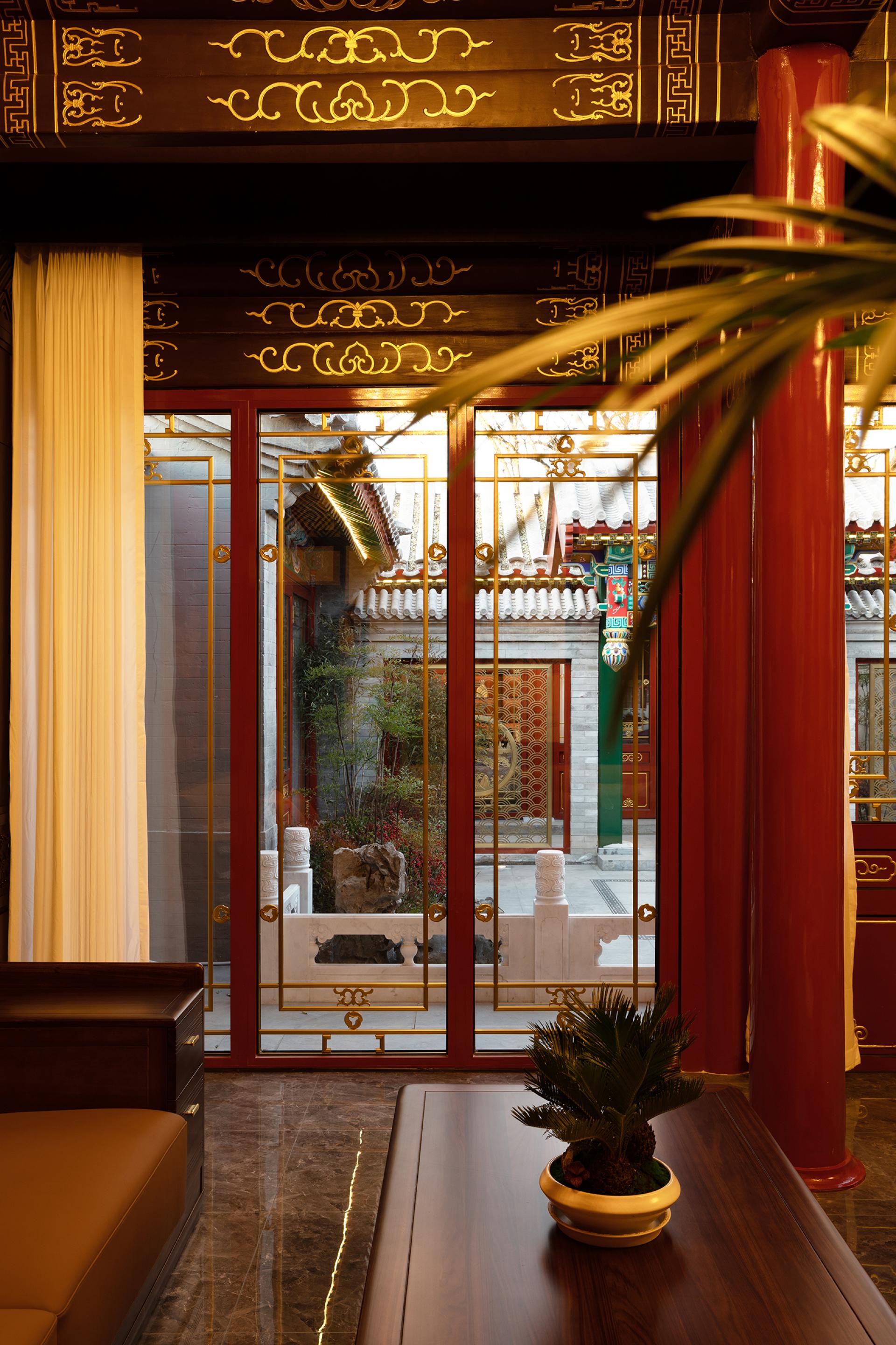 This traditional Beijing style courtyard clubhouse in Dongsi Santiao was originally a standard one courtyard house, but has been carefully designed and transformed into a two courtyard house layout. The courtyard covers an area of 350 square meters and is only 200 meters away from the main road of Dongsi North Street. There are two parking spaces at the entrance. The quadrangle faces south and north, with households entering in the northwest direction. The newly built part continues the traditional style of the Beijing style and has completed a brand new decoration. Throughout the entire renovation process, we have always adhered to the concept of sustainable environmental protection, striving to inherit historical and cultural heritage while reducing environmental impact, and achieving harmonious coexistence between architecture and nature.The indoor functions are complete, including a large restaurant, reception hall, private rooms, tea room, cigar bar KTV、 Entertainment egg area, lounge, and professional kitchen. The overall theme revolves around the bi-directional Feng Shui fish, creating a grand and high-end reception and reception venue. In the selection of indoor decoration materials, a large number of environmentally friendly materials are used, such as low formaldehyde boards, water-based environmentally friendly paints, etc., to ensure indoor air quality, reduce potential hazards to residents' health, and also reduce volatile organic compound emissions during the decoration process and subsequent use. On the basis of the architectural style of carved beams and painted rafters and painted color paintings in Beijing style quadrangles, the single ound ridge roof floral pendant door is integrated, and innovative metal carved boards are used to replace traditional windows, making the space both flexible and private. The perfect integration of White Marble railings, stone bridges, the Taihu Lake Lake stones, atomized waterscape and feng shui fish carved in the whole stone of the main courtyard center not only adds space highlights, but also inherits the traditional culture. In terms of spatial lighting design, energy-saving LED lamps are selected, combined with intelligent control systems to automatically adjust brightness according to different time periods and scene requirements, effectively reducing energy consumption while ensuring the creation of spatial atmosphere.