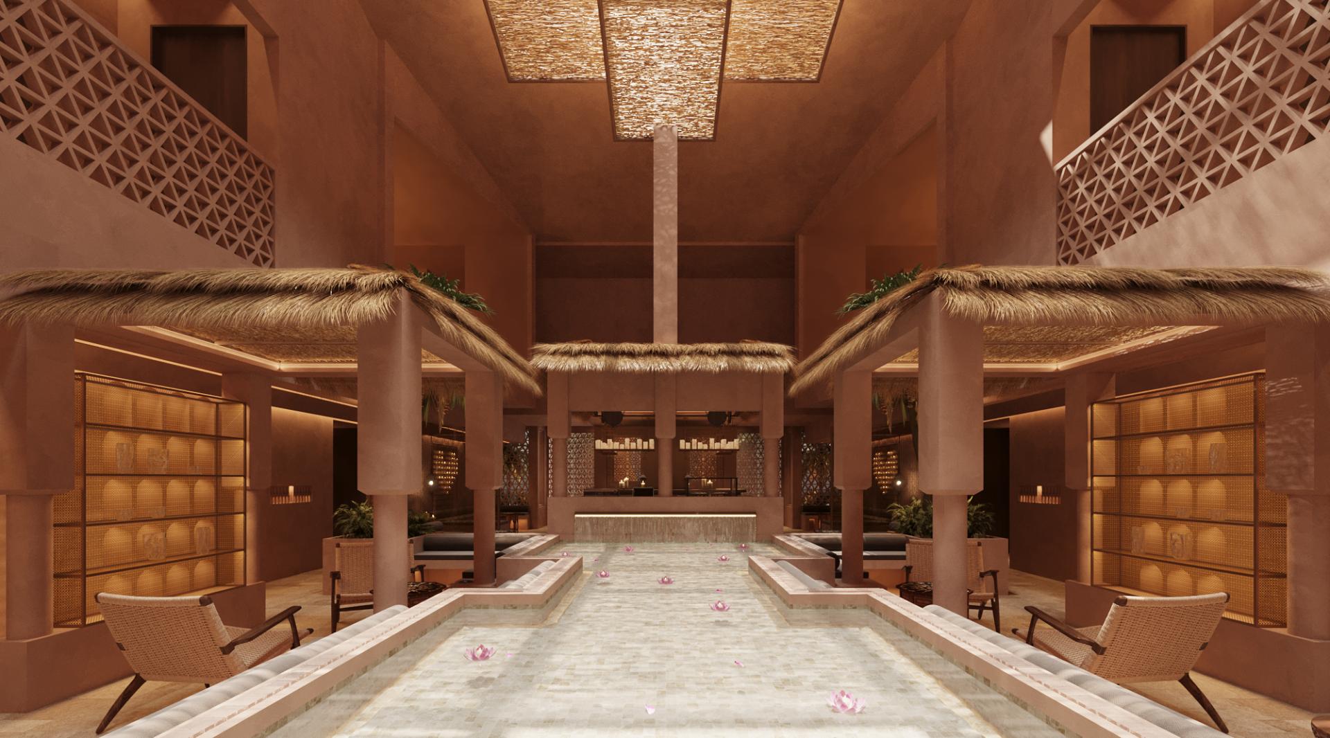 This project is the flagship store of **BODY VACATION MASSAGE & SPA** in Bangkok, Thailand. The client aims to create a unique spa art space for the flagship store. Ultimately, we have changed the conventional design approaches and decorative techniques. By combining the origins of SPA with local characteristics, we trace the core essence of its intrinsic features. The overall goal is to pursue the essence of SPA, starting from its origins and exploring Southeast Asian culture, ar-chitecture, customs, religion, and beliefs, in order to achieve spir-itual and experiential elevation through every aspect, including the senses of sight and touch.