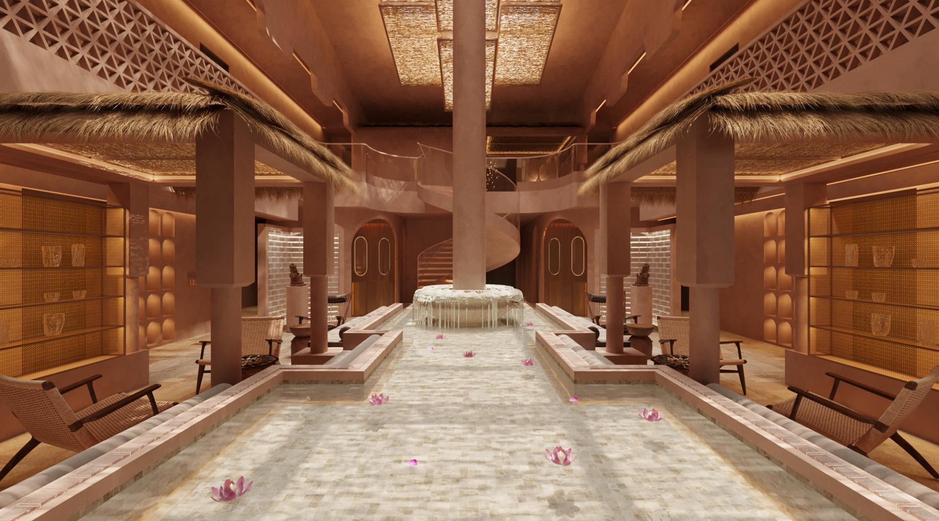 Starting from the spatial architecture, we create spaces within spac-es. From the exterior, we use the "source" element of water, which is fundamental to SPA, to permeate the entire space. Water flows through the architecture, creating a unique spatial experience. The spaces are both independent and interconnected, forming an orderly and ritualis-tic array that provides customers with a dual experience of spirit and sensation as soon as they enter.