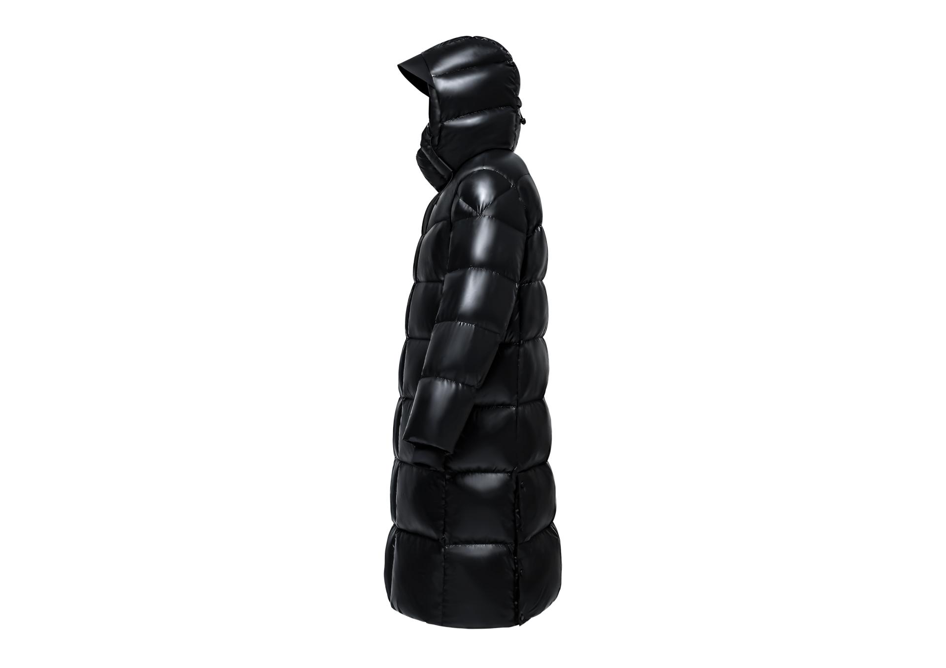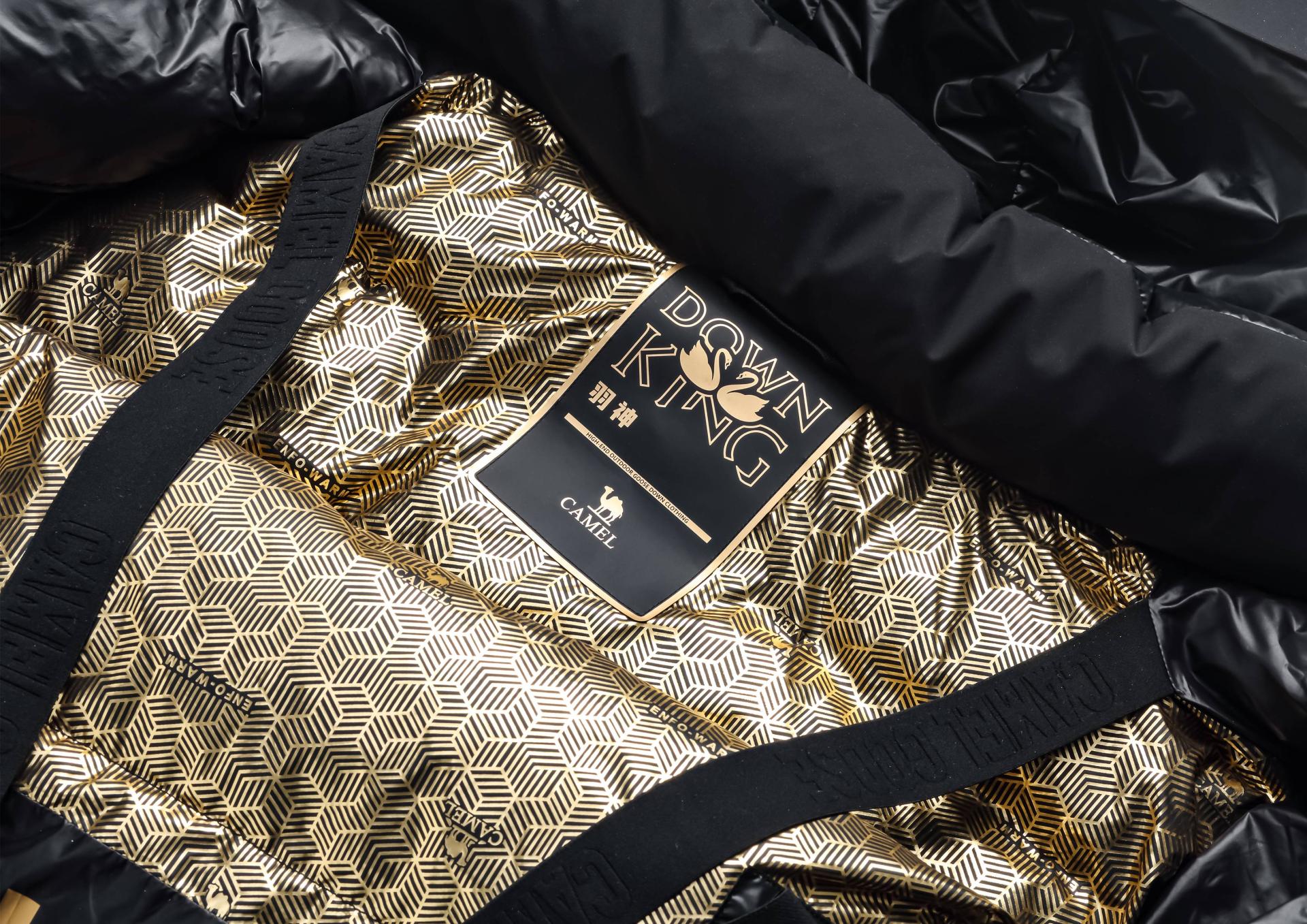 Inspired by the graceful symmetry of two swans, the design deconstructs this imagery into a V-shaped pattern—a symbol of victory—positioned prominently on the chest. This not only creates a distinctive visual identity for the brand but also reflects the swan’s resilience in frigid conditions and its noble grace. The design also embraces minimalist aesthetics, with quilting lines meticulously following the golden ratio to visually elongate the body for a taller, slimmer appearance. Classic black, as the main color, is complemented by gold accents, evoking a refined appeal that embodies the brand’s philosophy of simplicity without sacrificing understated luxury.