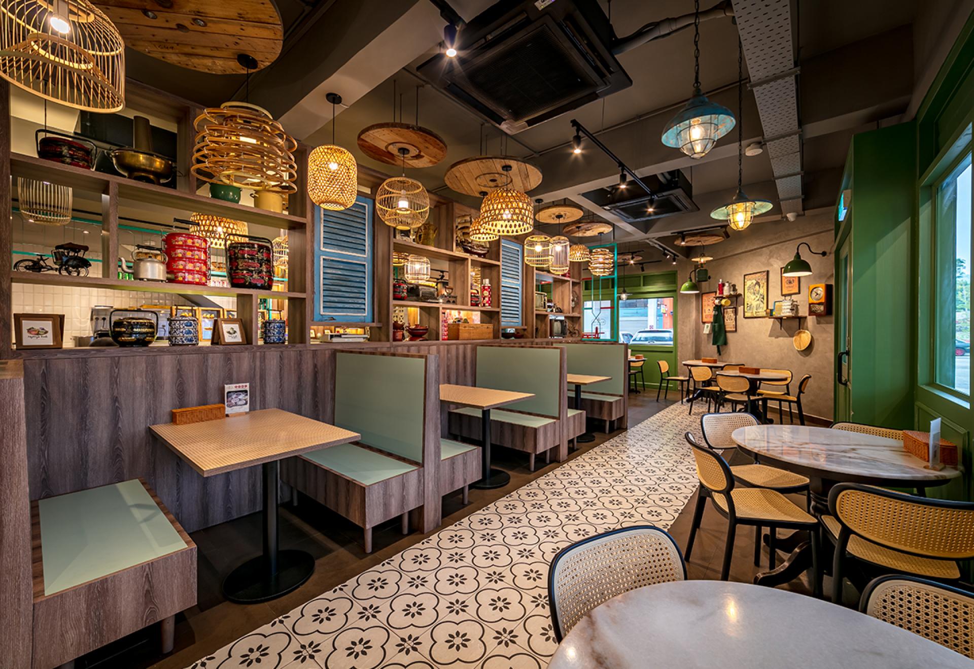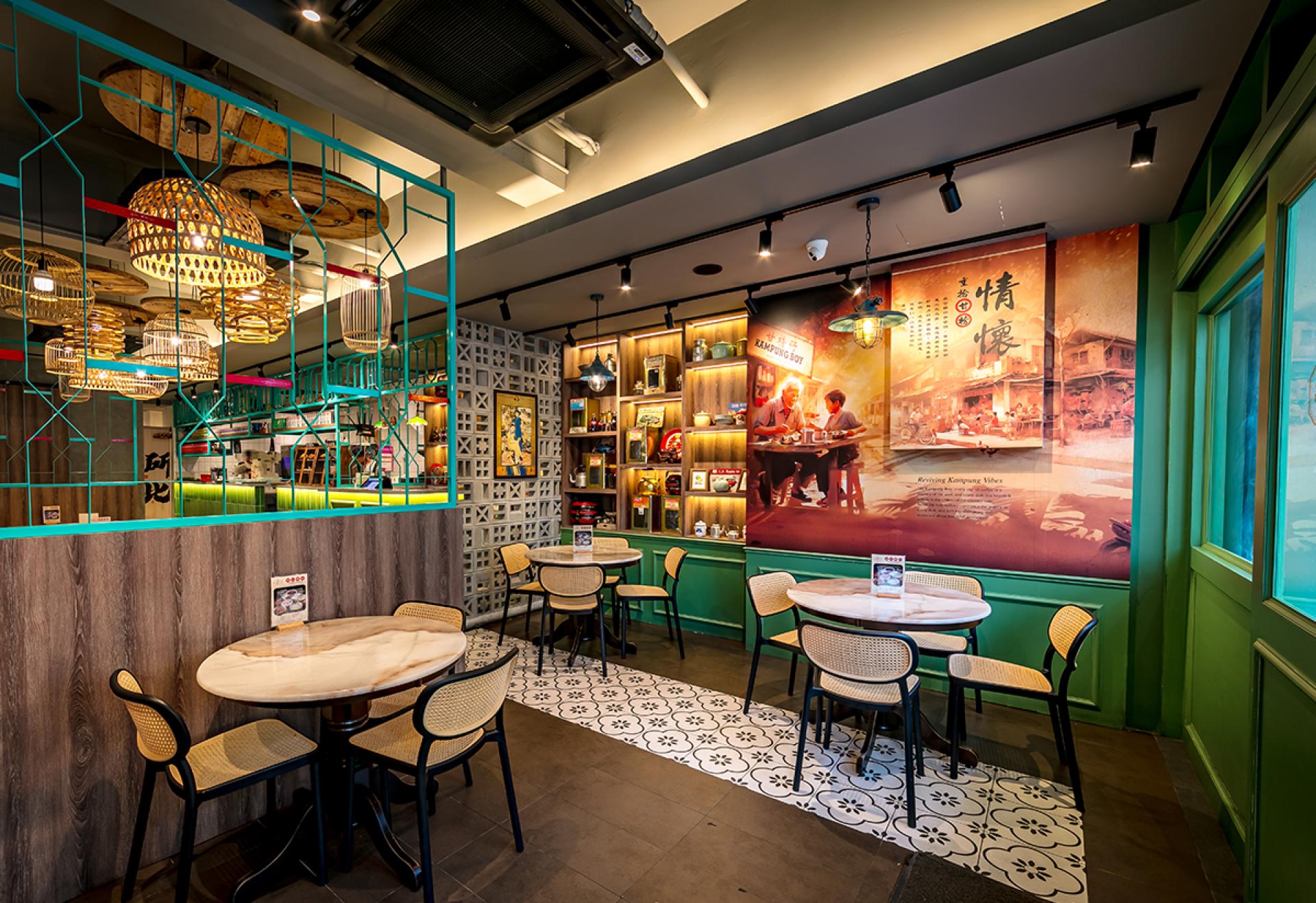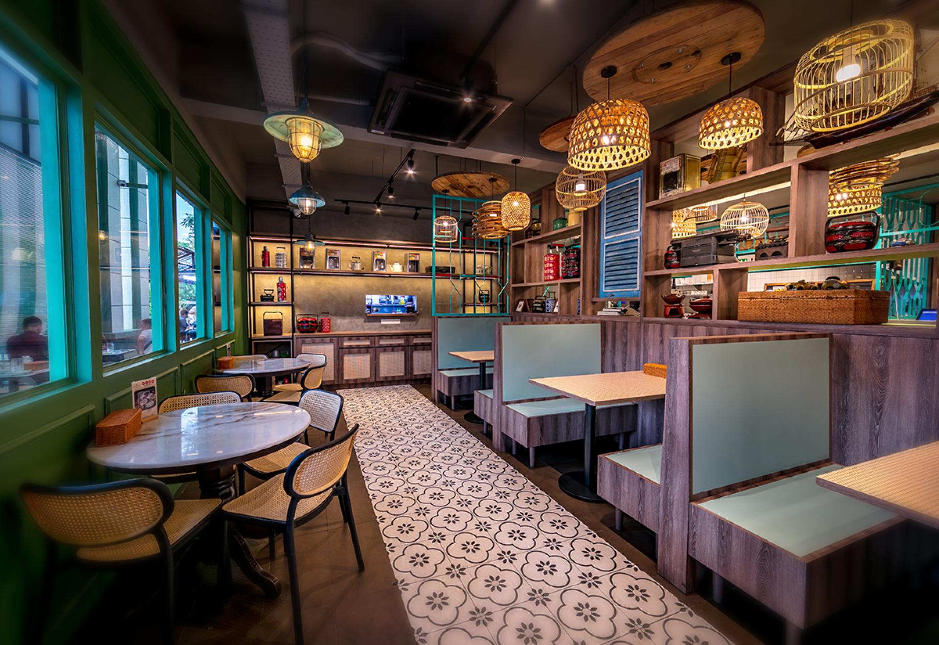 our team designed the kopitiam that evokes a nostalgic, rustic charm, blending traditional village