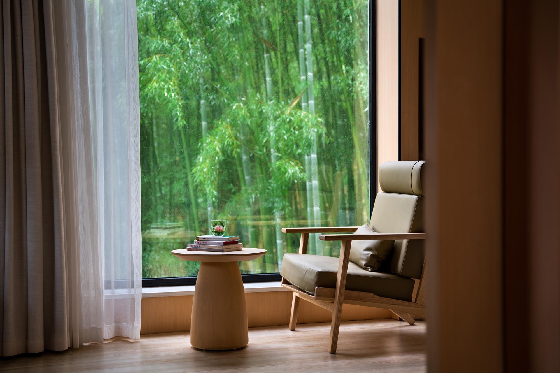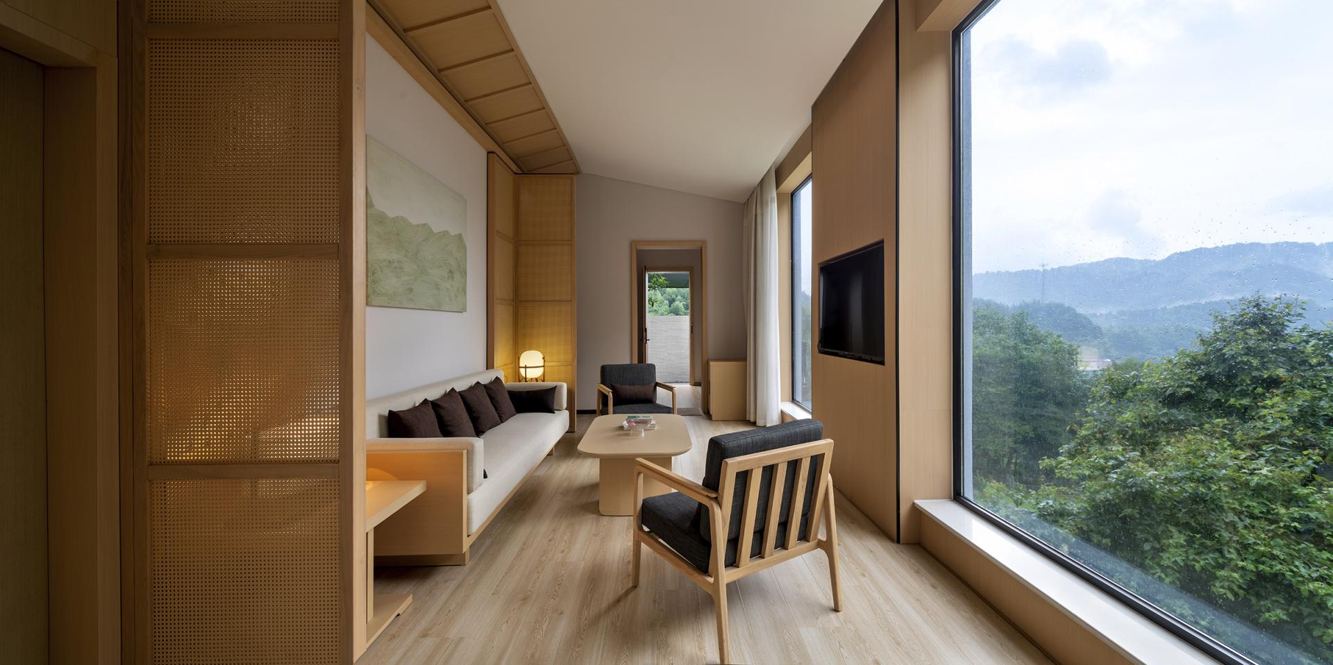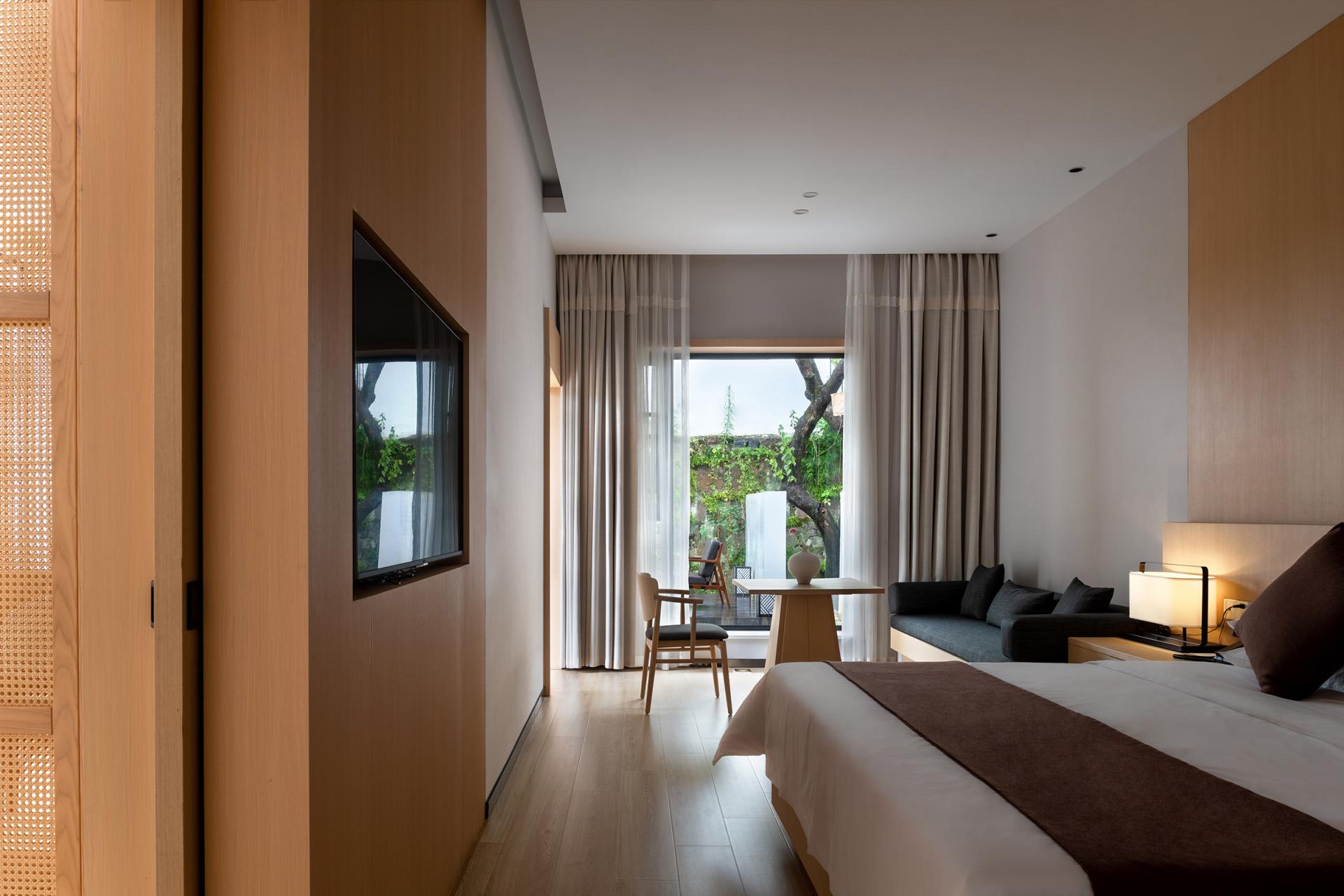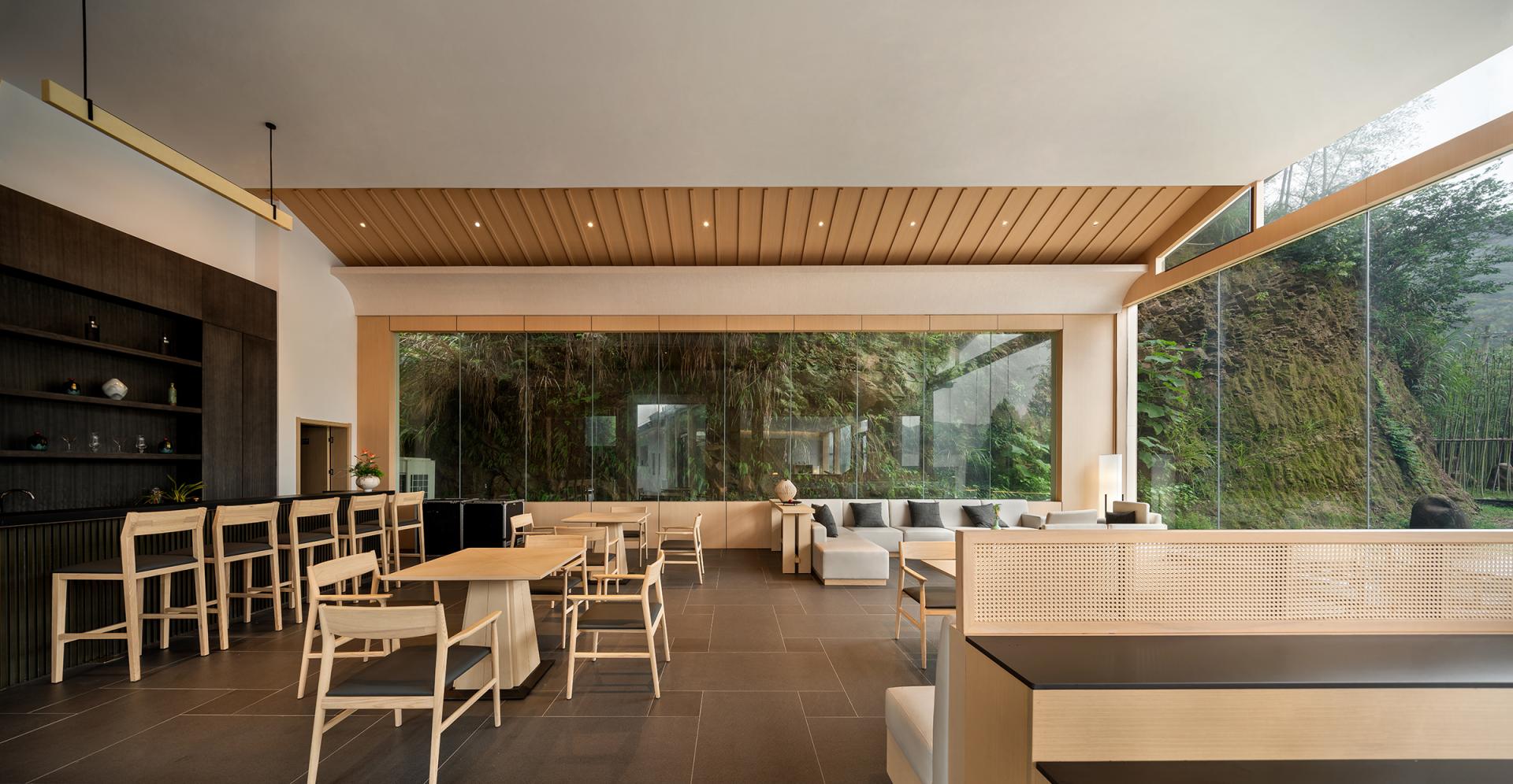 This project is situated deep within the lush forests of Luzhen, Shucheng, Anhui, in the scenic Dabie Mountains. The site was originally a long-abandoned dormitory, nestled against the mountainside, backed by towering bamboo forests, and facing a valley. It is adjacent to the Lin Shui Yu Quan Dabie Mountain Cave-Aged Winery, which boasts the largest cave-aged baijiu storage capacity in East China. It is hoped that through design and renovation, the space can be transformed into a comprehensive destination integrating accommodation, dining, wellness, tasting, social interaction, and relaxation, becoming a boutique resort hotel that combines natural sightseeing with cultural experiences. The architectural design blends seamlessly with the natural surroundings. The building exteriors feature clean lines and modern materials, complemented by traditional Chinese architectural elements such as sloping roofs and courtyard layouts. This fusion reflects both the simplicity and functionality of modern architecture and the depth of cultural heritage, striking a balance between contemporary and traditional styles. The original red brick walls have been repainted in the traditional white of Anhui architecture, standing out harmoniously amidst the dense forest. To enhance spatial functionality and flow, a connecting corridor has been added between two buildings, serving as a reception area and creating an enclosed courtyard, improving the overall spatial coherence and comfort. The corridor, designed in a natural style with large glass windows, allows natural light and external views to permeate, enabling guests to experience the surrounding rocks and bamboo forest while moving through the space, enhancing the interaction between the interior and the environment. Overall, the design centers on the theme of "Mountain and Water Secret Retreat, Bamboo Forest Mountain Residence," adhering to the principles of respecting and integrating with nature. Through coordinated architectural, interior, landscape, and furnishing designs, the project creates a space that meets modern functional needs while exuding a natural and cultural ambiance. "Living by the mountain, sleeping by the water, singing while drunk, what more could one ask for in life?" The owners and design team have used space as a medium to provide visitors with a cultural experience and unique emotional value.