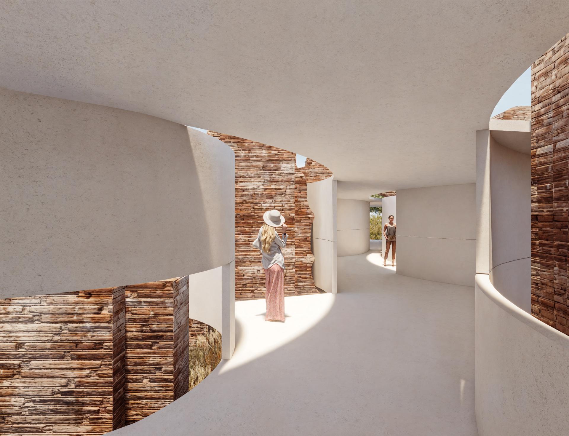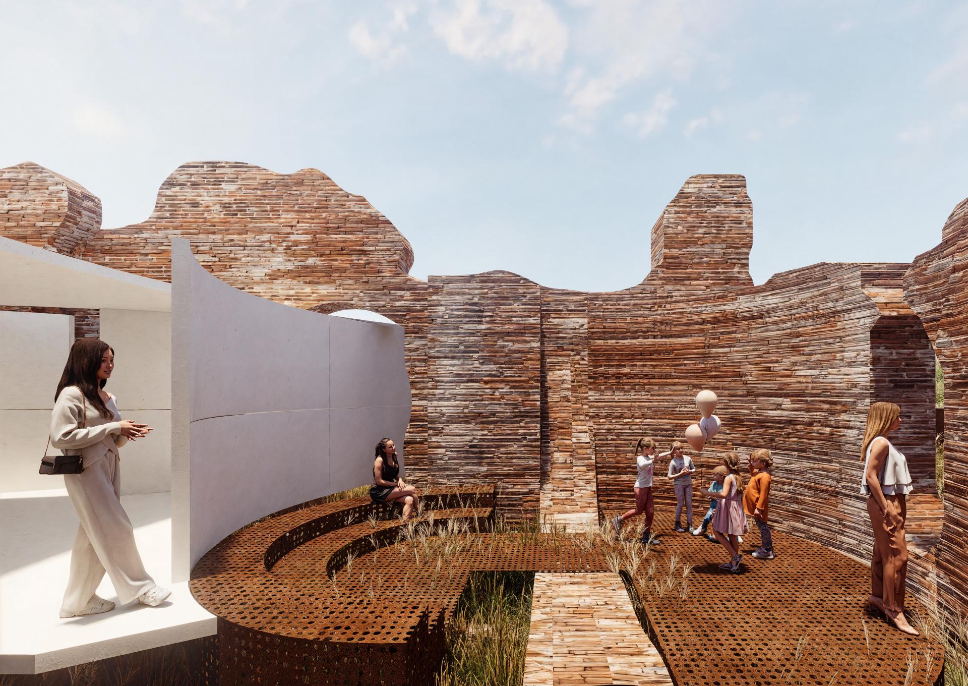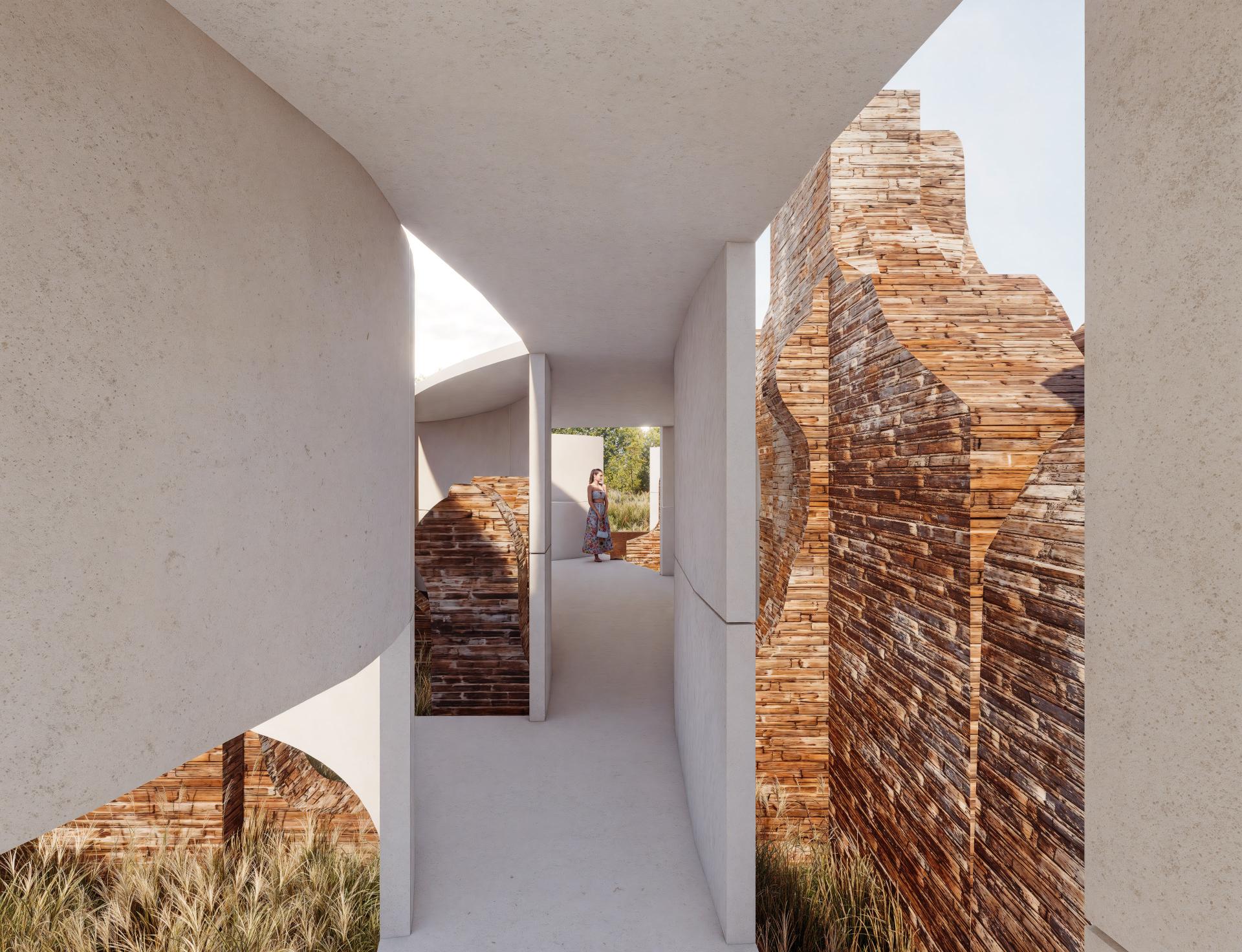 At Curinga, we reawaken Roman thermal bath ruins with a minimalist steel and translucent concrete structure. Rather than reconstructing, we encircle the remnants with a visitor path and interactive zones. Water features and light projections revive the baths’ essence, sparking imagination and personal engagement with history, as inspired by Bachelard’s poetic spaces.