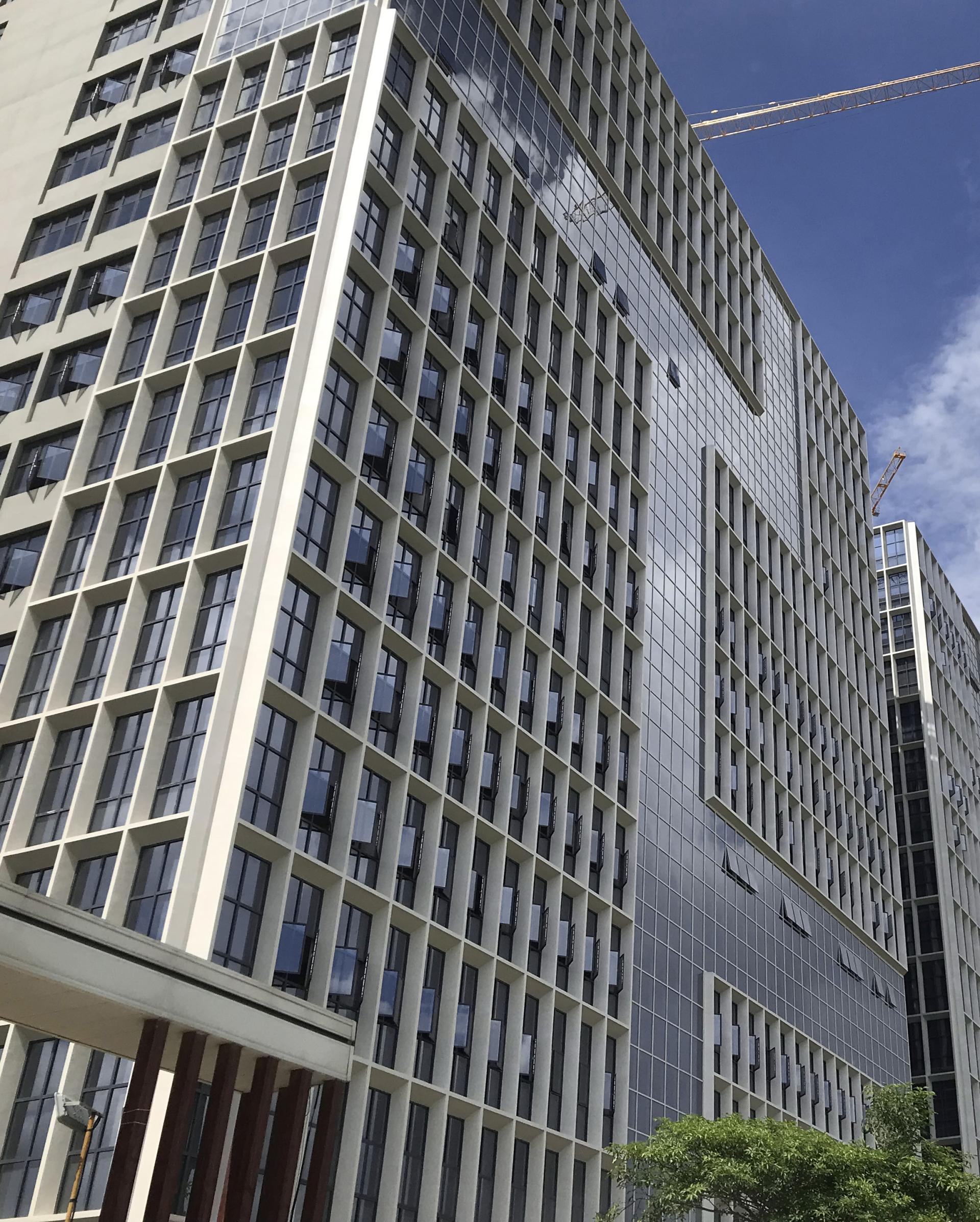 The planning and design strives to transform the high volume ratio into high aggregation. A total of 7 industrial office buildings and 2 employee dormitory buildings are designed for the two plots, which also meets the requirements of the developer. The building facade is designed in a modern architectural style, pursuing a simple and clean appearance and a square and generous shape. The facade mainly uses three materials: aluminum, stone and glass. Because the terrain is very long, in order to make the vision along the street richer, we use the changes of glass curtain walls. This also enriches the visual experience in the park.