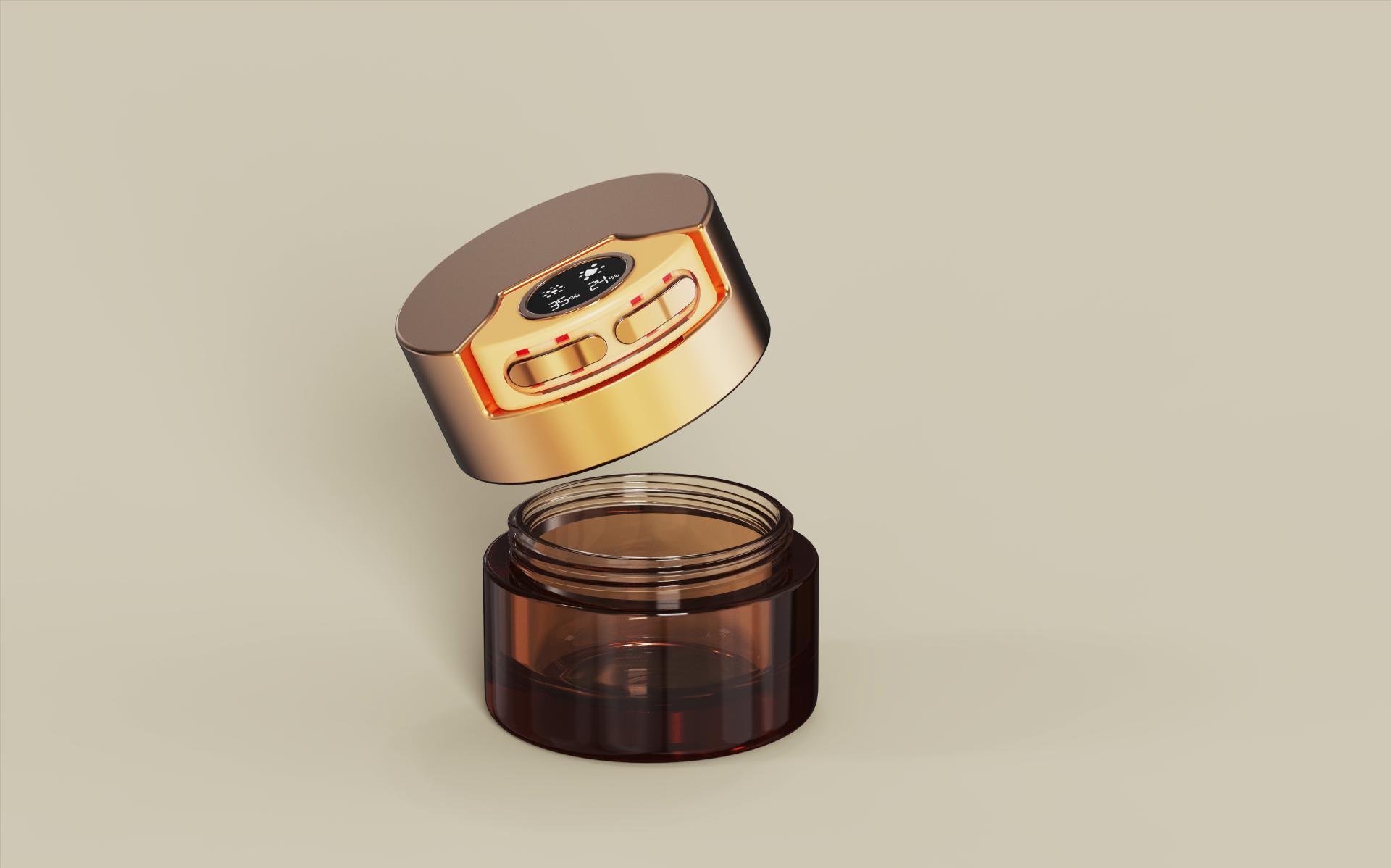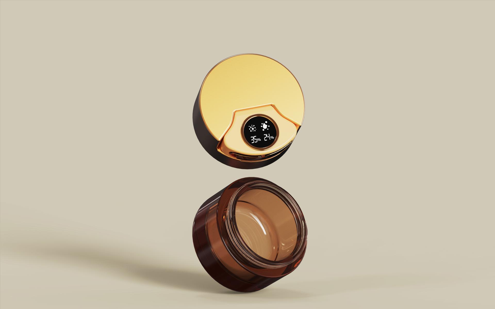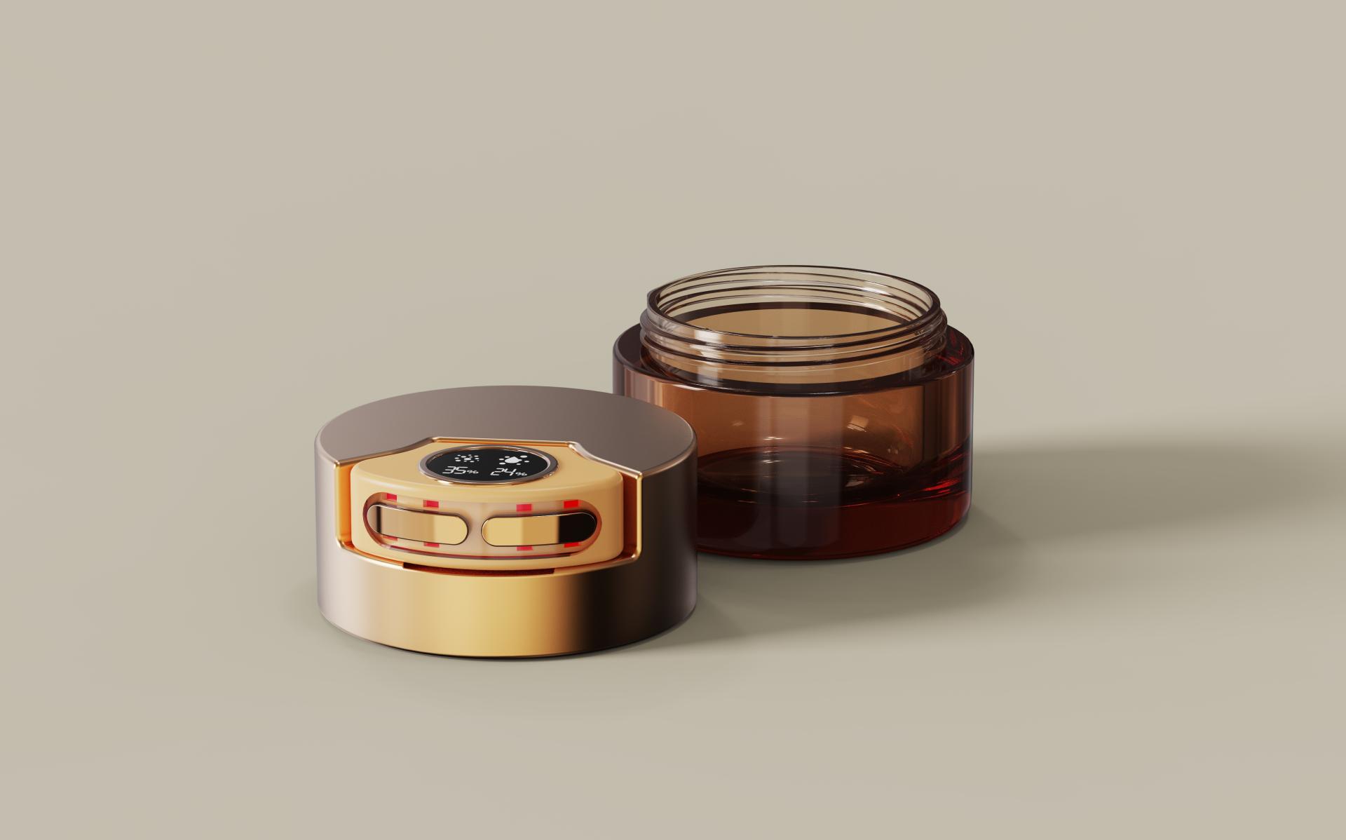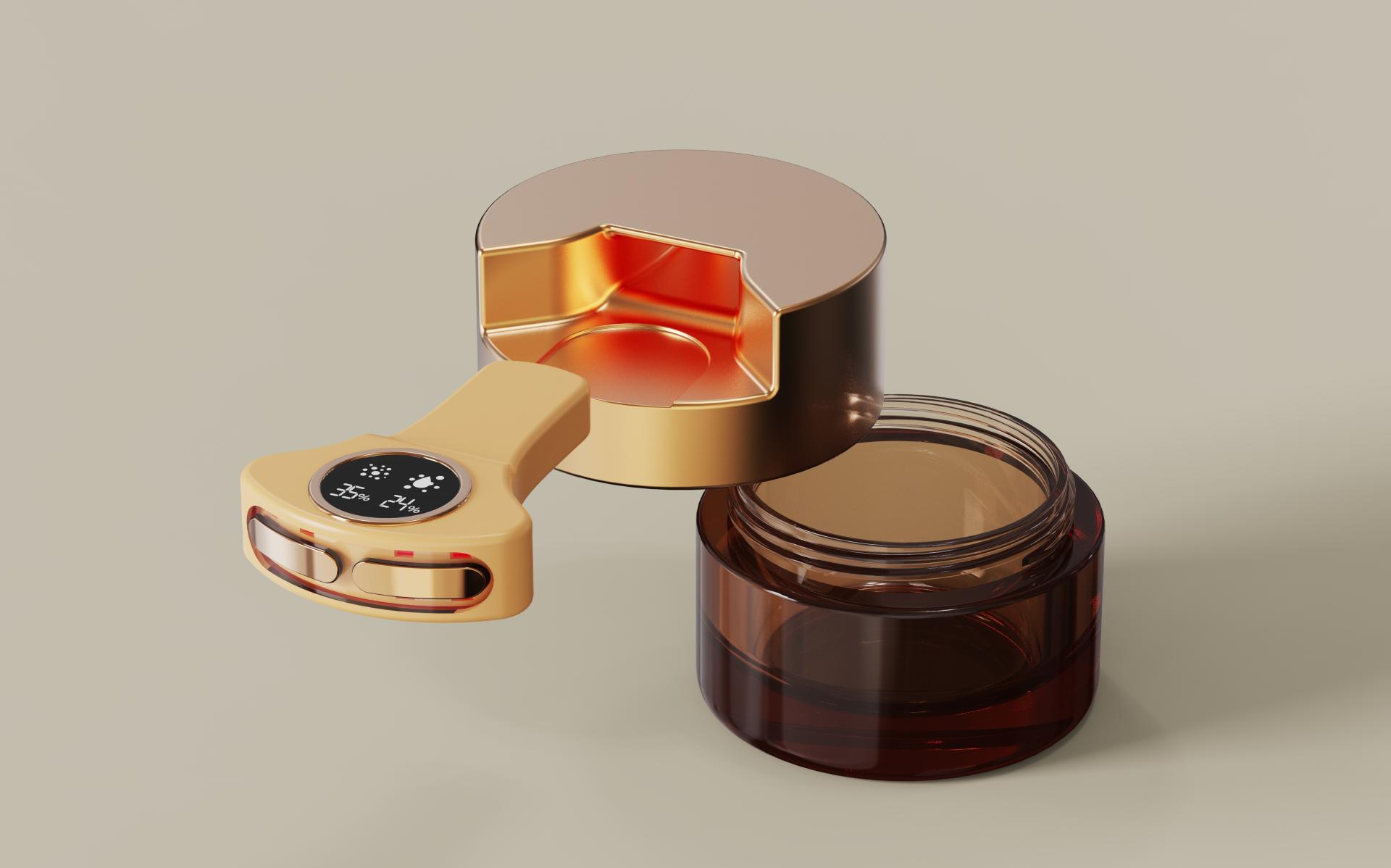The applicator charges effortlessly through the jar-integrated charging base, maintaining a clean, luxurious appearance. Designed for ease, performance, and sophistication, this device transforms a simple cream jar into a multifunctional skincare innovation, bridging beauty and smart technology.