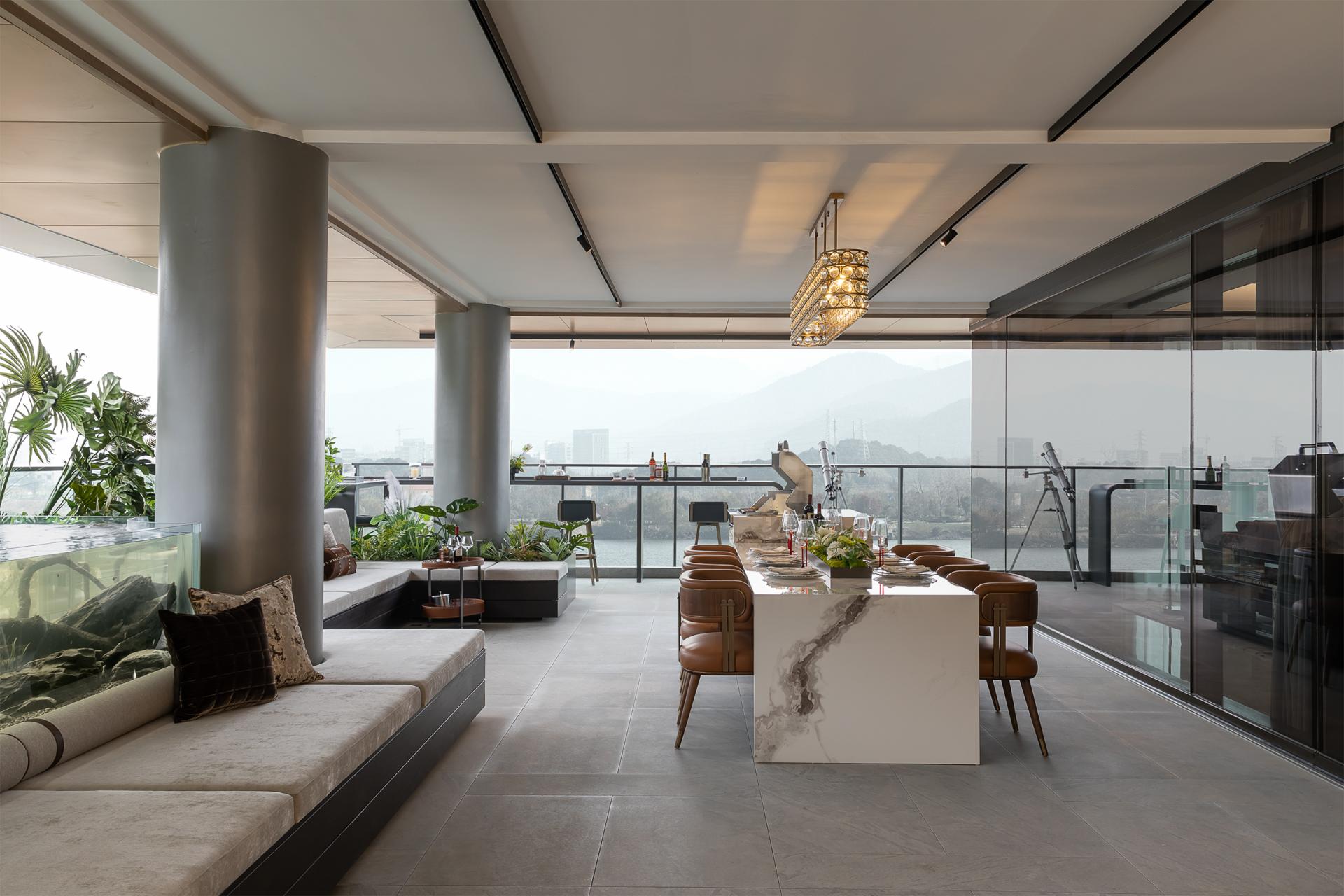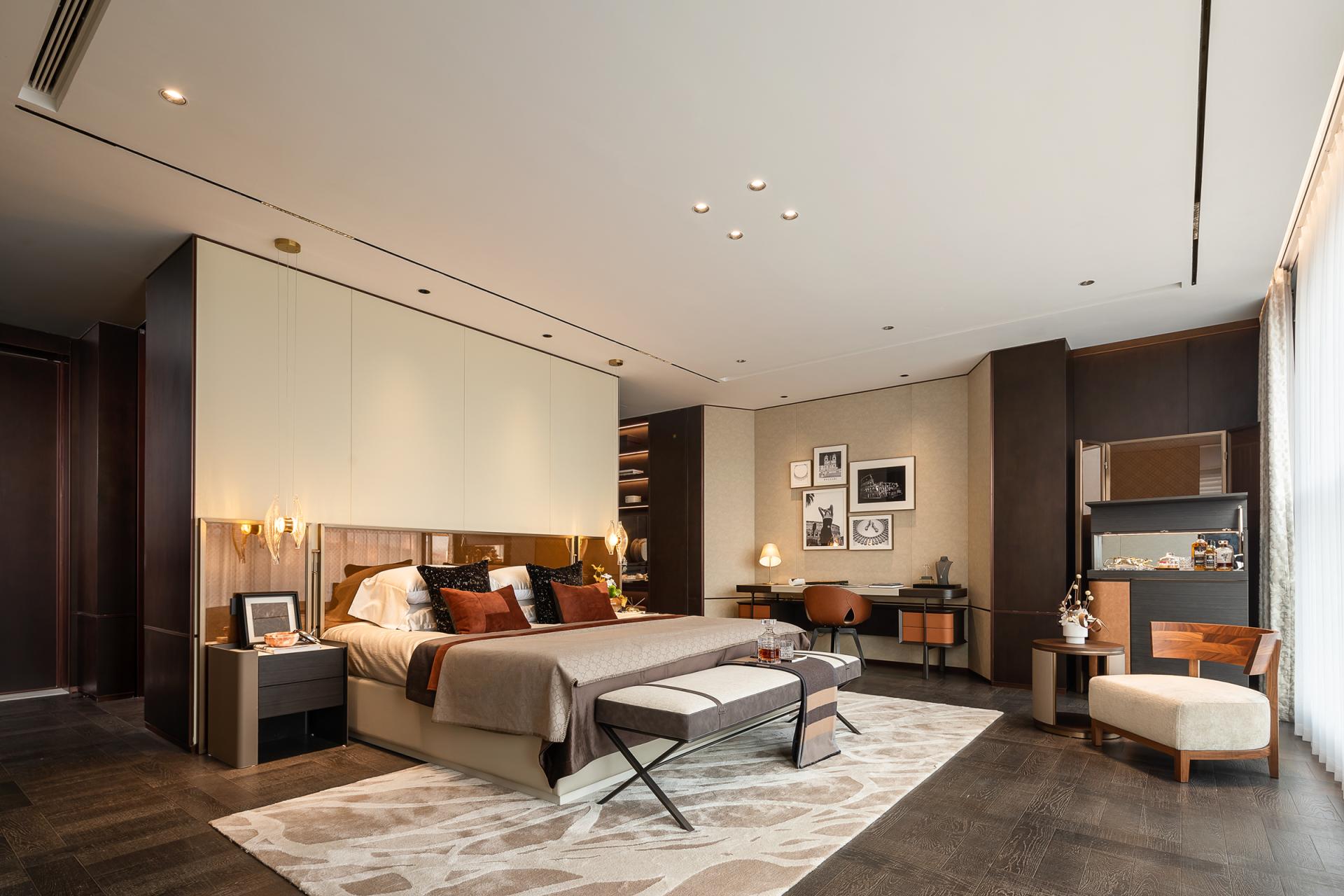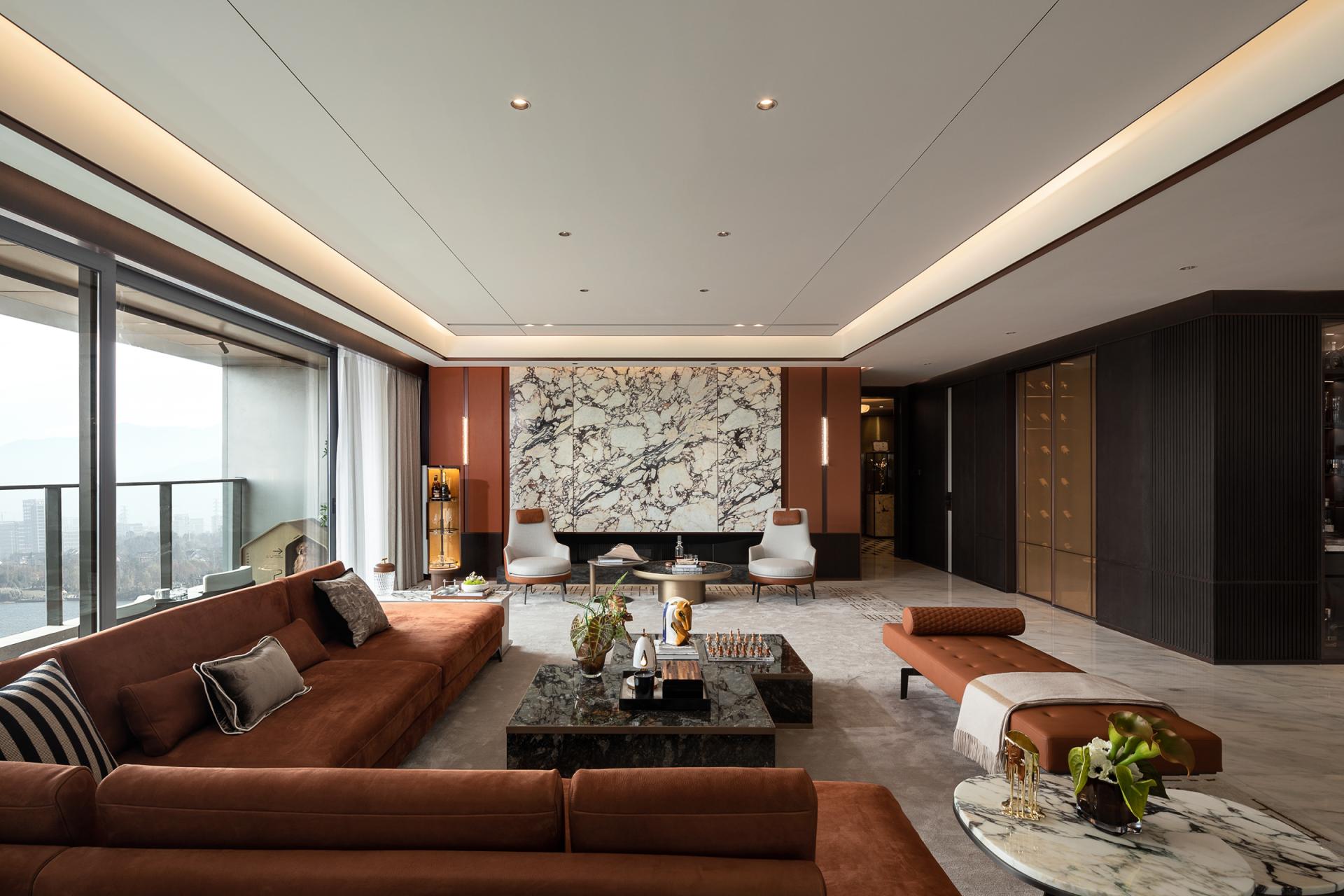 This project aims to create a top-tier luxury mansion that blends Eastern elegance with modern international style. Inspired by the Bulgari Hotel in Tokyo, the design combines Bulgari aesthetics with Eastern artistic conception, crafting a noble and refined spatial atmosphere. The design philosophy revolves around four major themes: social interaction, hobbies, enjoyment, and art. By integrating natural river views with an urban oasis, it presents a natural Eastern aesthetic. The innovation lies in merging Bulgari's classic design techniques with modern materials such as brass metal, luxury stone, and genuine leather upholstery, constructing a subtle yet luxurious Eastern charm. The use of cosmic gold luxury stone and laminated glass enhances the sophistication and artistic quality of the space. The foyer begins with a lacquer painting and copper foil collage artwork, while the living and dining areas showcase an international Eastern luxurious atmosphere through Bulgari's starry orange tones and delicate, warm materials. The master bedroom and secondary master bedroom contrast modern fashion with Eastern artistic conception, and the sky garden, through functional zoning, meets multiple needs such as river views, socializing, and leisure, creating an exclusive high-end living experience for a distinguished circle.