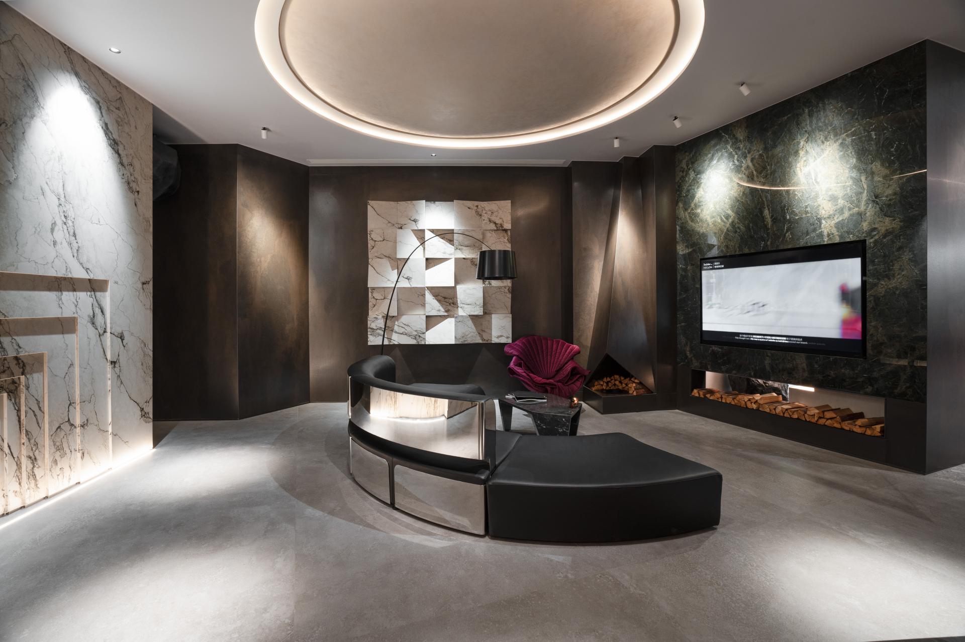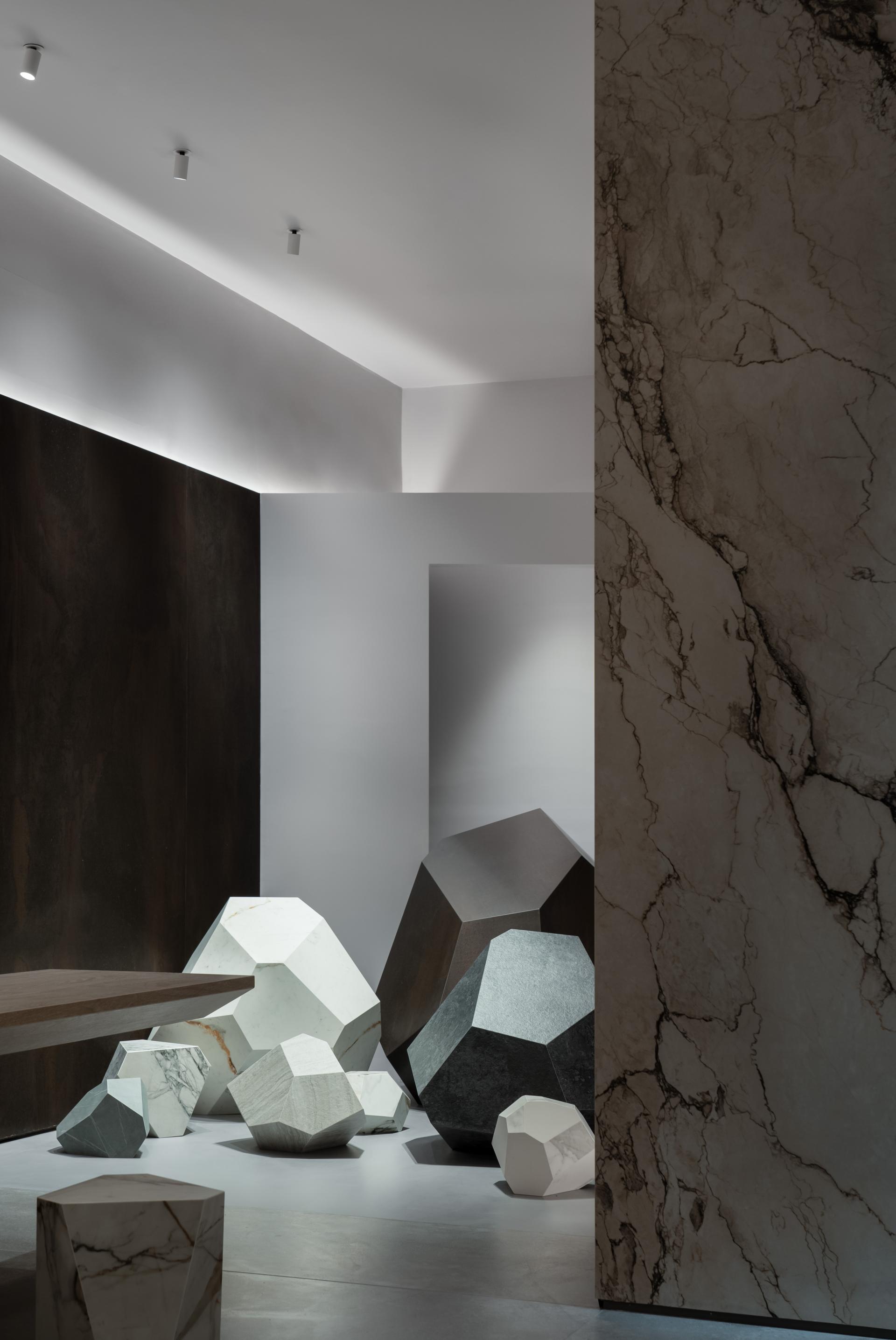 The Spanish Techsize sintered stone is the core material, chosen for its natural texture and sustainable qualities. Its intricate veins and rich, earthy tones capture the essence of rocky landscapes while emphasizing environmental consciousness. Through meticulous pattern arrangement and precise alignment, the stone slabs create a sense of depth and scale, reflecting the grandeur of mountainous terrain.