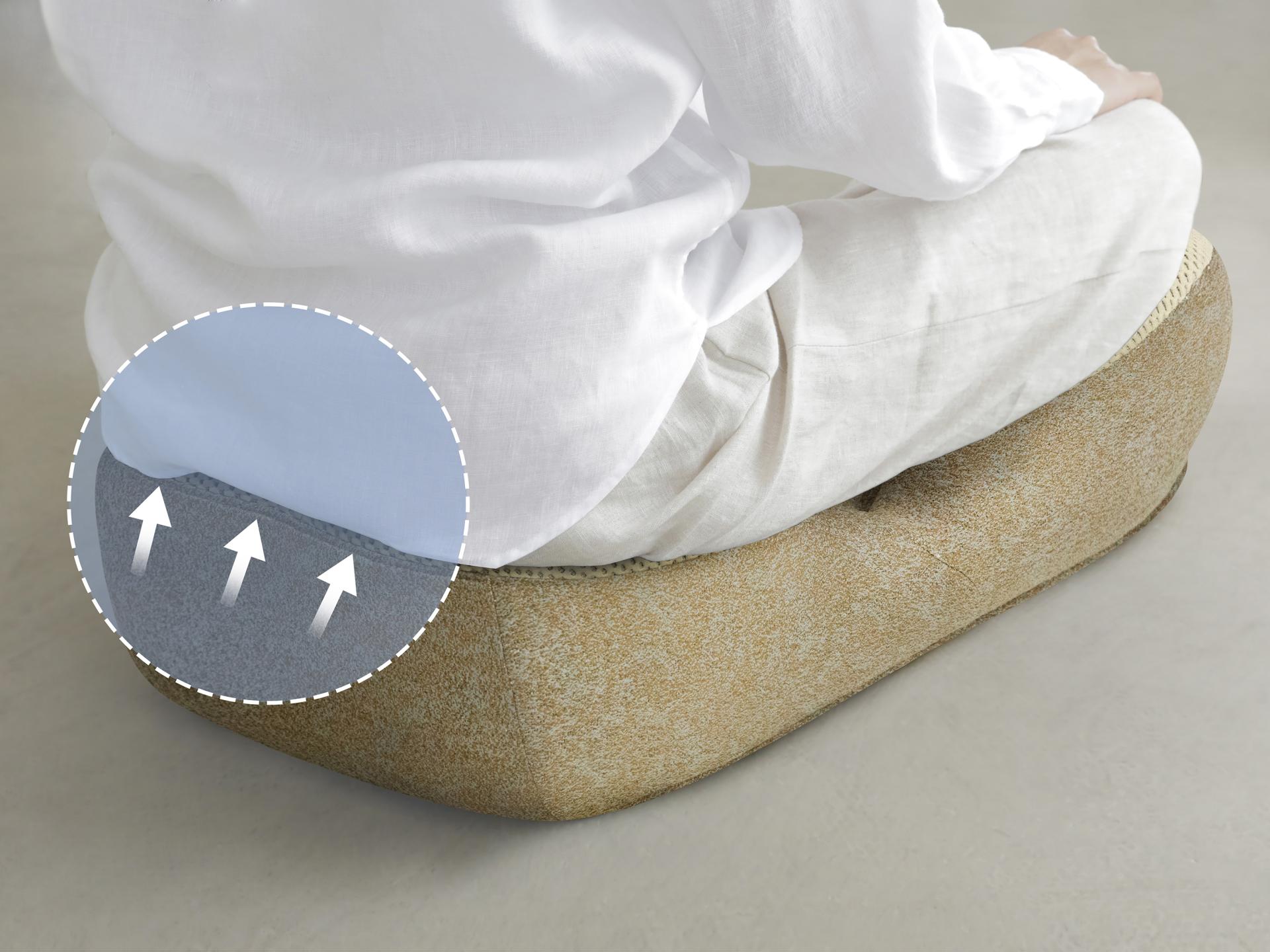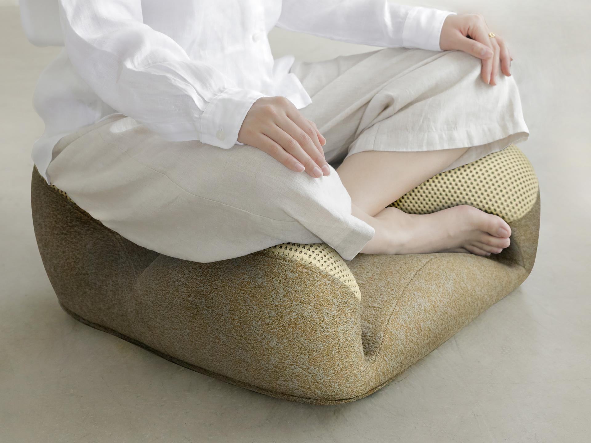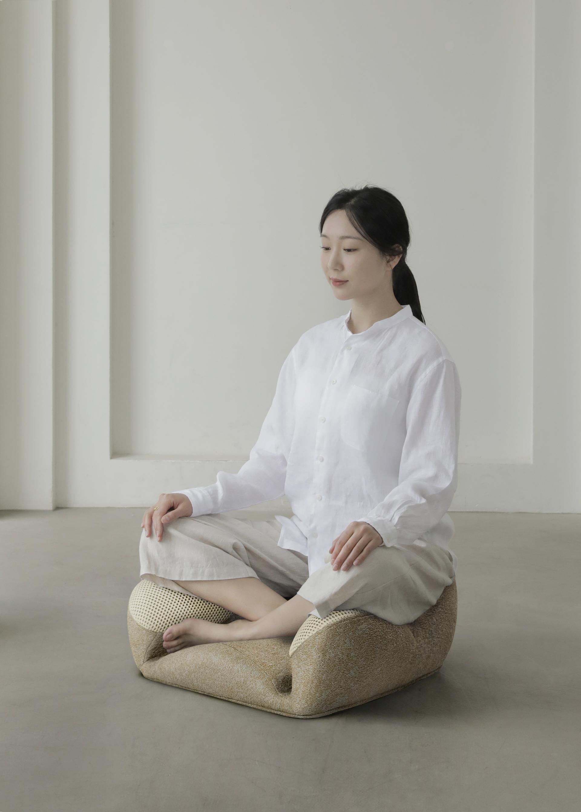 This is a cross legged sitting device used for meditation. Its overall design is based on ergonomics and can assist in supporting various parts of the lower body of the human body to prevent fatigue from prolonged sitting. Its sitting surface has a slight forward tilt angle, which can help users form a midline spinal curve and prevent hunchback.